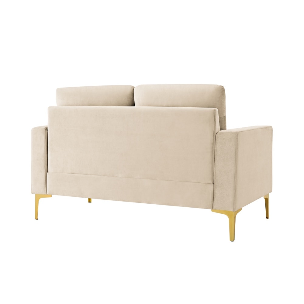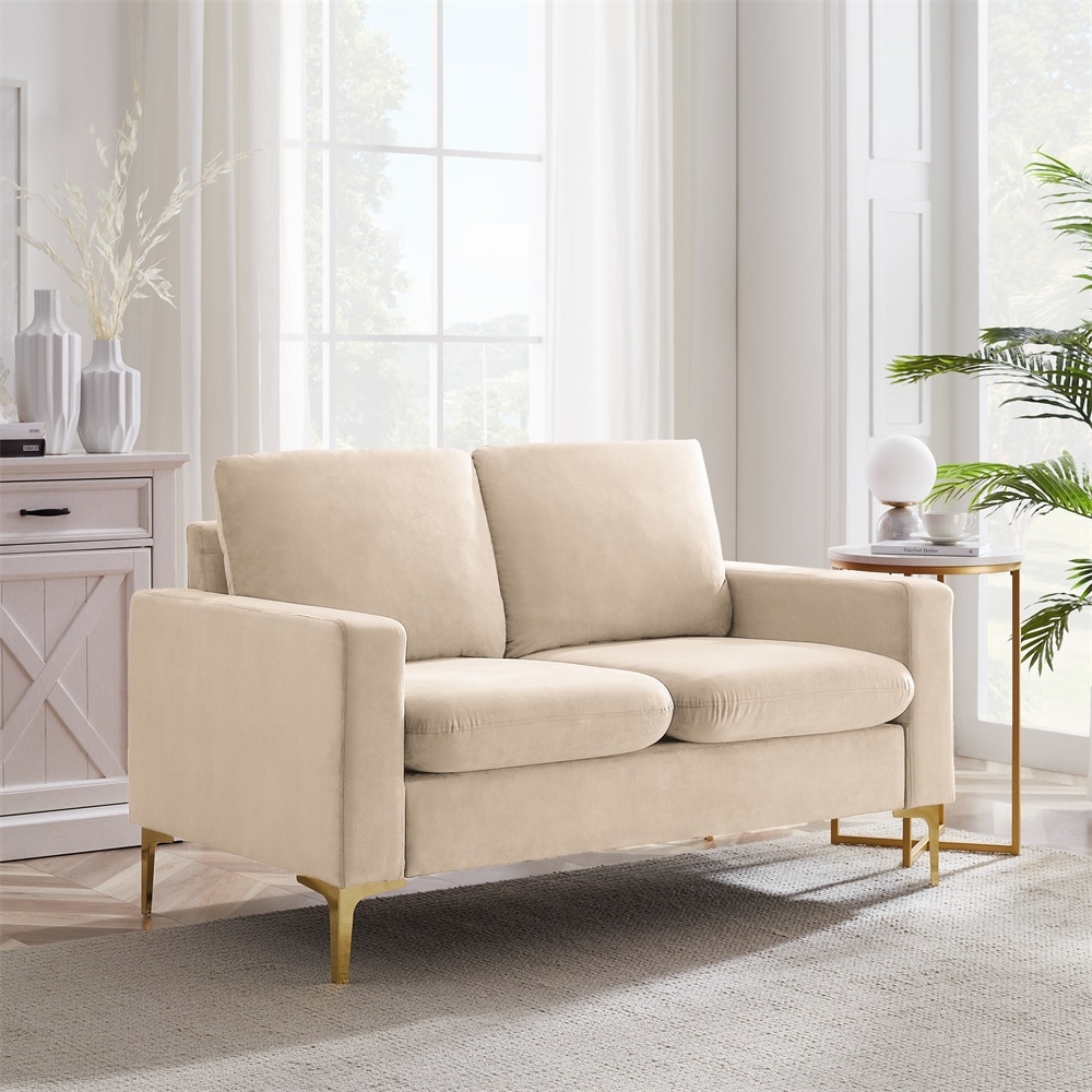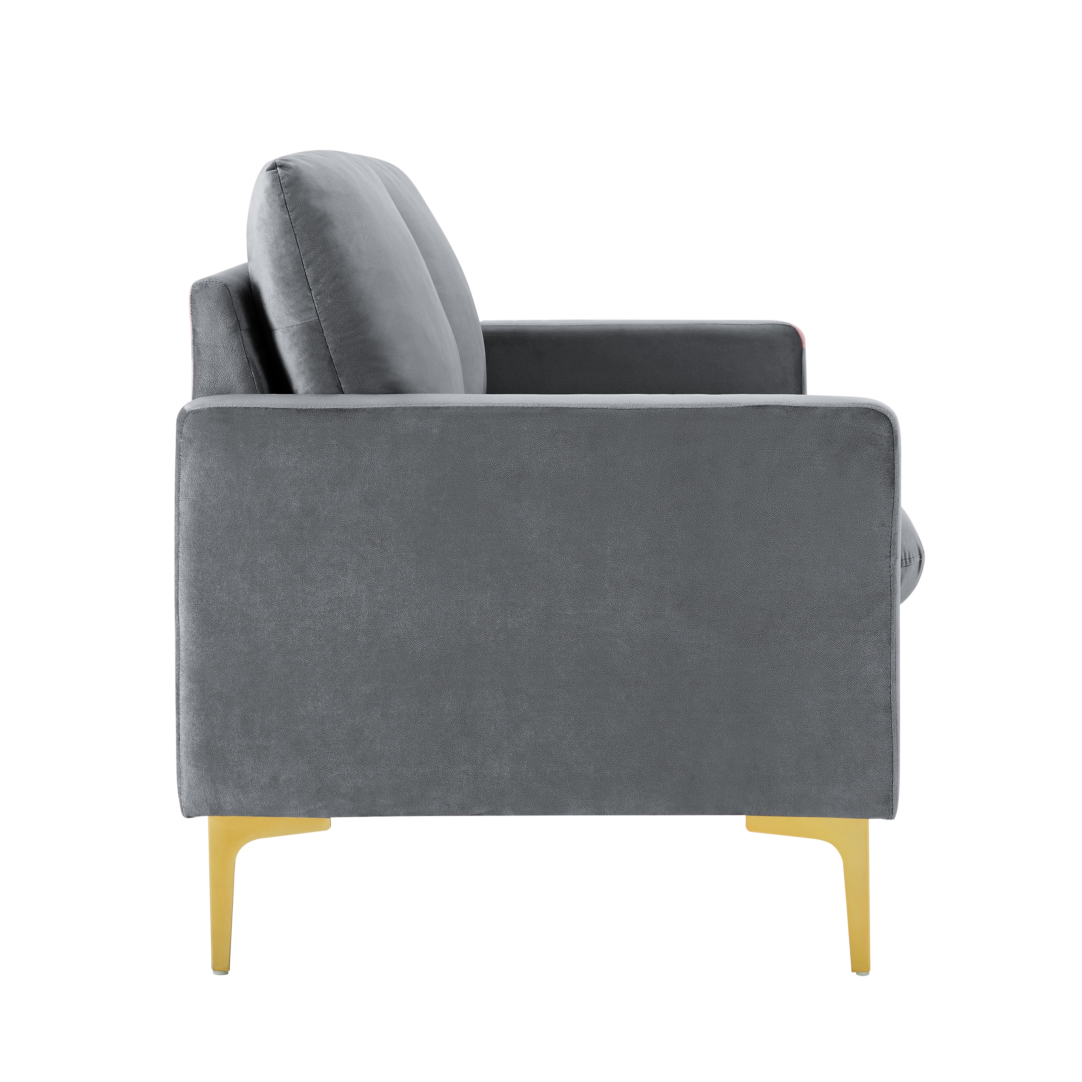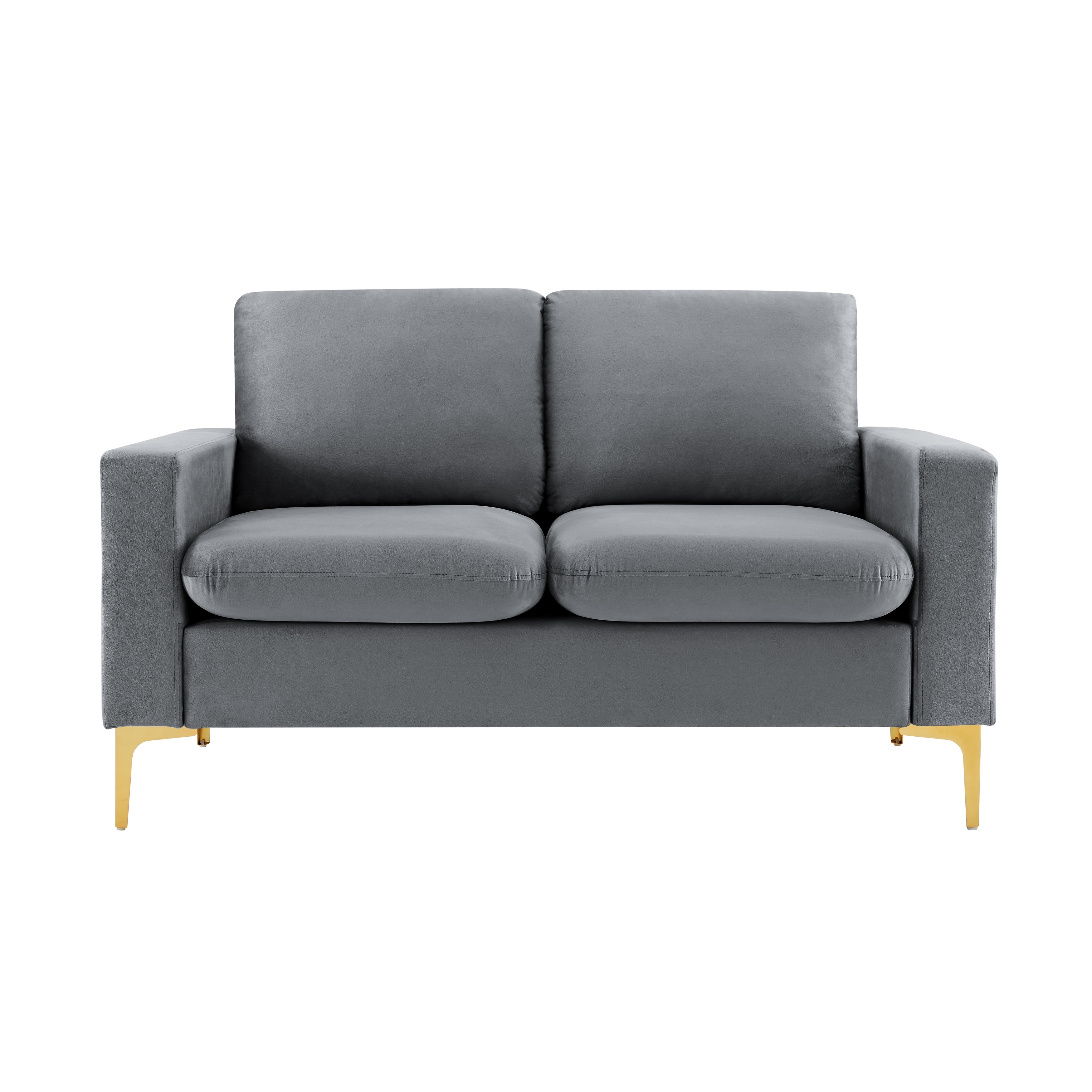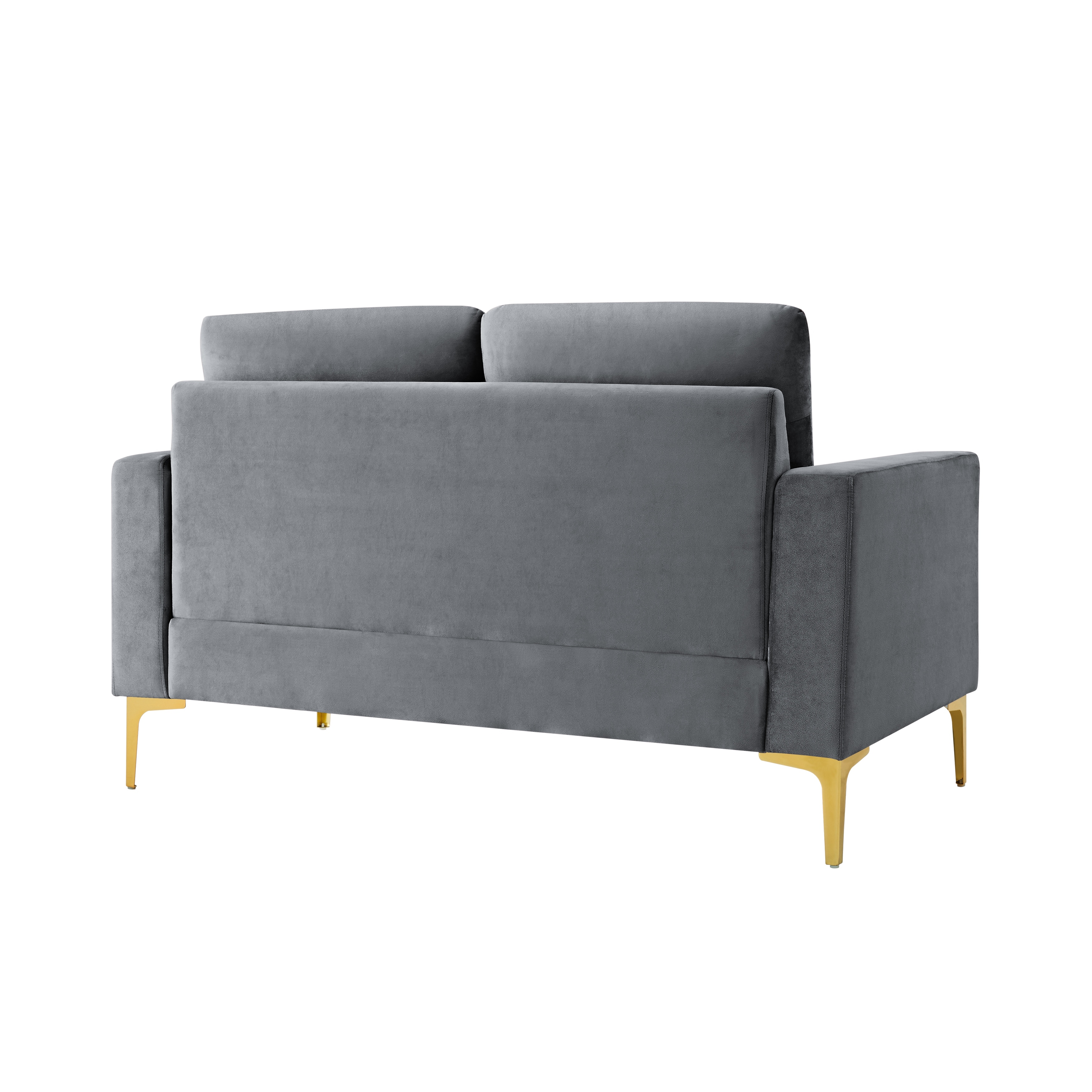 Velvet Loveseat with Gold Metal Legs & Square Armrest Small Couch Sofa Grey