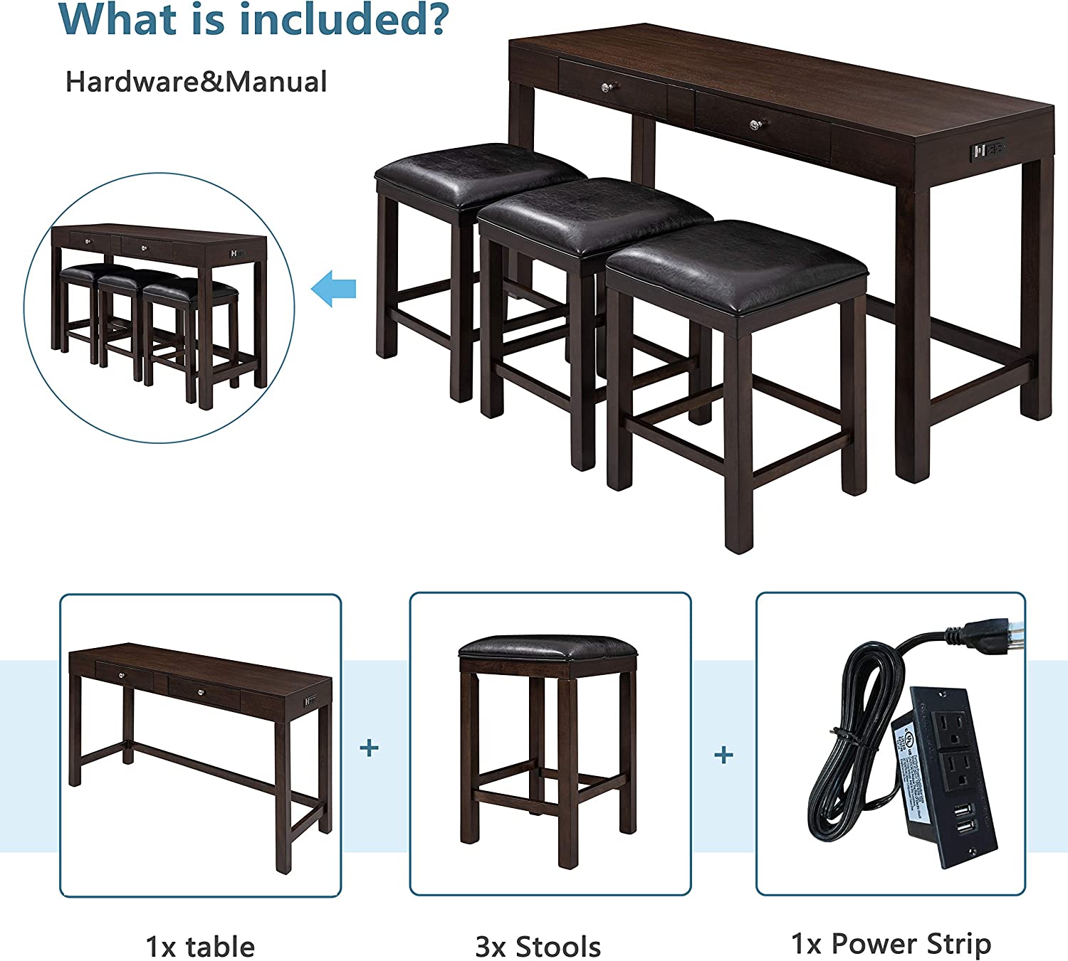 East West Furniture Capris 5 Piece Rectangular Dining Table Set with Antique Faux Leather Seat Chairs