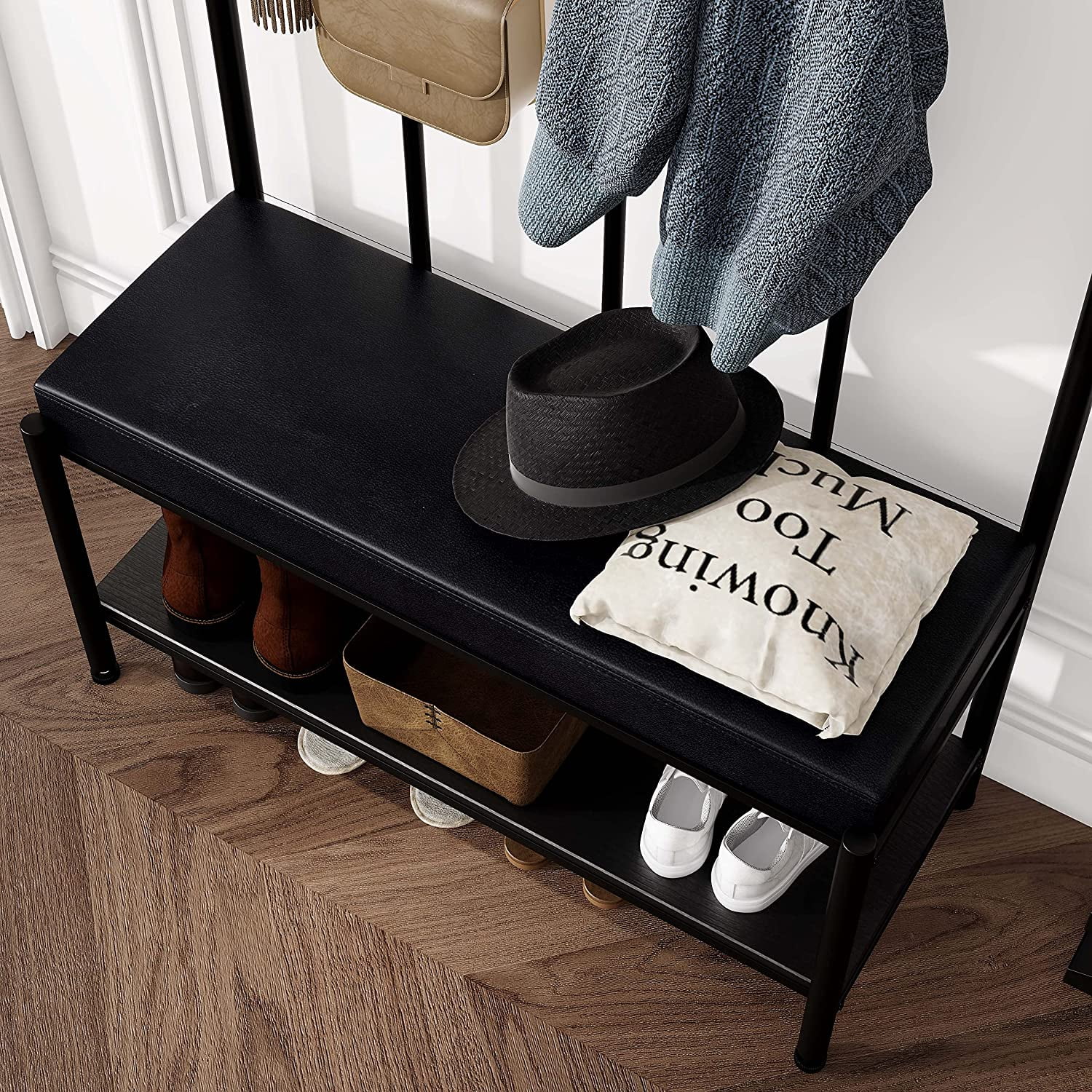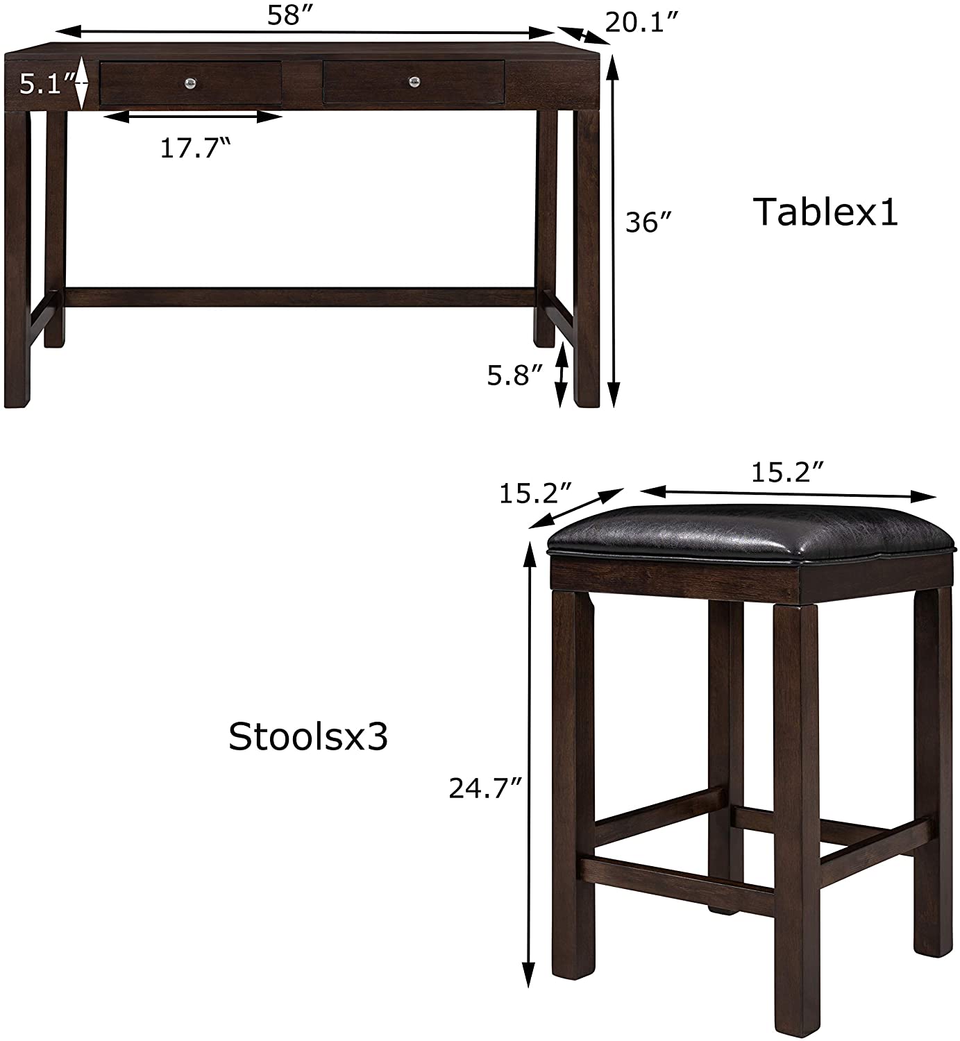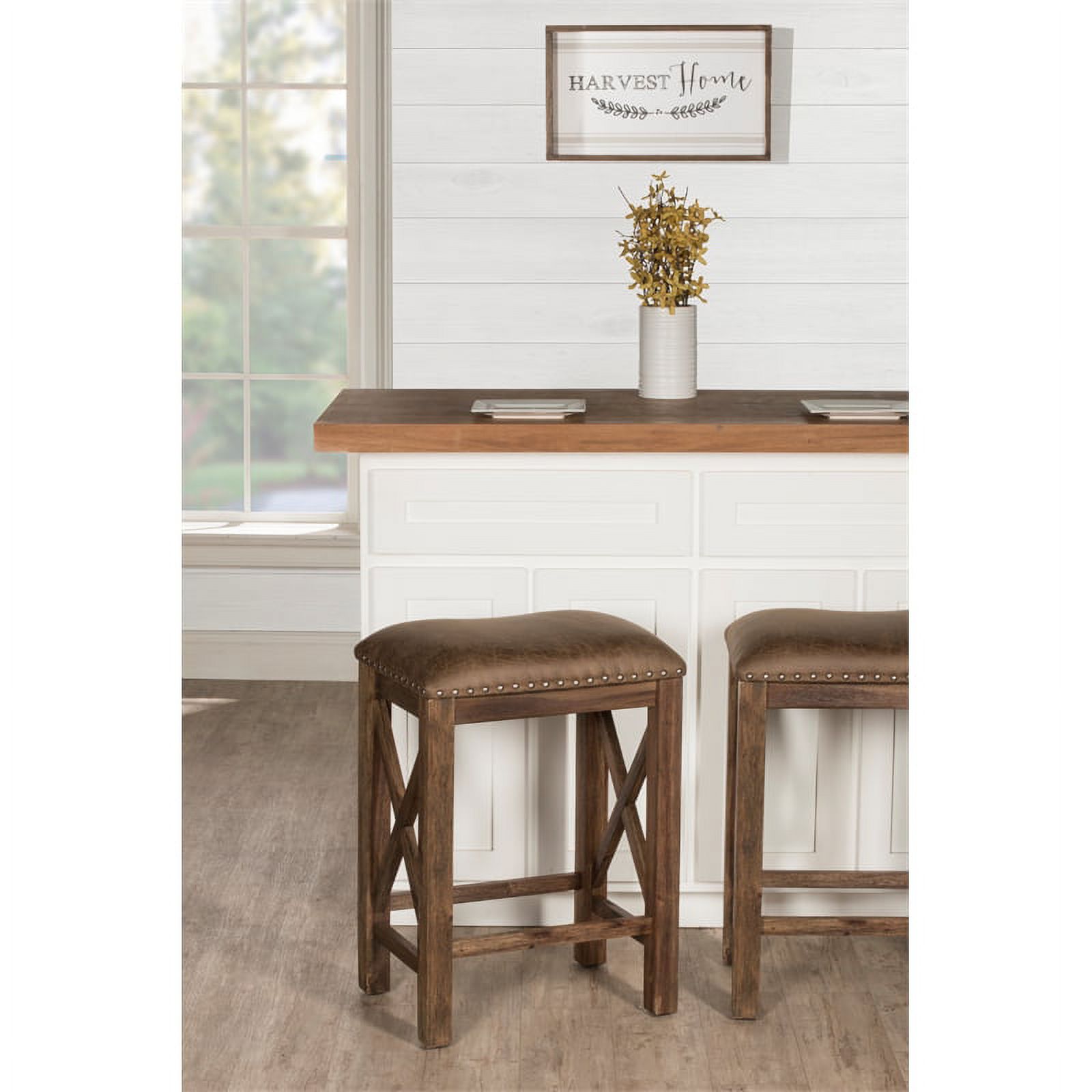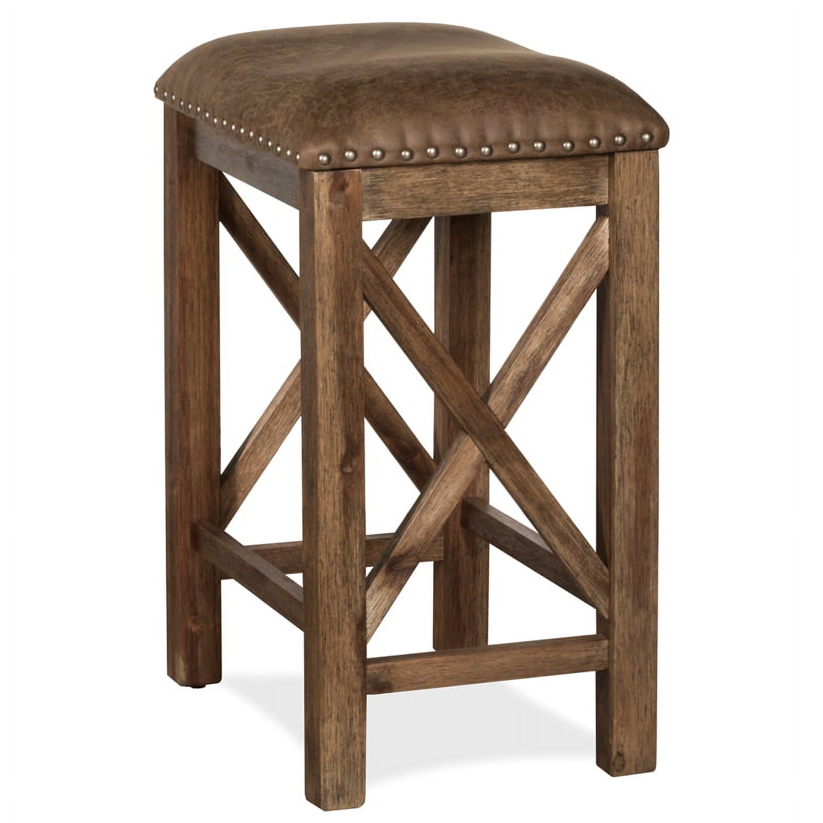 Bowery Hill 26" Transitional Wood/Faux Leather Counter Stool in Brown (Set of 2)