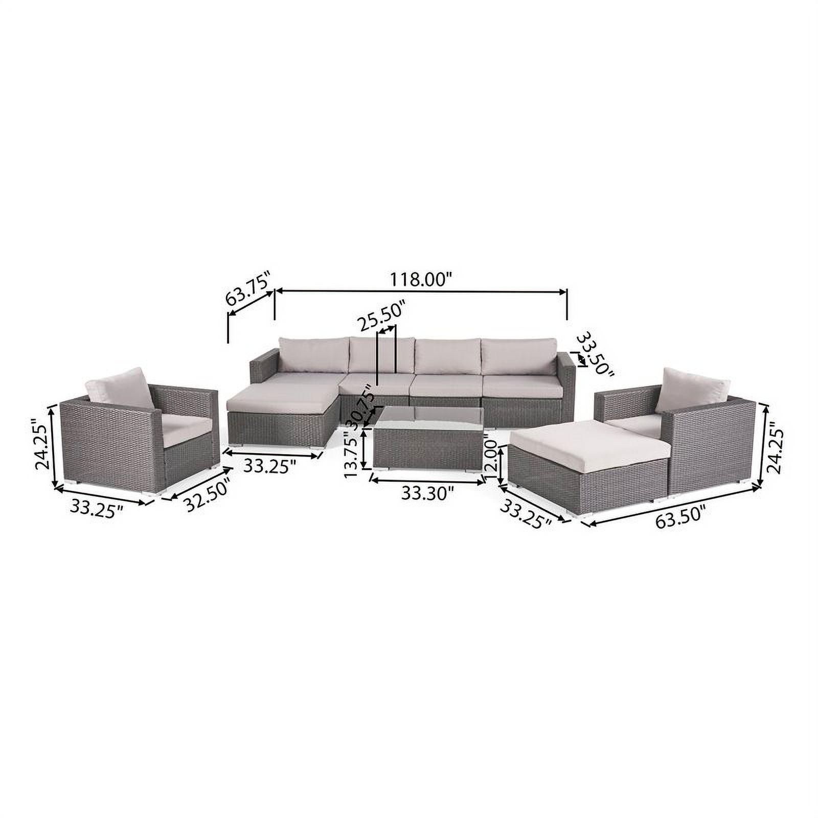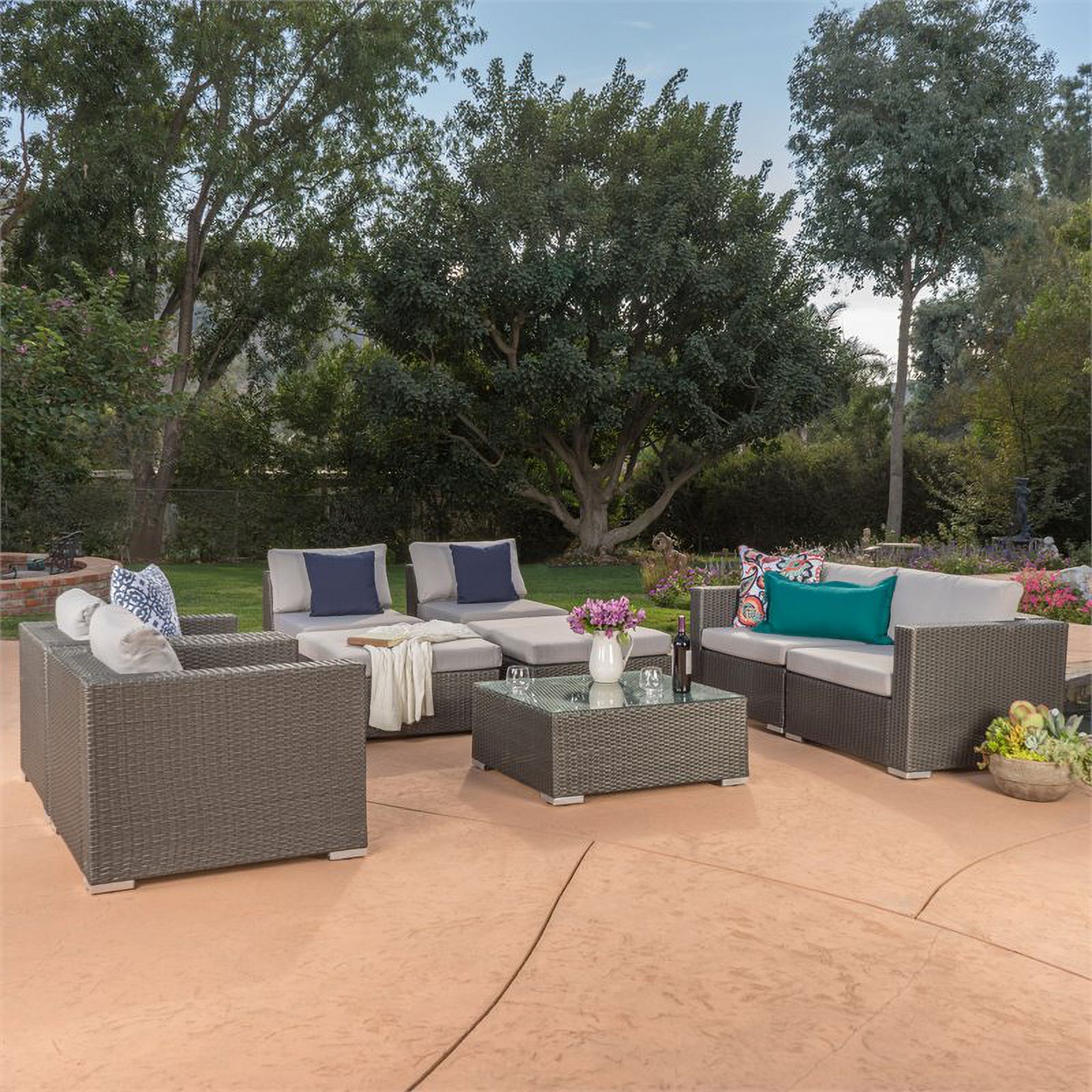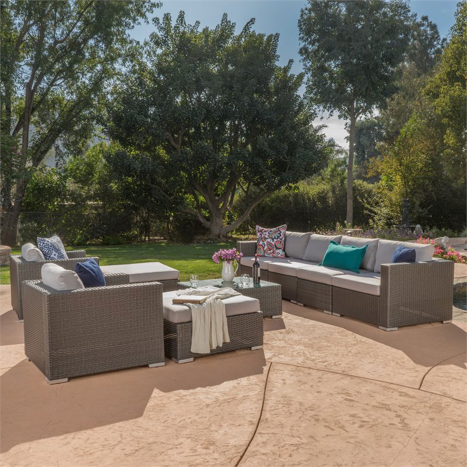 Ohana 9 Piece Outdoor Wicker Patio Furniture Sectional Conversation Set - Black Wicker
