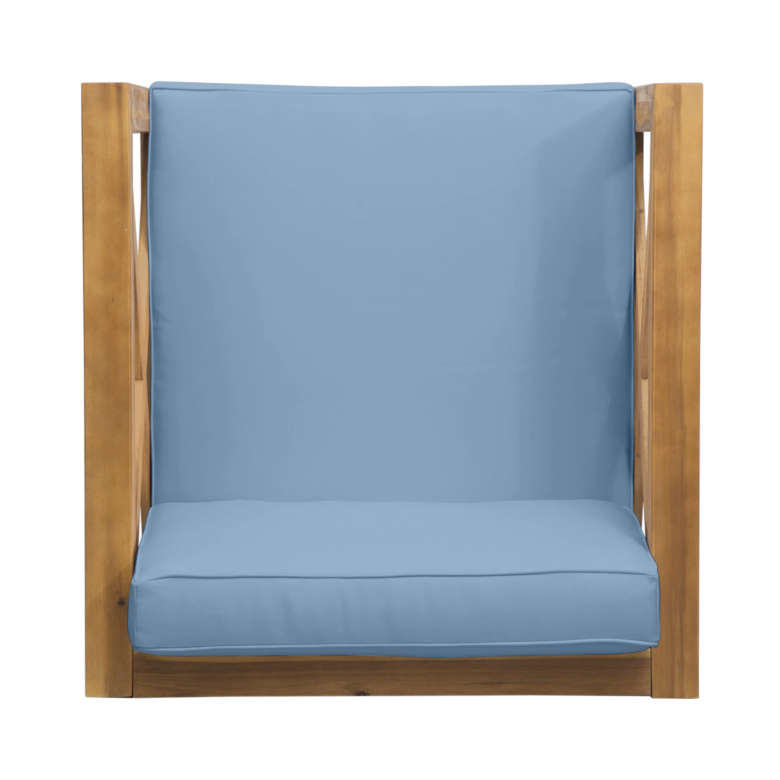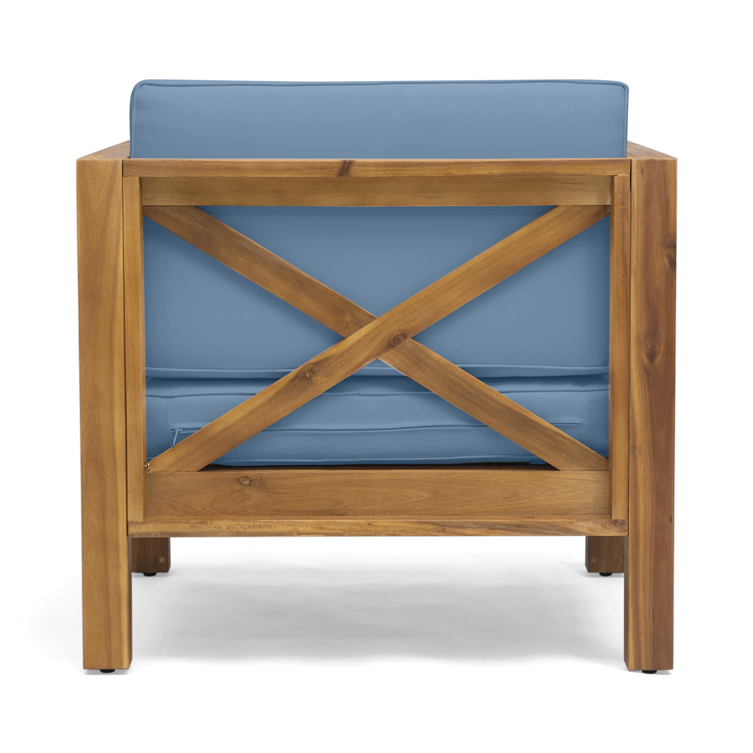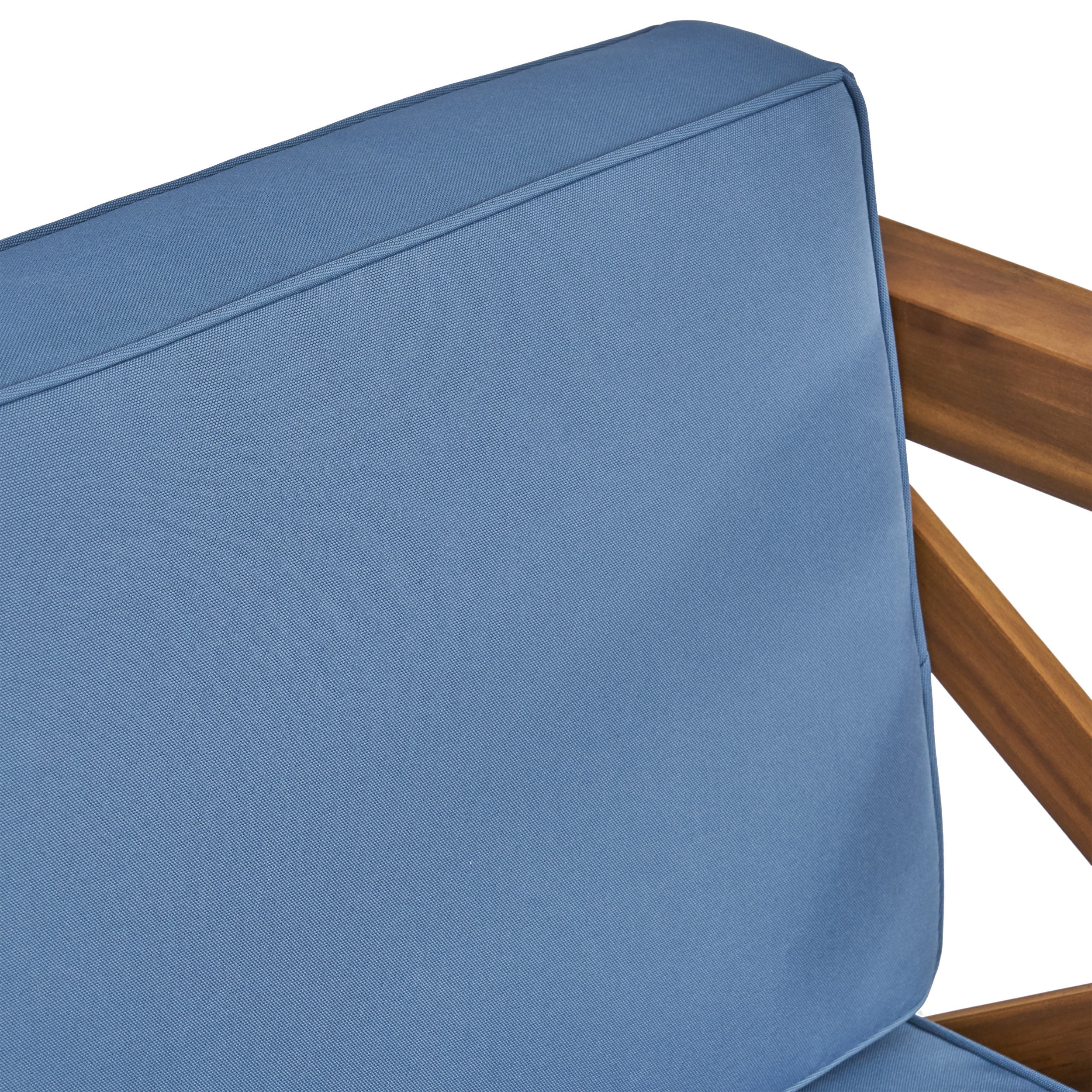 GDF Studio Keith Outdoor Acacia Wood 6 Seater Sofa Chat Set with Cushions, Teak and Blue