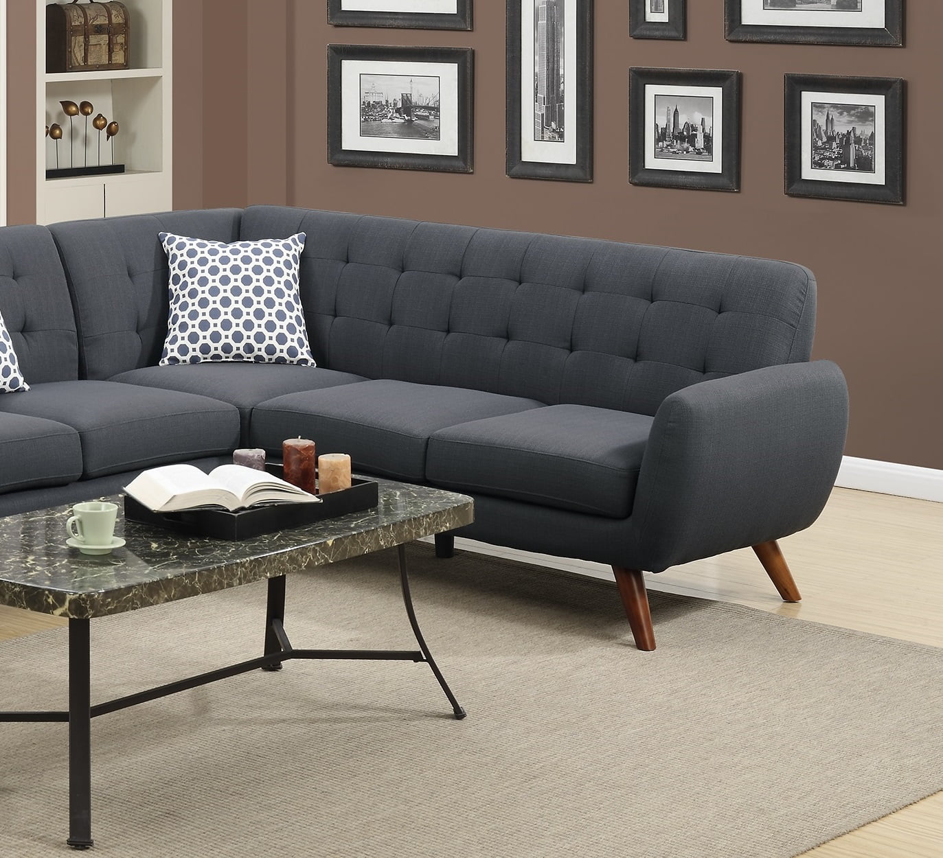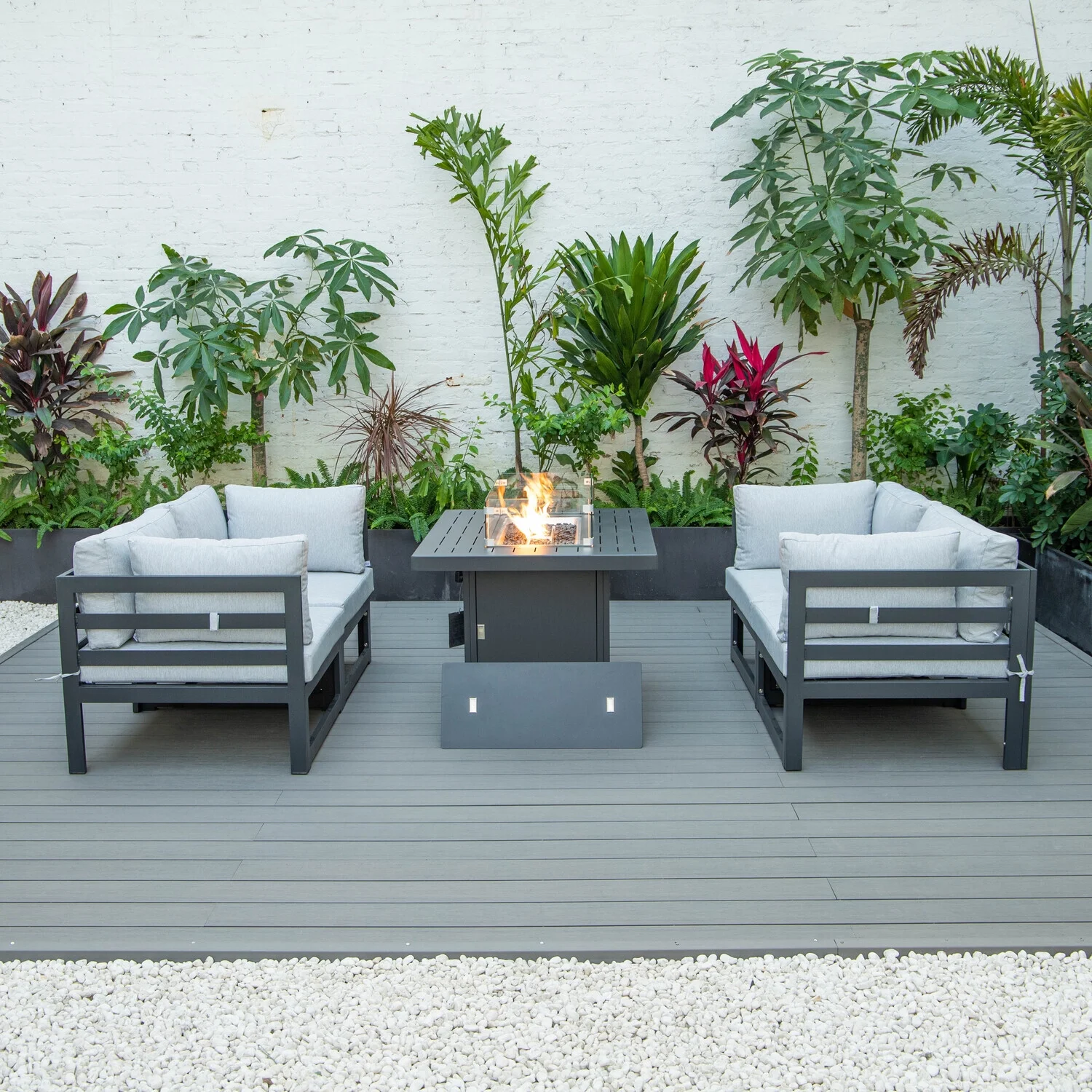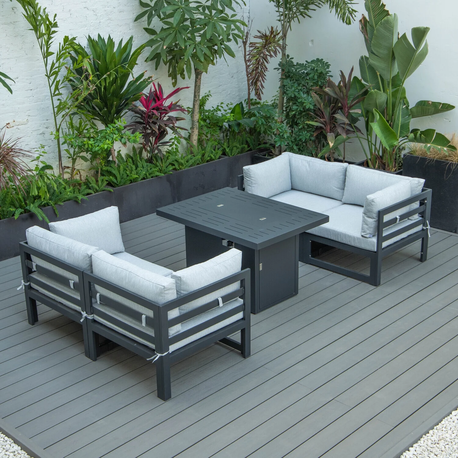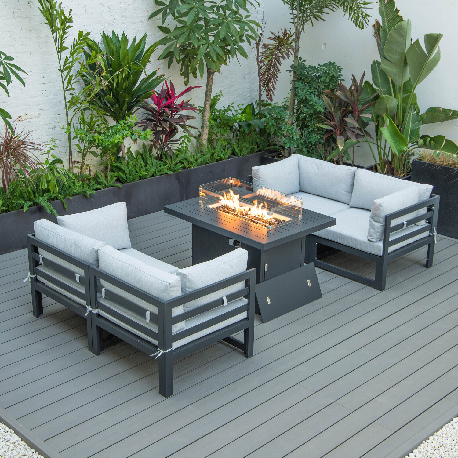 Maykoosh Art Nouveau Allure 5-Piece Sectional Loveseat and Fireplace Set Black Aluminum with Cushions