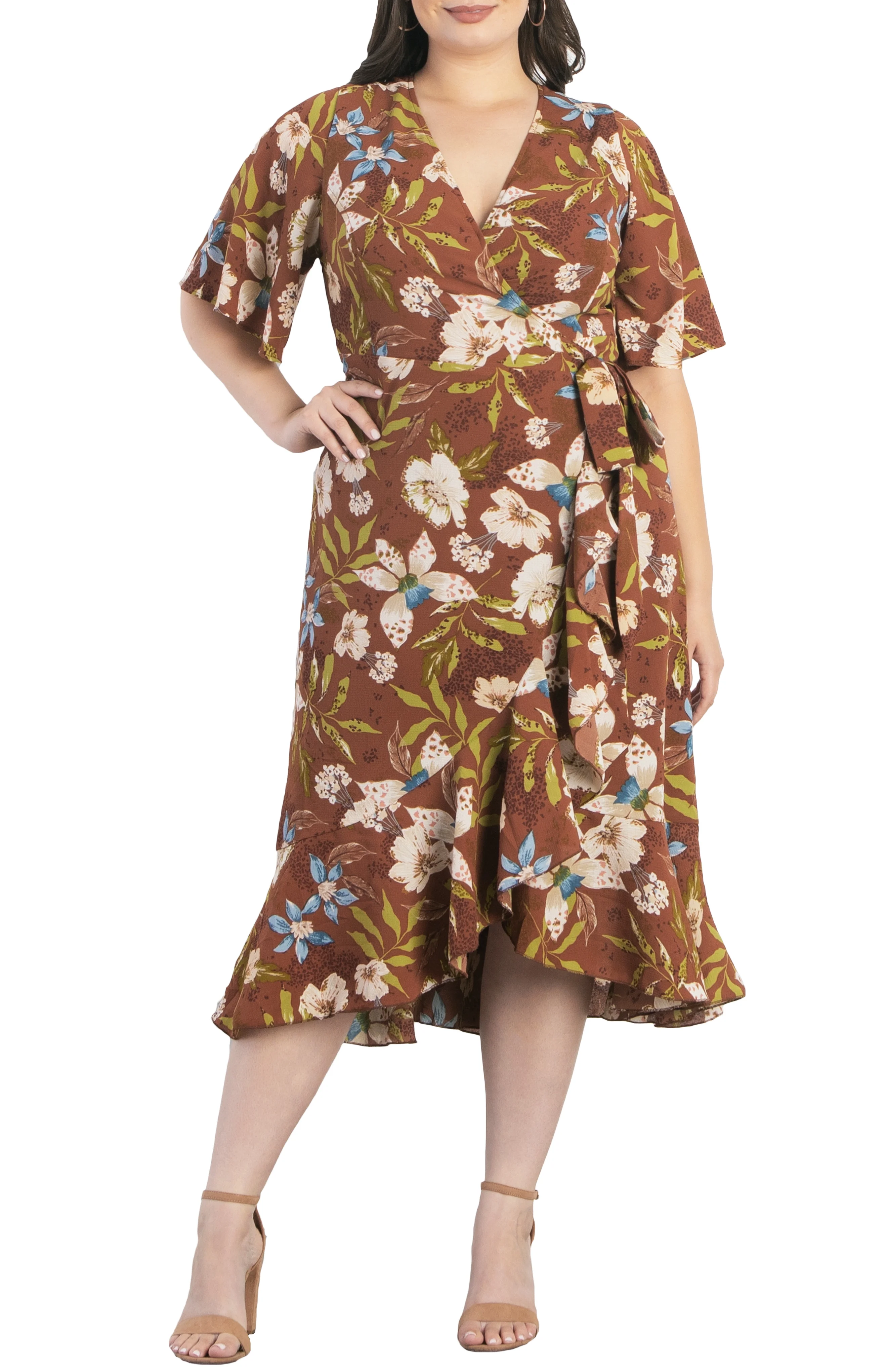 Small Womens Dress Golden Leaf Designer Print Short Sleeve Princess Cut