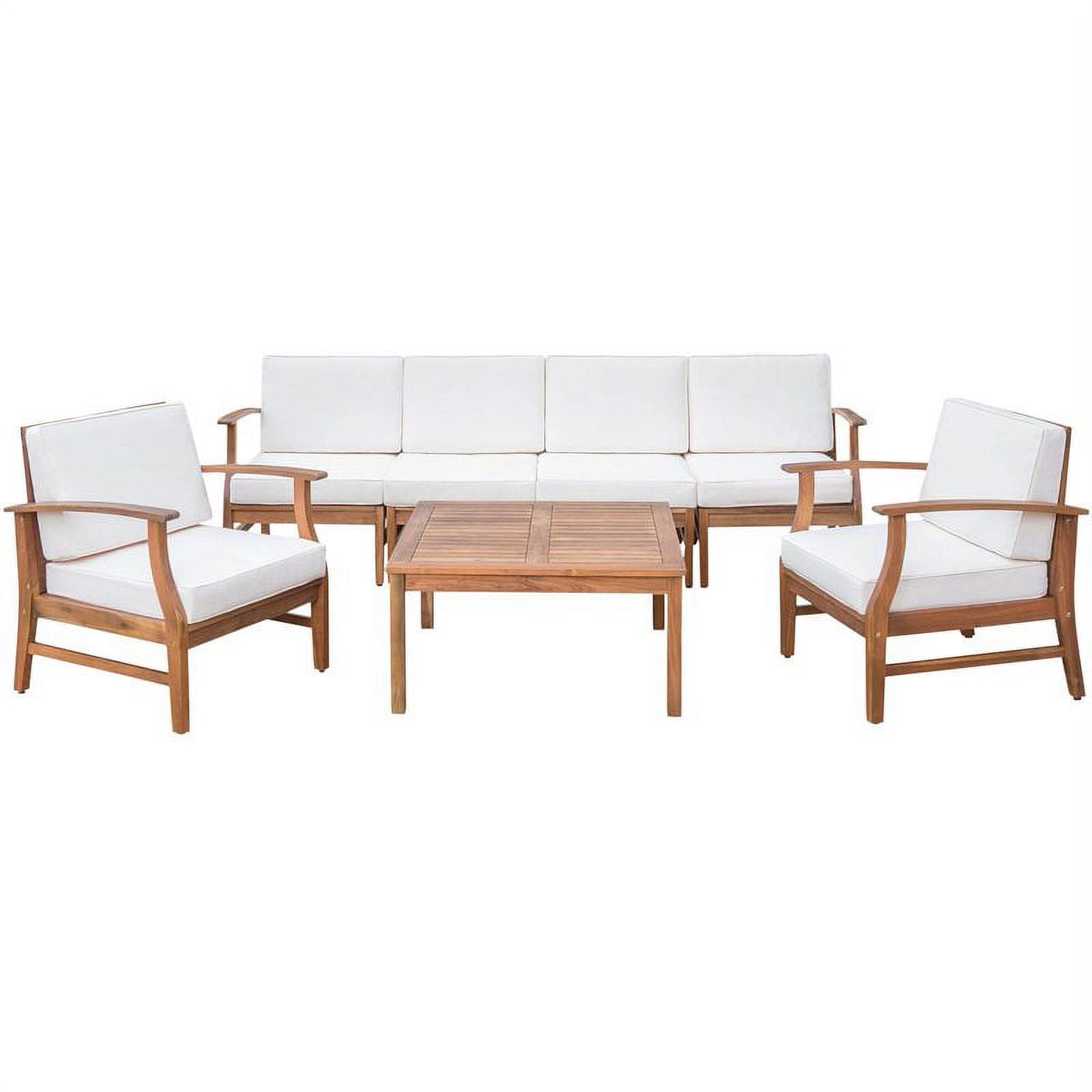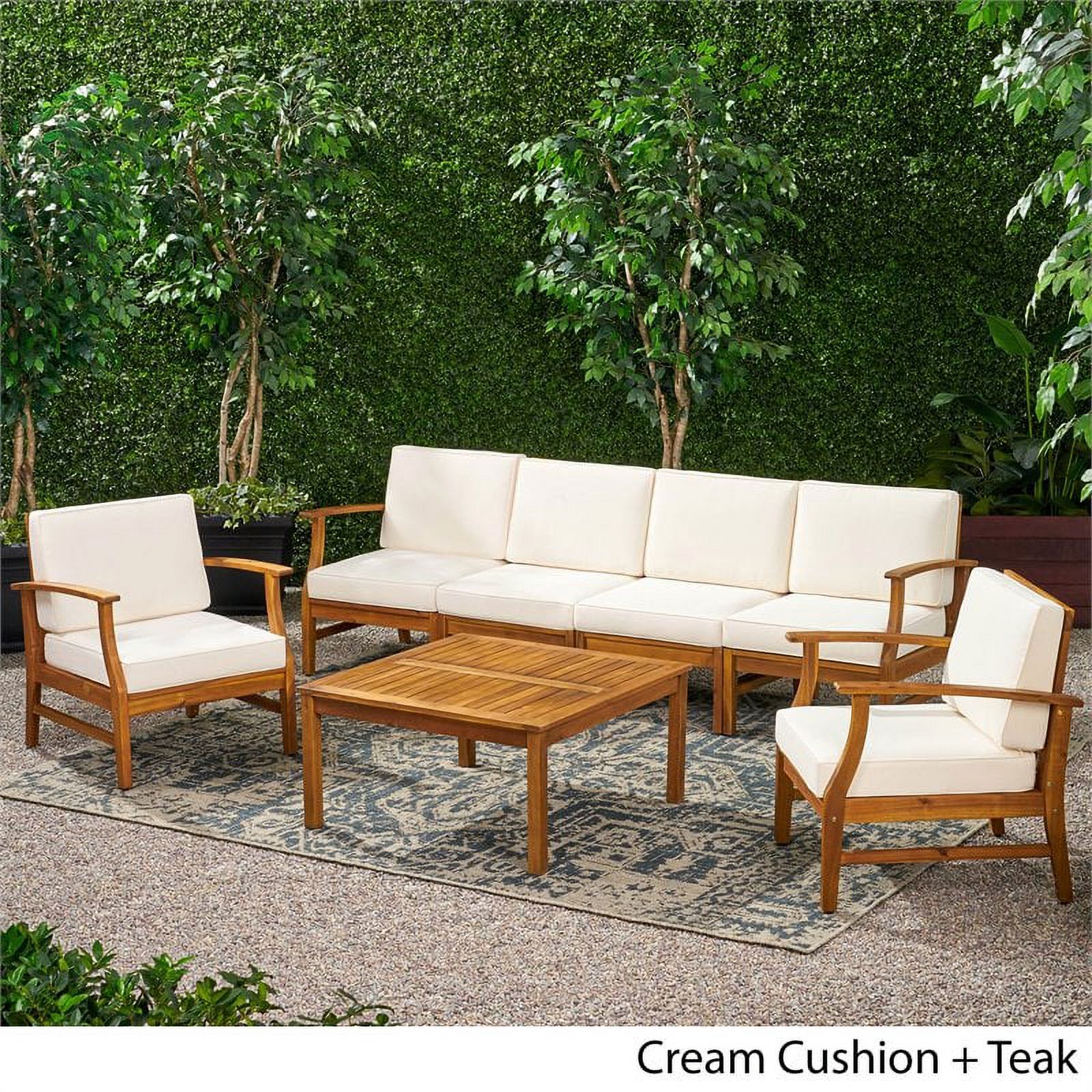 Afuera Living Outdoor 6 Seater Teaked Acacia Wood Sofa Set & Cream Cushions