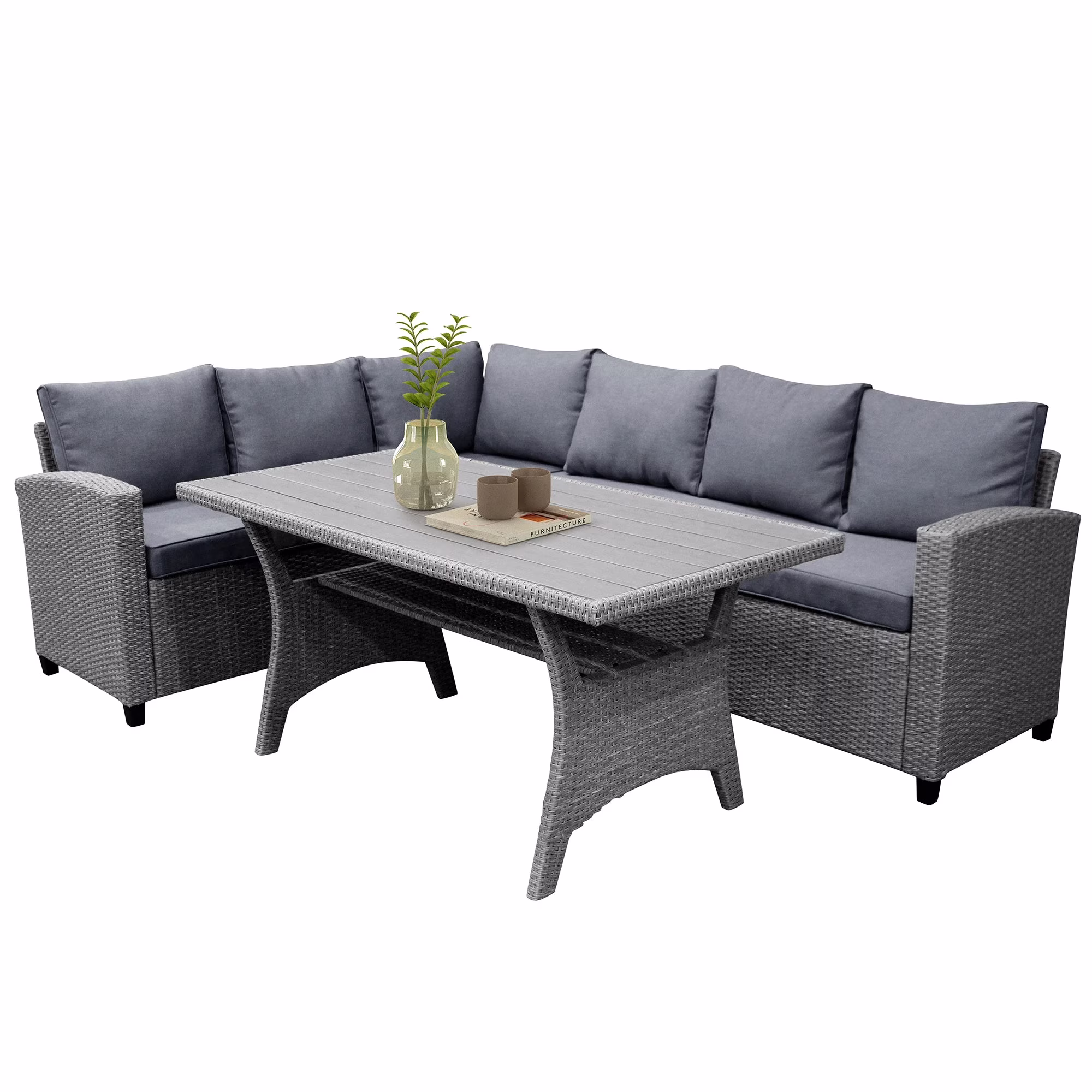 Patio Outdoor Furniture Set PE Rattan Wicker Conversation Set All-Weather Sectional Sofa Set with Table & Soft Cushions