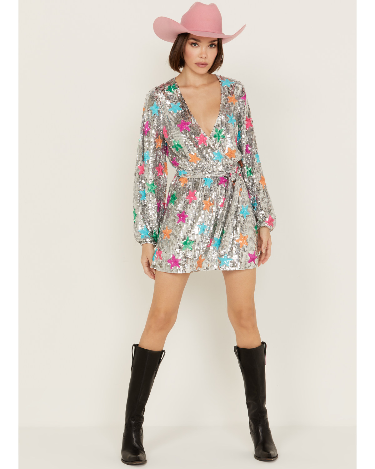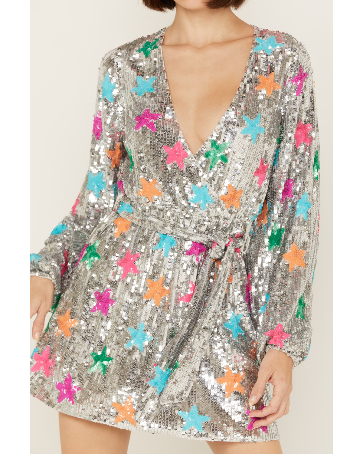 Show Me Your Mumu Women's Wear Out Sequin Long Sleeve Mini Dress Silver Small US