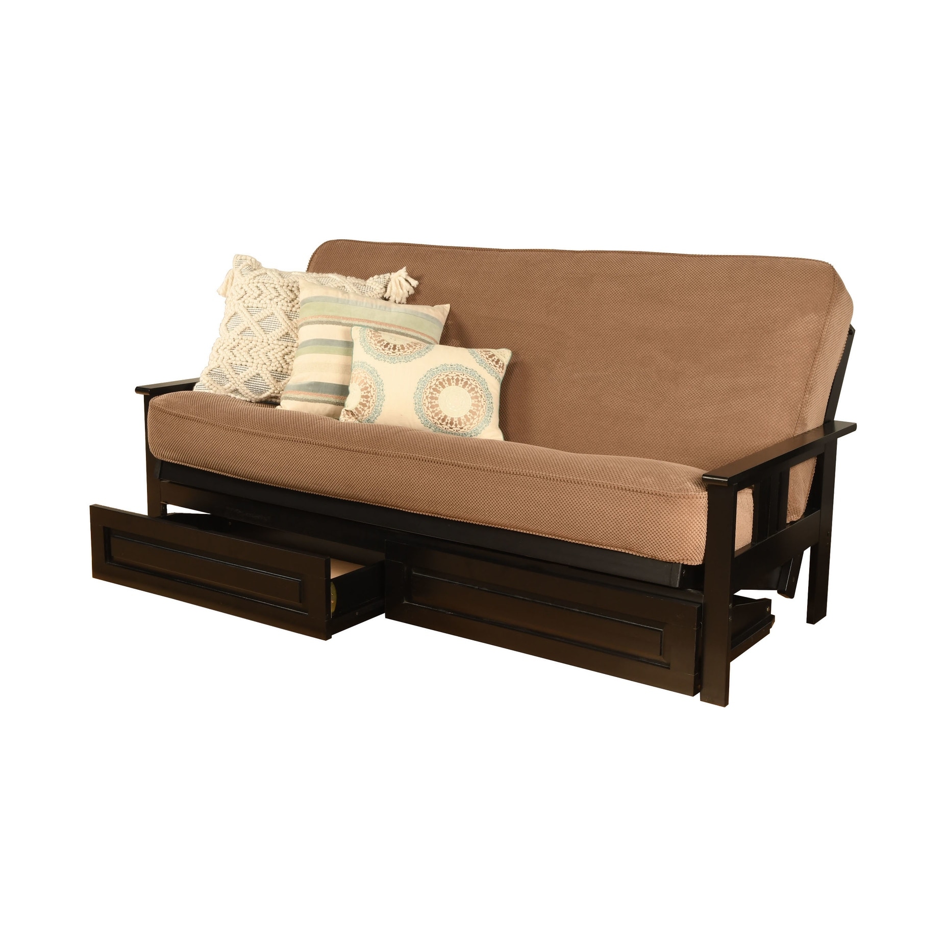 Somette Monterey Sofa in Black Finish with Storage and Removable Mattress Cover Marmont Mocha