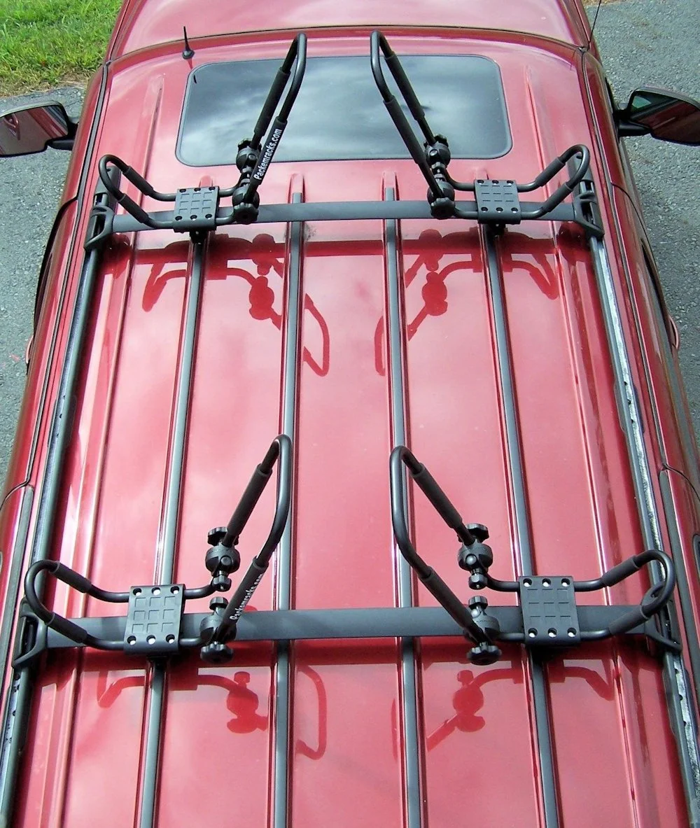 BATTLESHIP GRAY FOLDING J-STYLE KAYAK RACK ROOF TOP AND WALL CARRIER BUNDLE