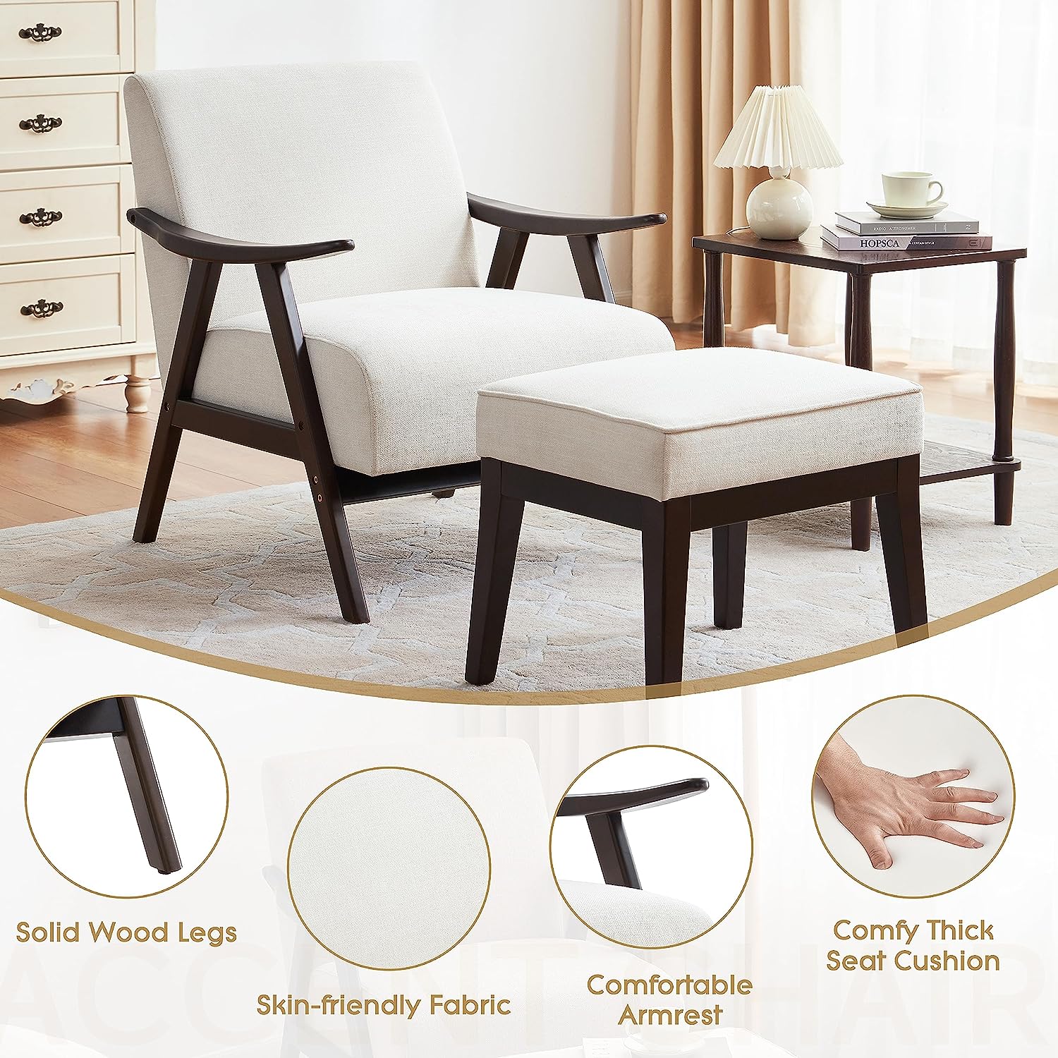 Mid Century Modern Accent Chairs, Wood Frame Reading Armchair, Lounge Chair for Living Room