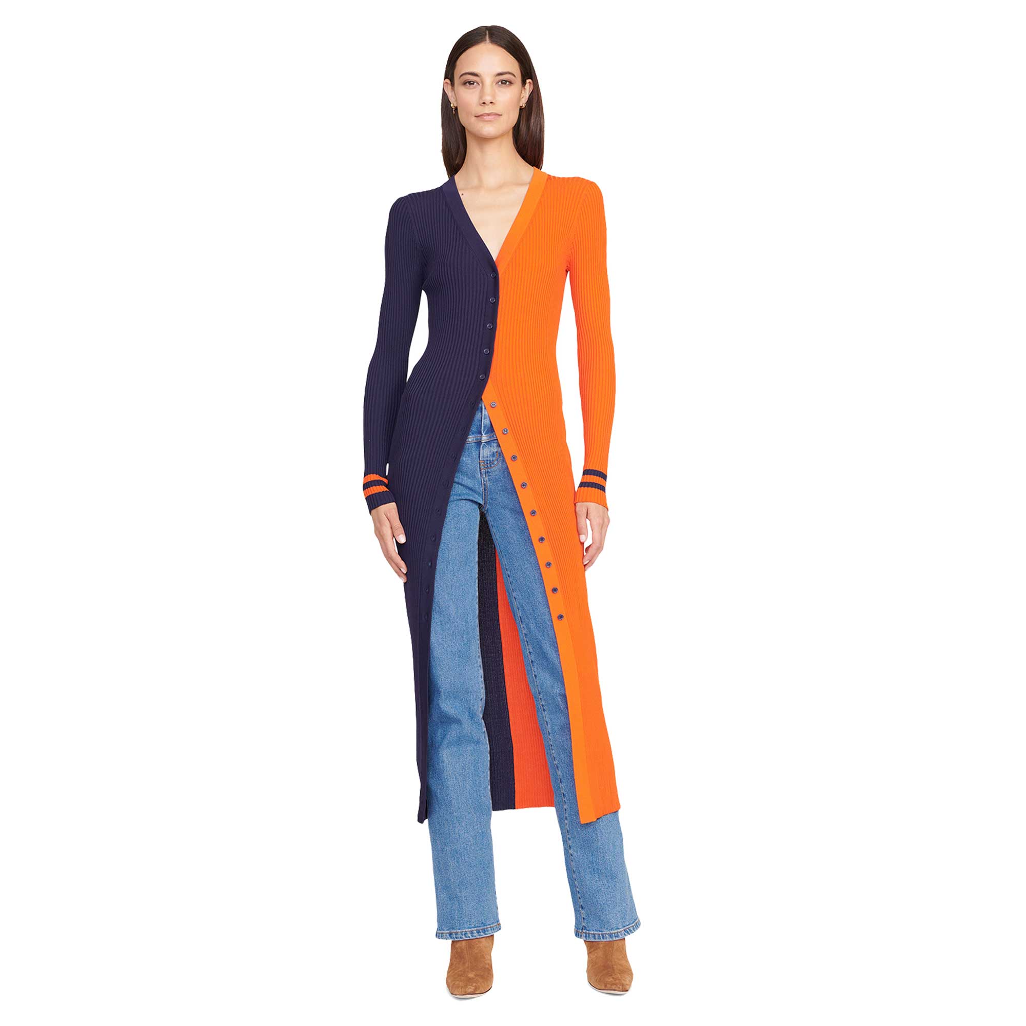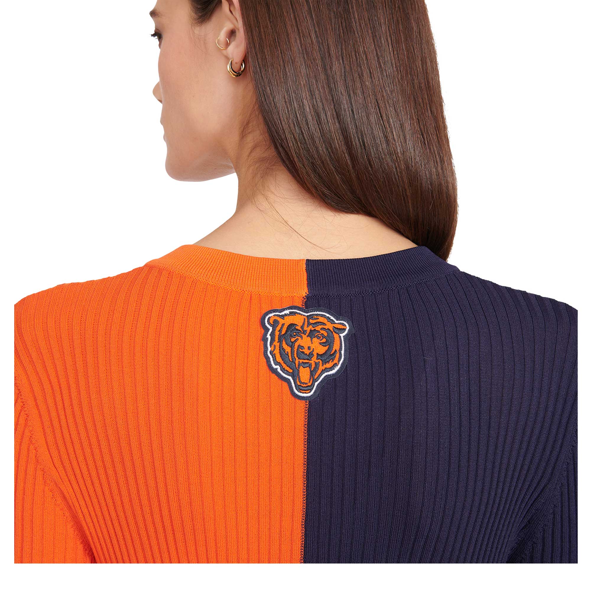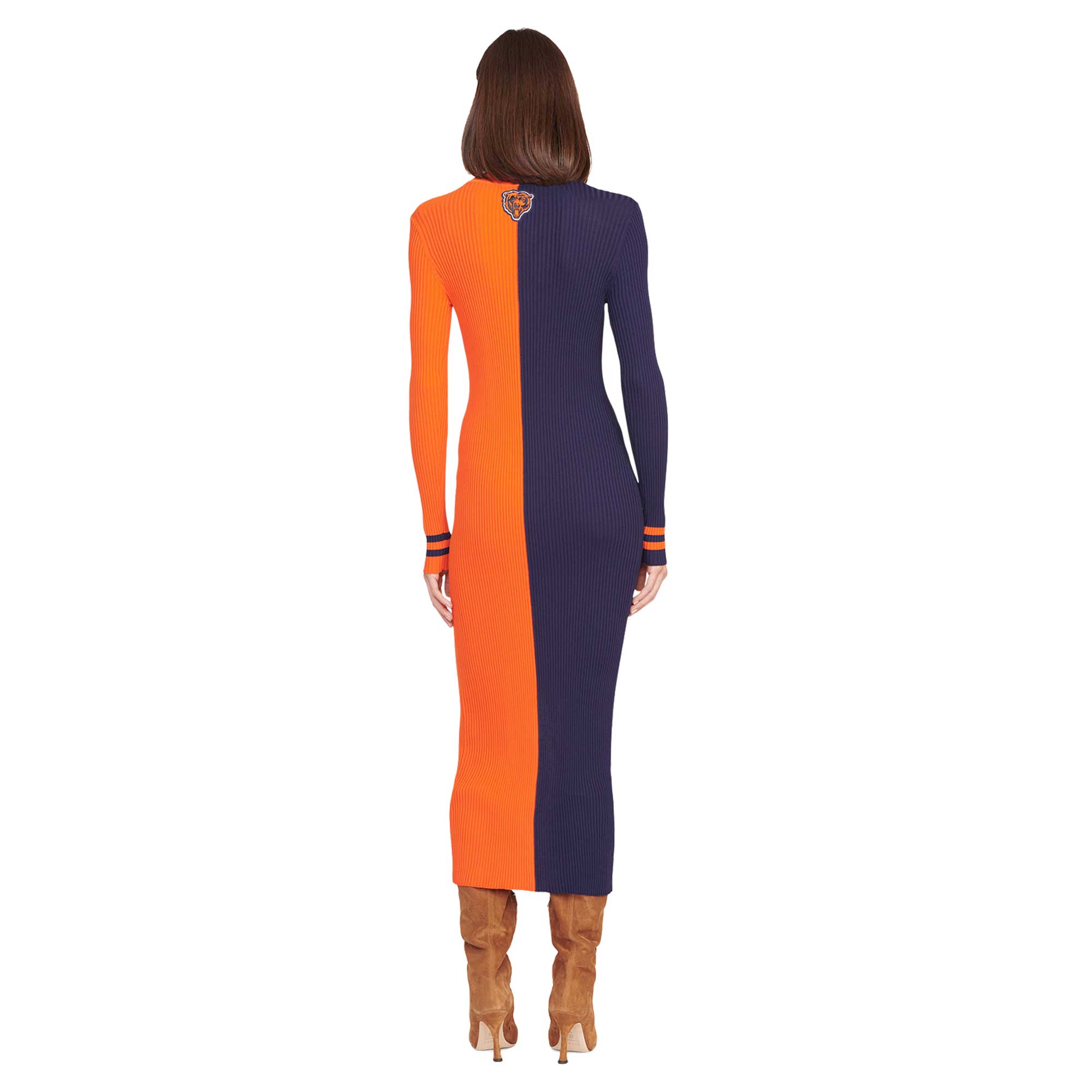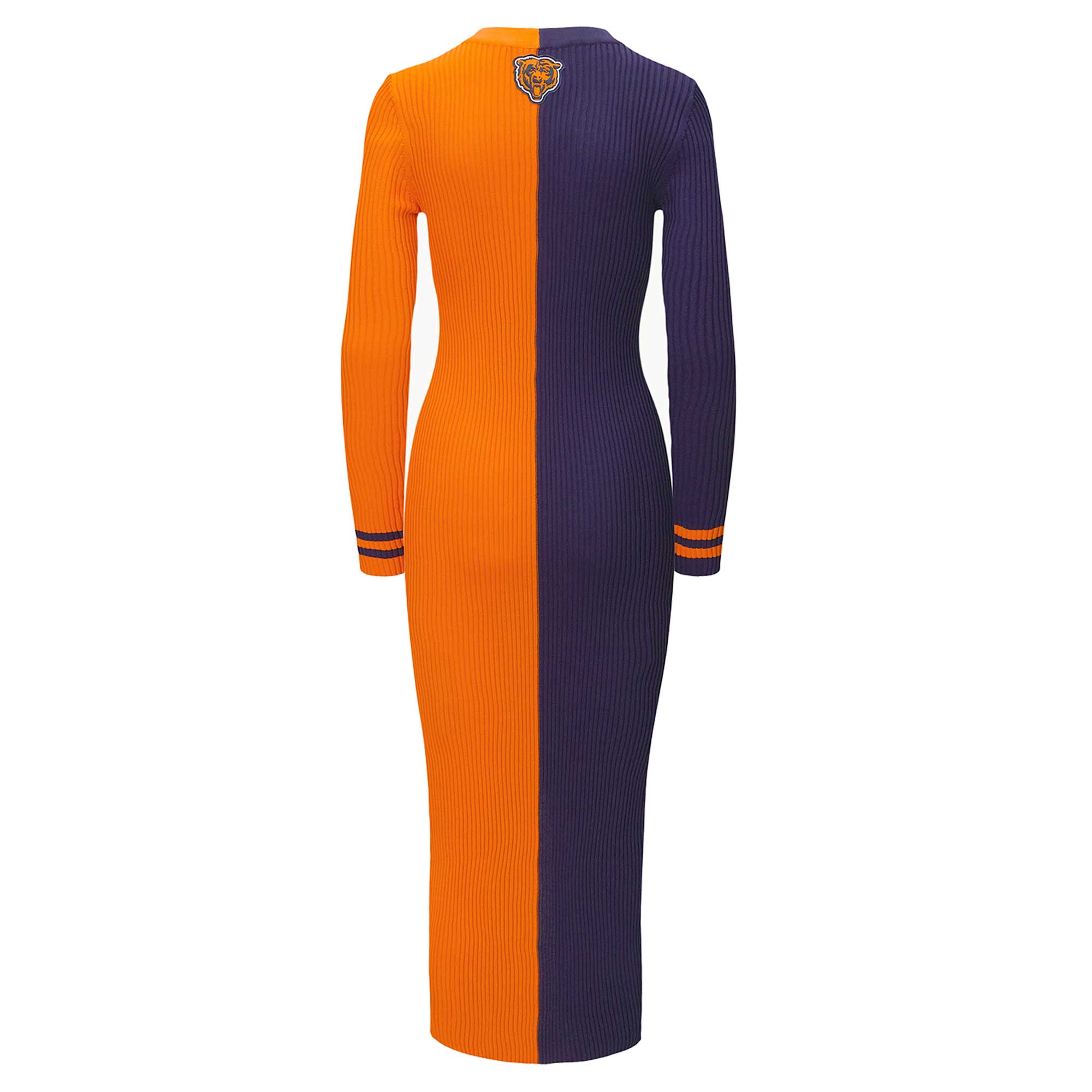 Women's STAUD Navy/Orange Chicago Bears Shoko Knit Button-Up Sweater Dress