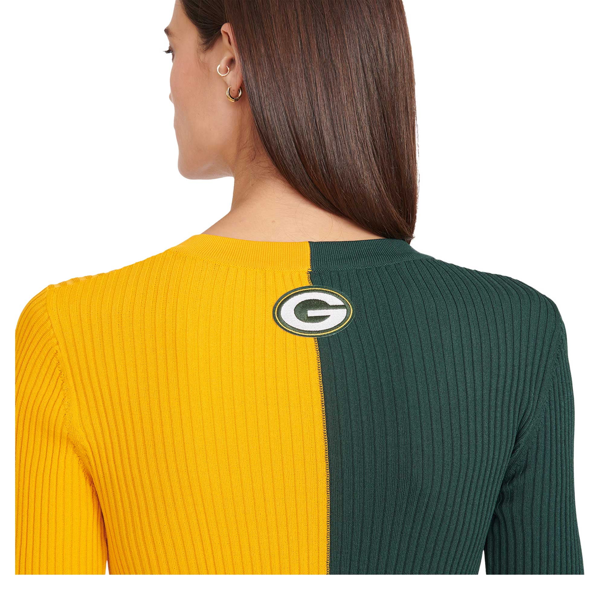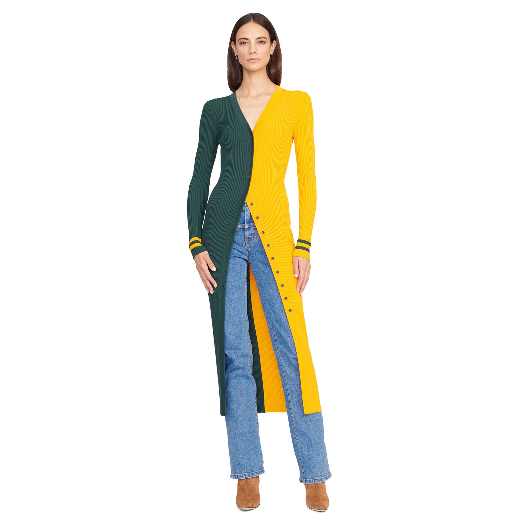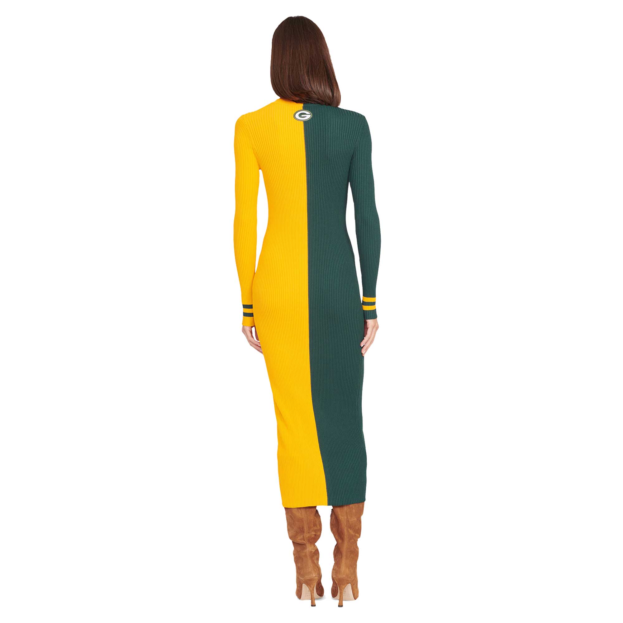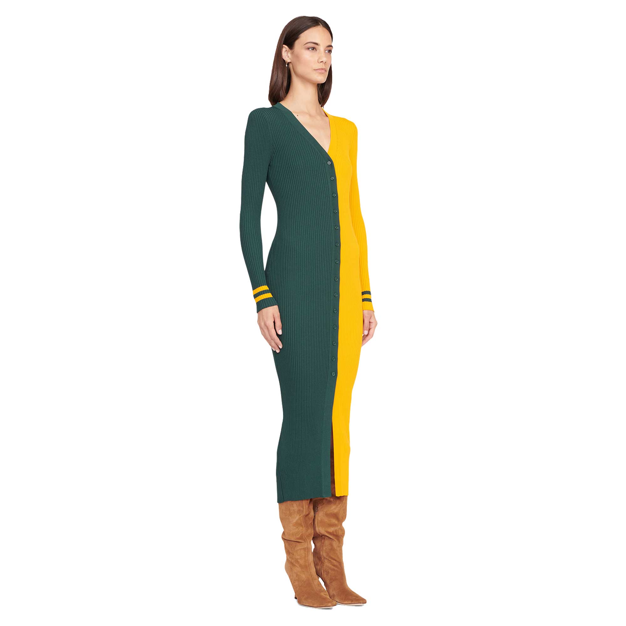 Women's STAUD Green/Gold Green Bay Packers Shoko Knit Button-Up Sweater Dress