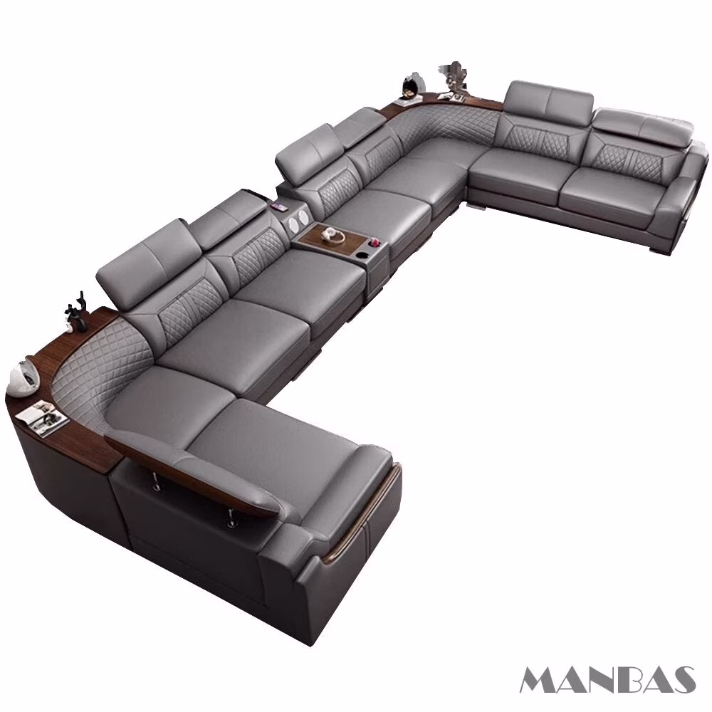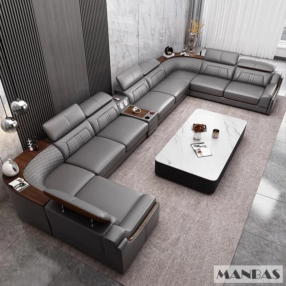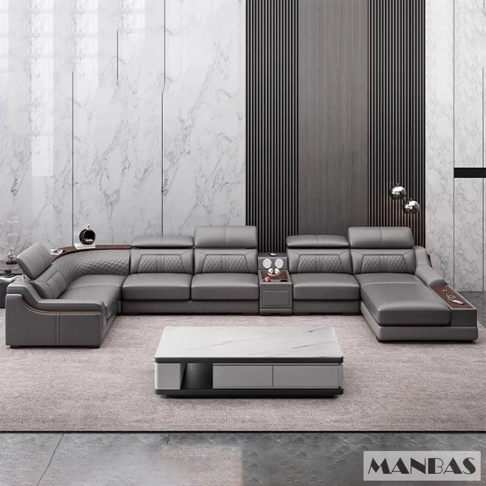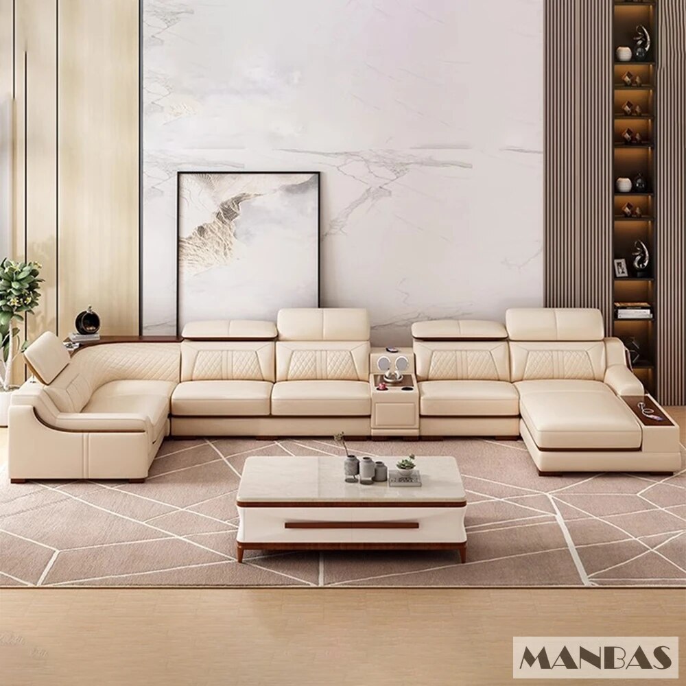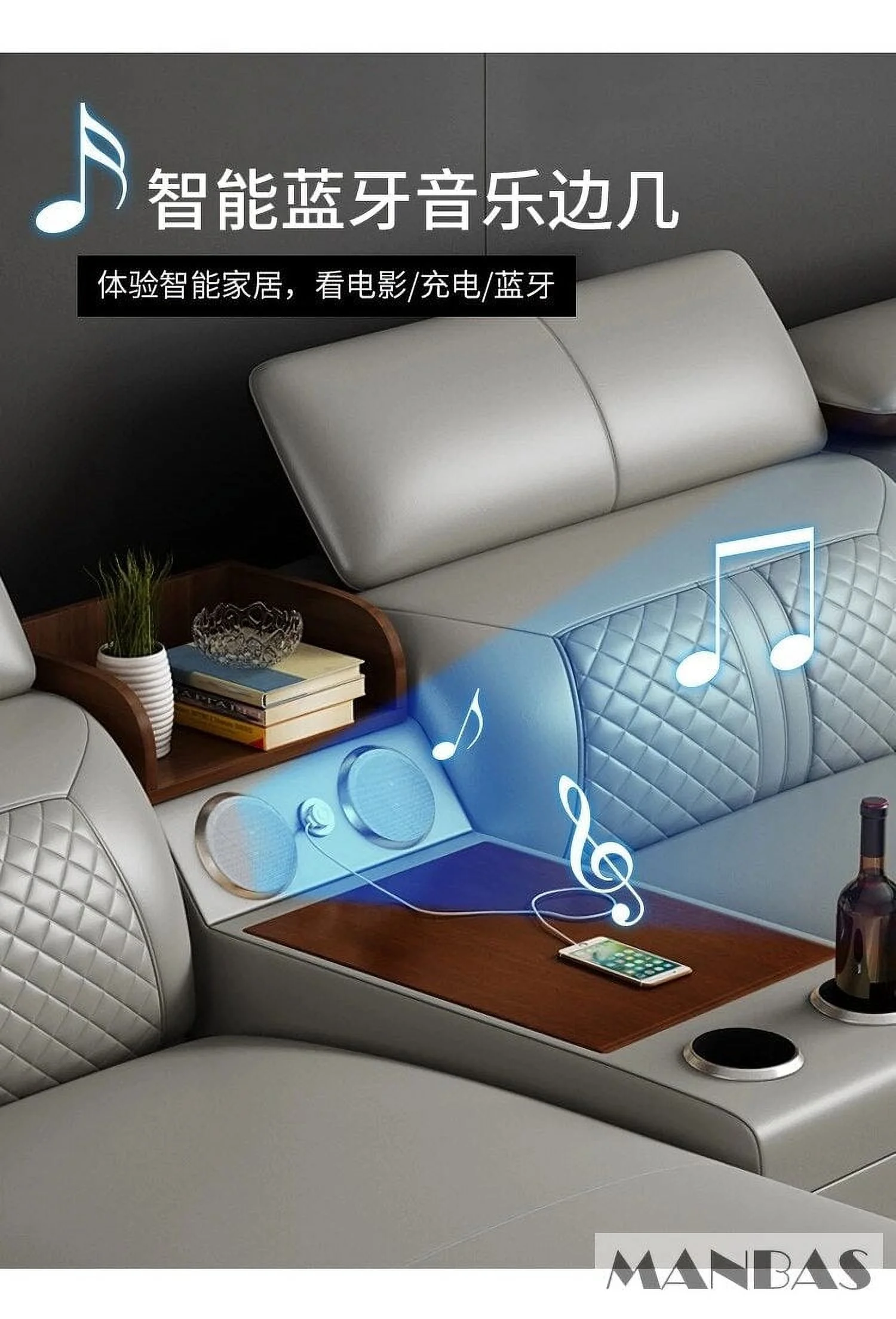 Premium Italian Leather Couch Set with Cup Holder, USB, Adjustable Headrests & Bluetooth Speaker - Linlamlim Living Room Sofas