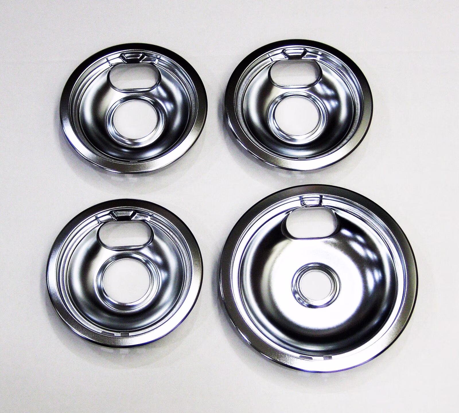 Range Burner Drip Pan Bowl Bib Set for GE 3 of WB32X107 1 of WB32X106 Chrome
