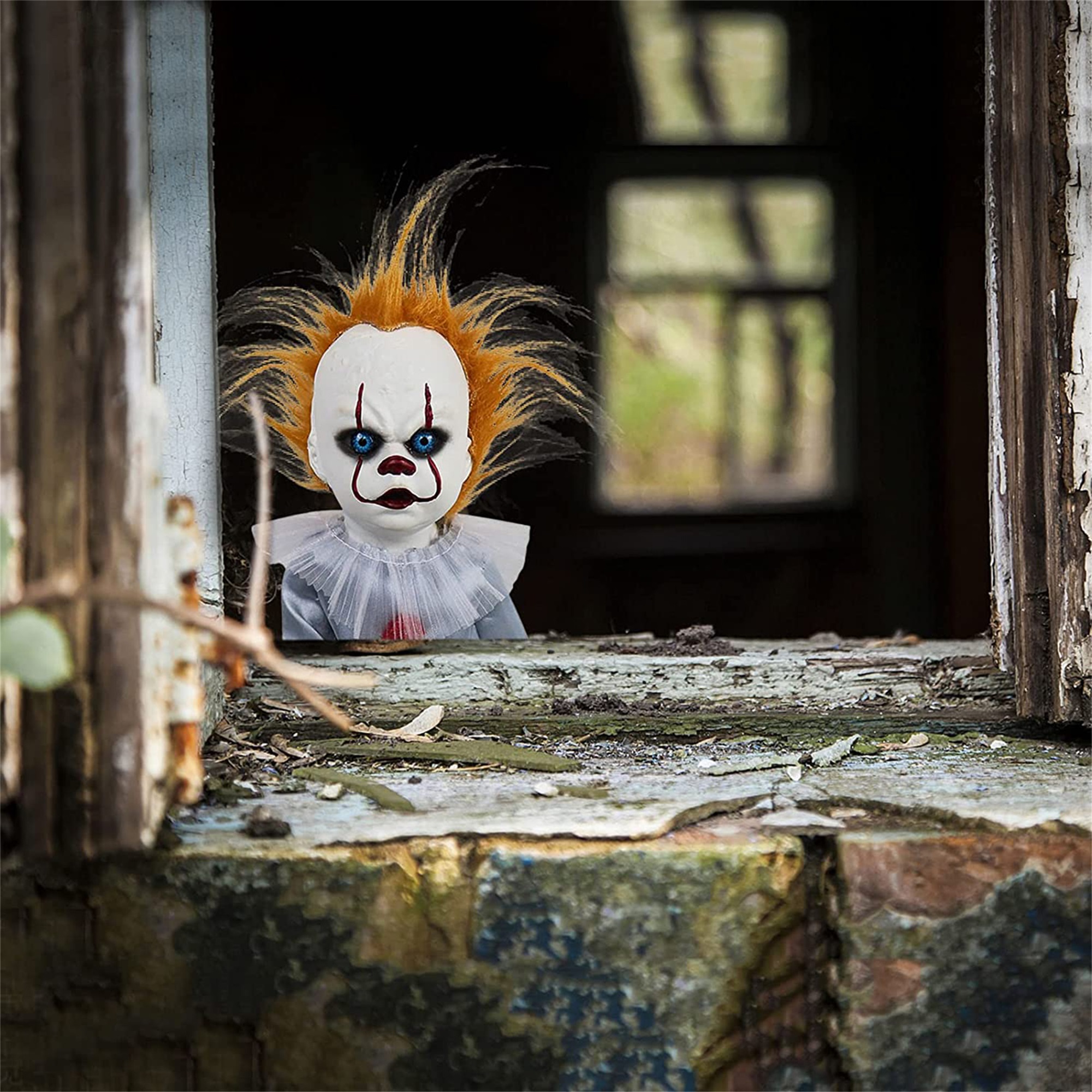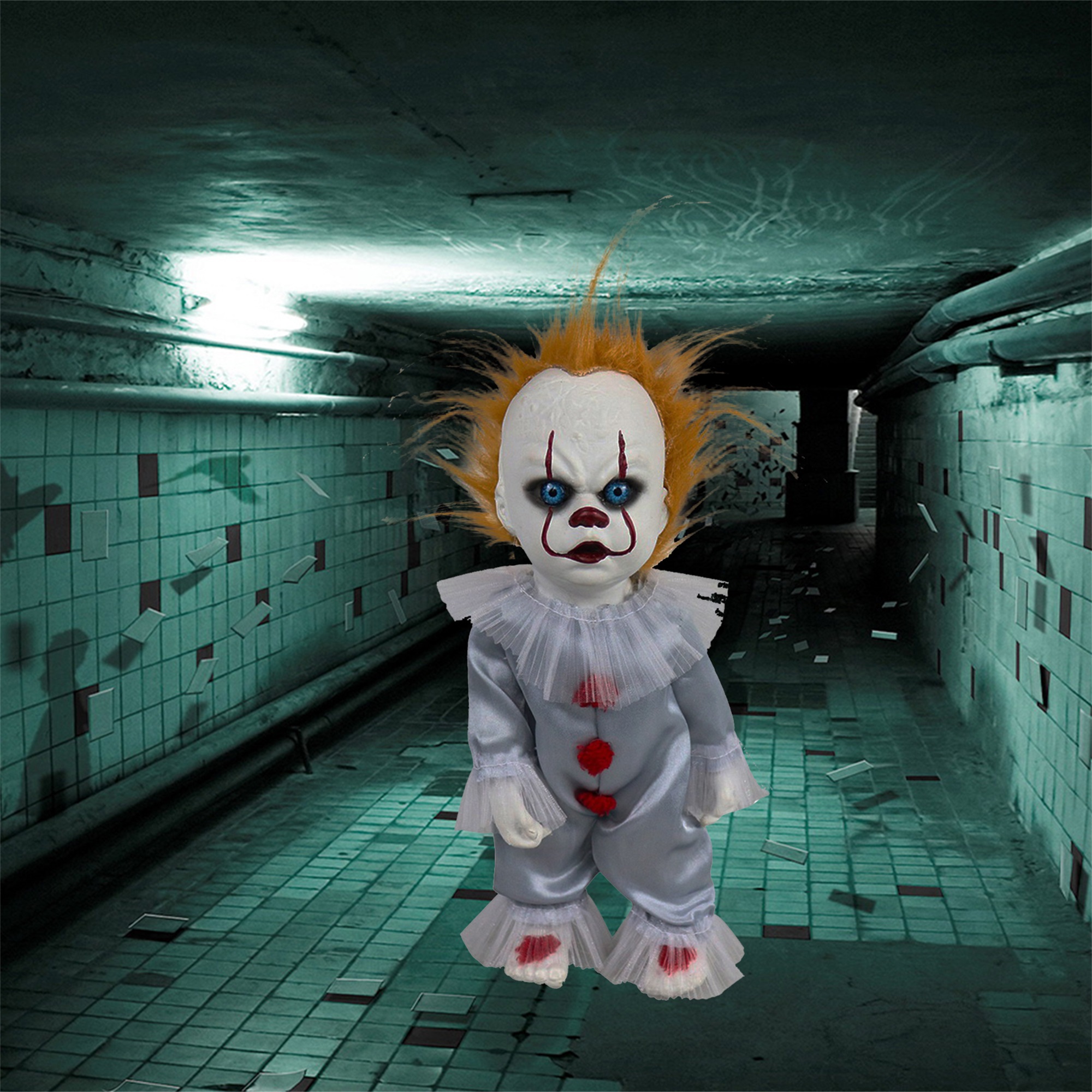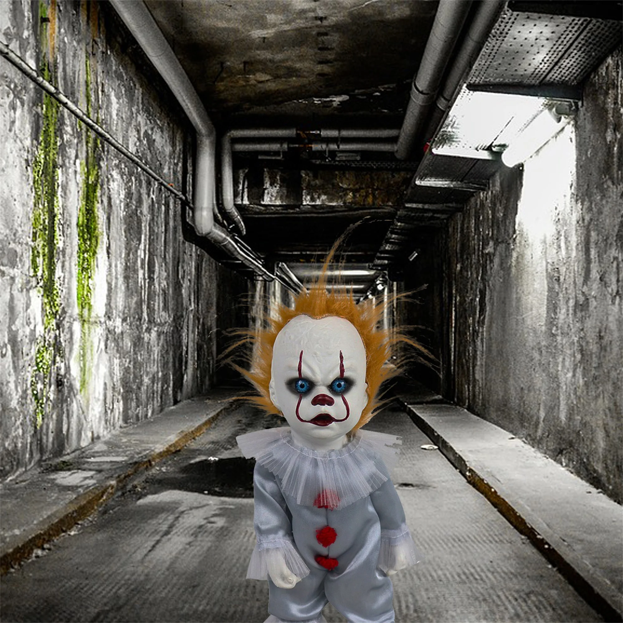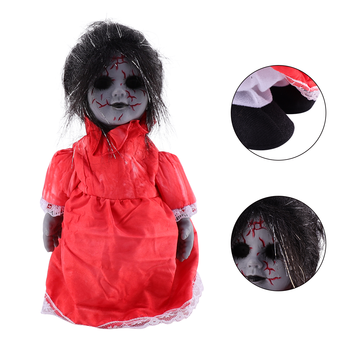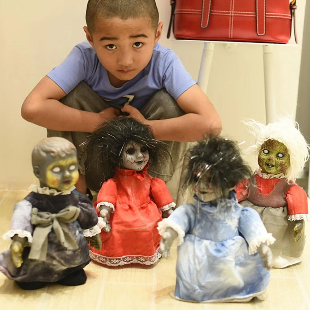 Halloween Scary Dolls, 1 PC Halloween Voice-activated Induction Doll Glowing Walking Doll Scene Layout Props for Haunted House Party Bar without Battery