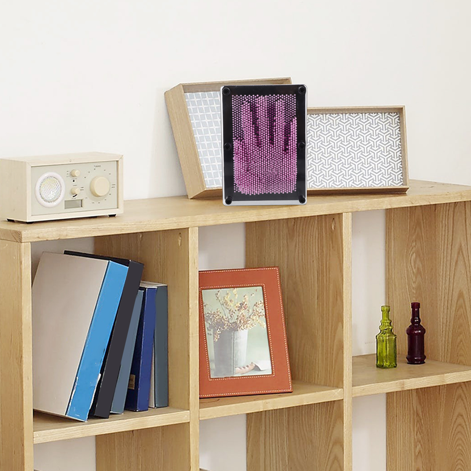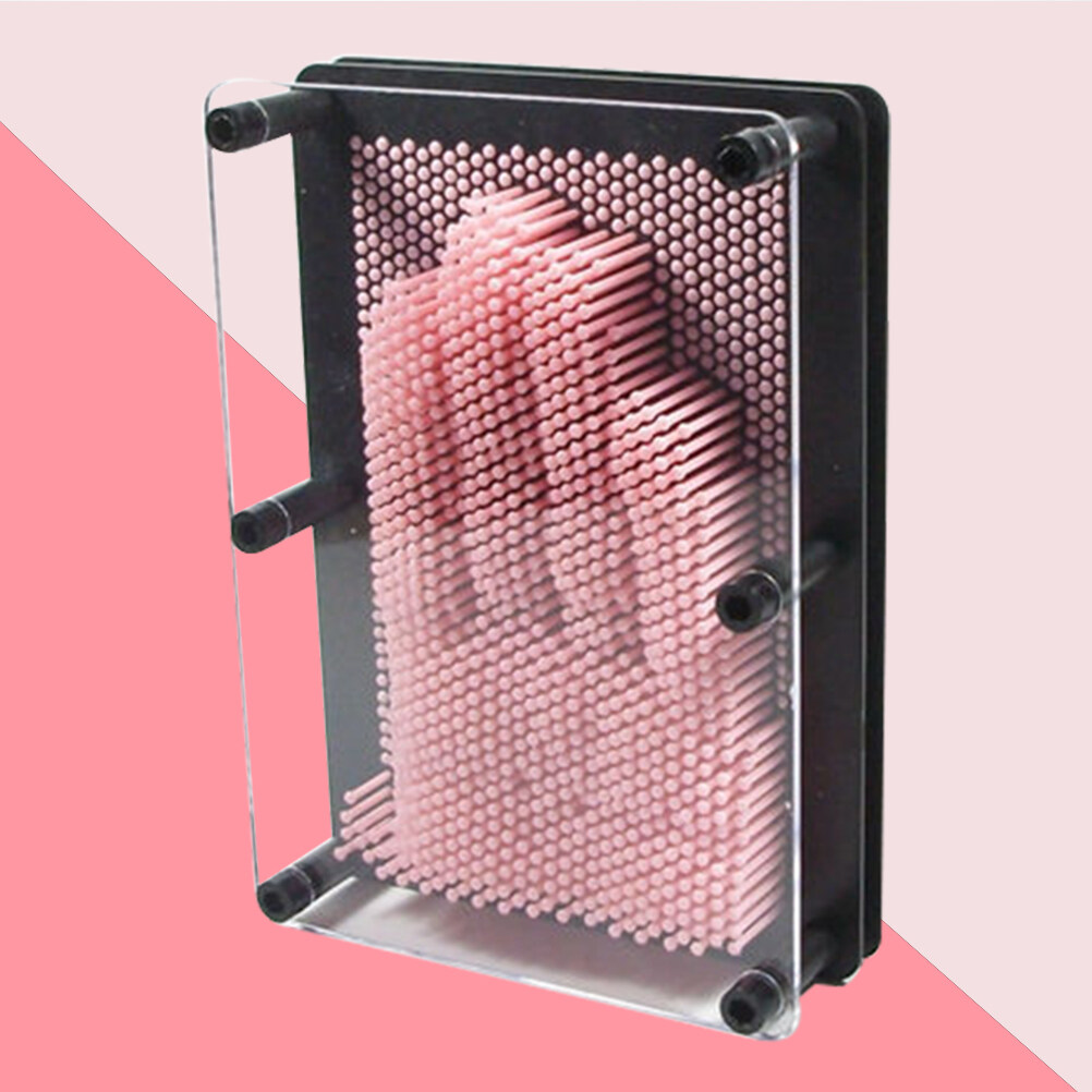 2pcs Classic 3-Dimensional Pin Art Board Metal Silver Toy Learning Gift for Sculptures- Medium Size (Pink)