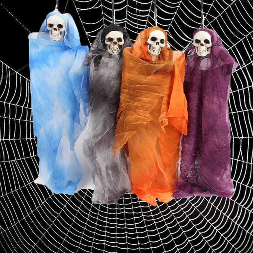 OUNONA Halloween Scary Skull Doll Haunted House Spooky Creepy Novelty Halloween Decoration Prop (Grey)