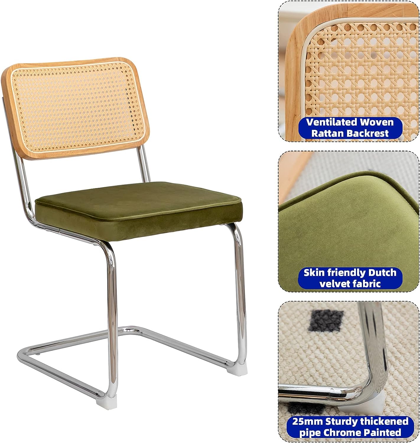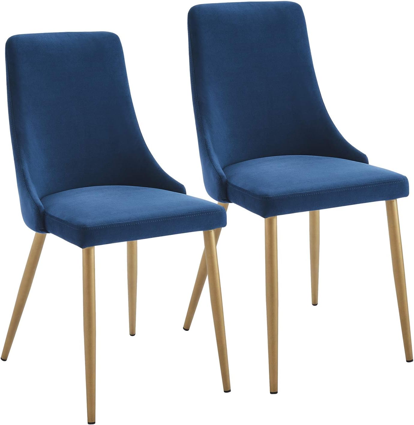 Best Master Mid-Century Velvet Upholstered Dining Side Chair in Blue (Set of 2)