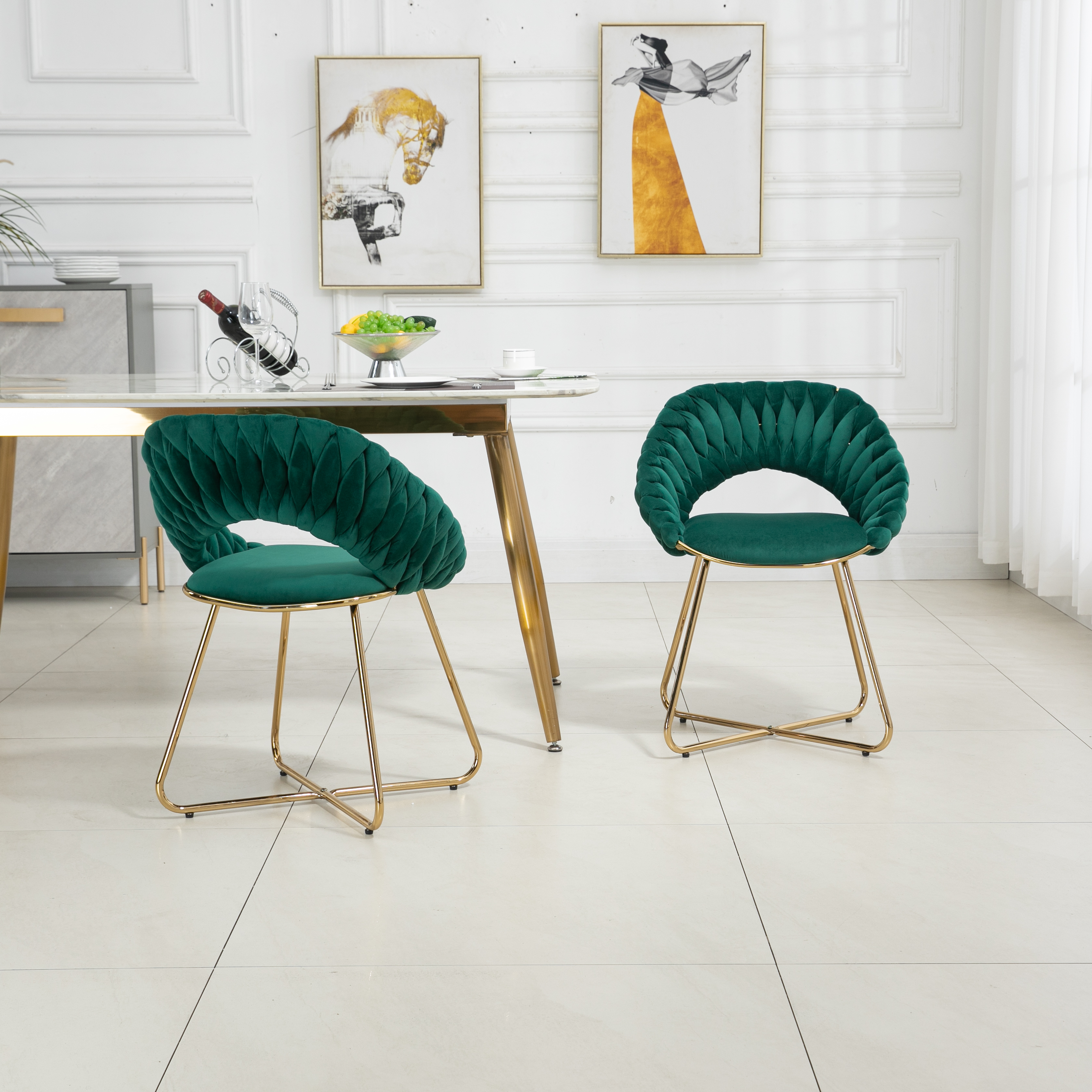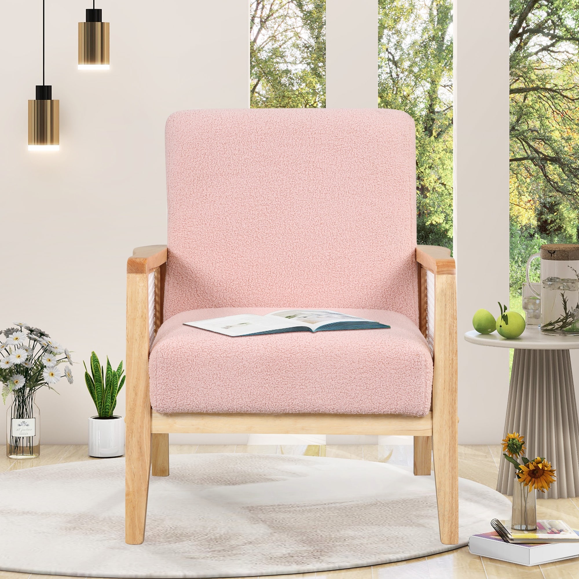 Mid-Century Dining Chairs Short Plush Velvet Side Chairs for Lawn Living Room Pink