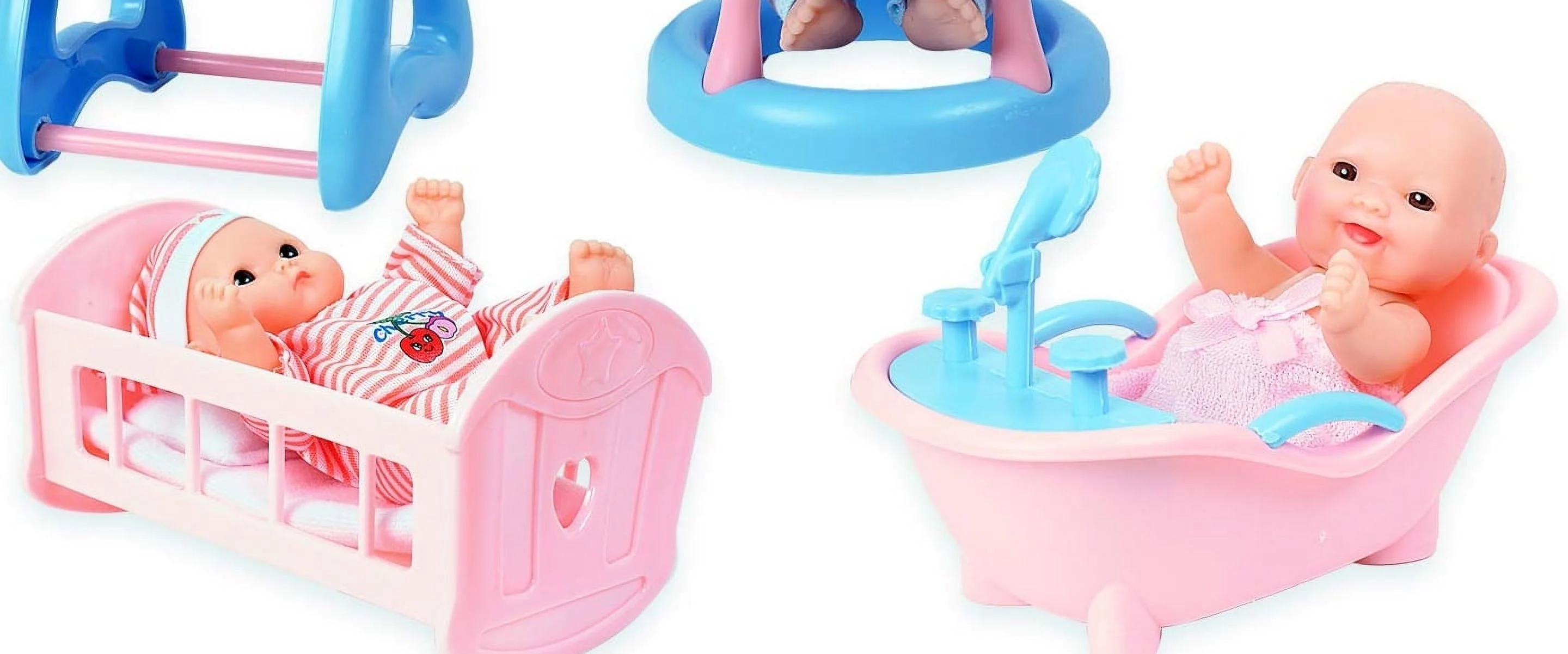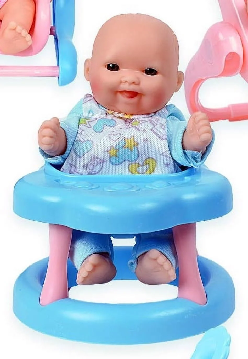 Playworld Set of 6 Scary Baby Mini Dolls with Cradle, High Chair, walker, Bathtub, Swing, and Baby Seat Scare Your Friends!