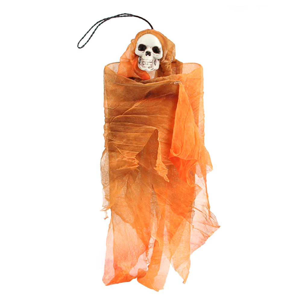 Halloween Scary Skull Doll Haunted House Spooky Creepy Novelty Halloween Decoration Prop (Orange)