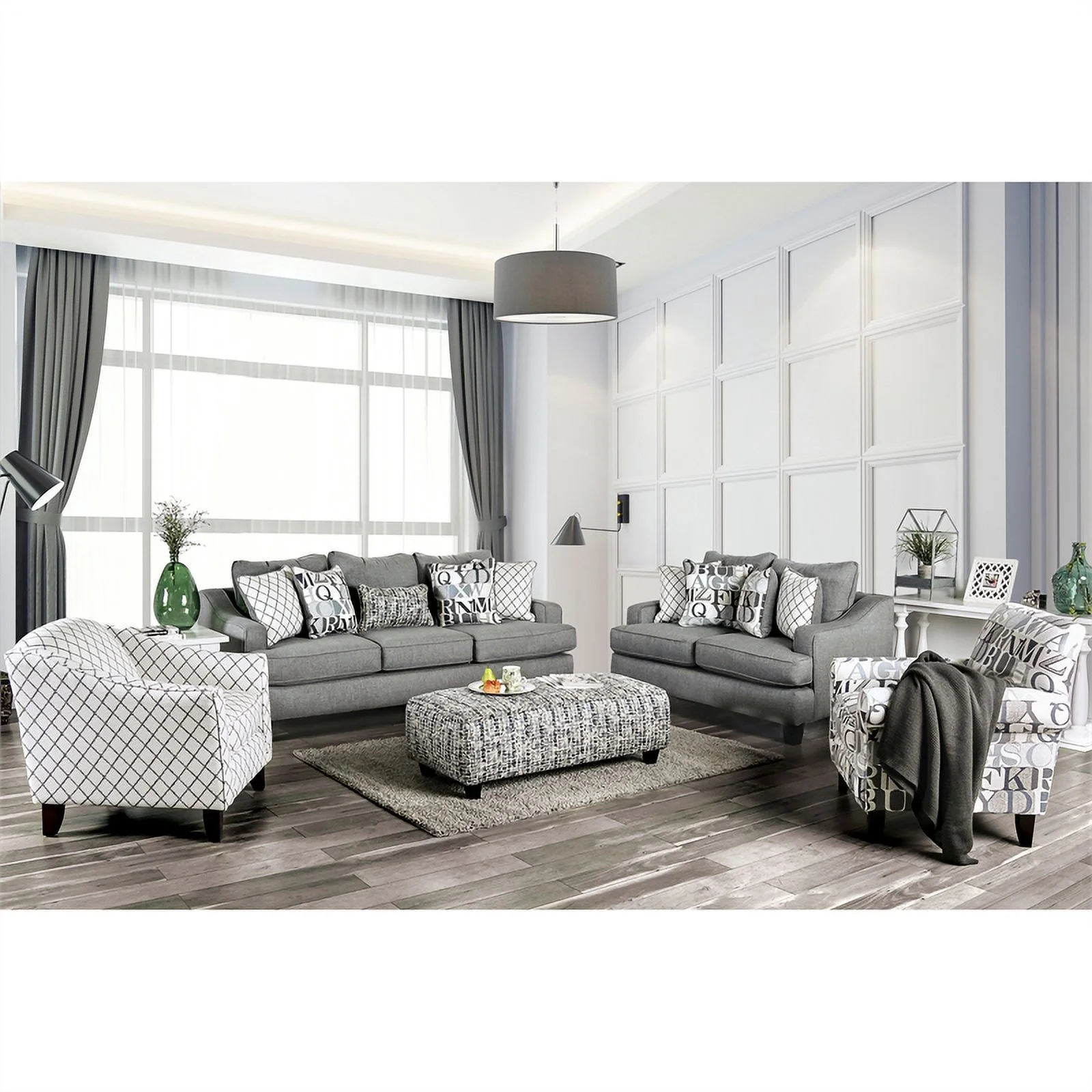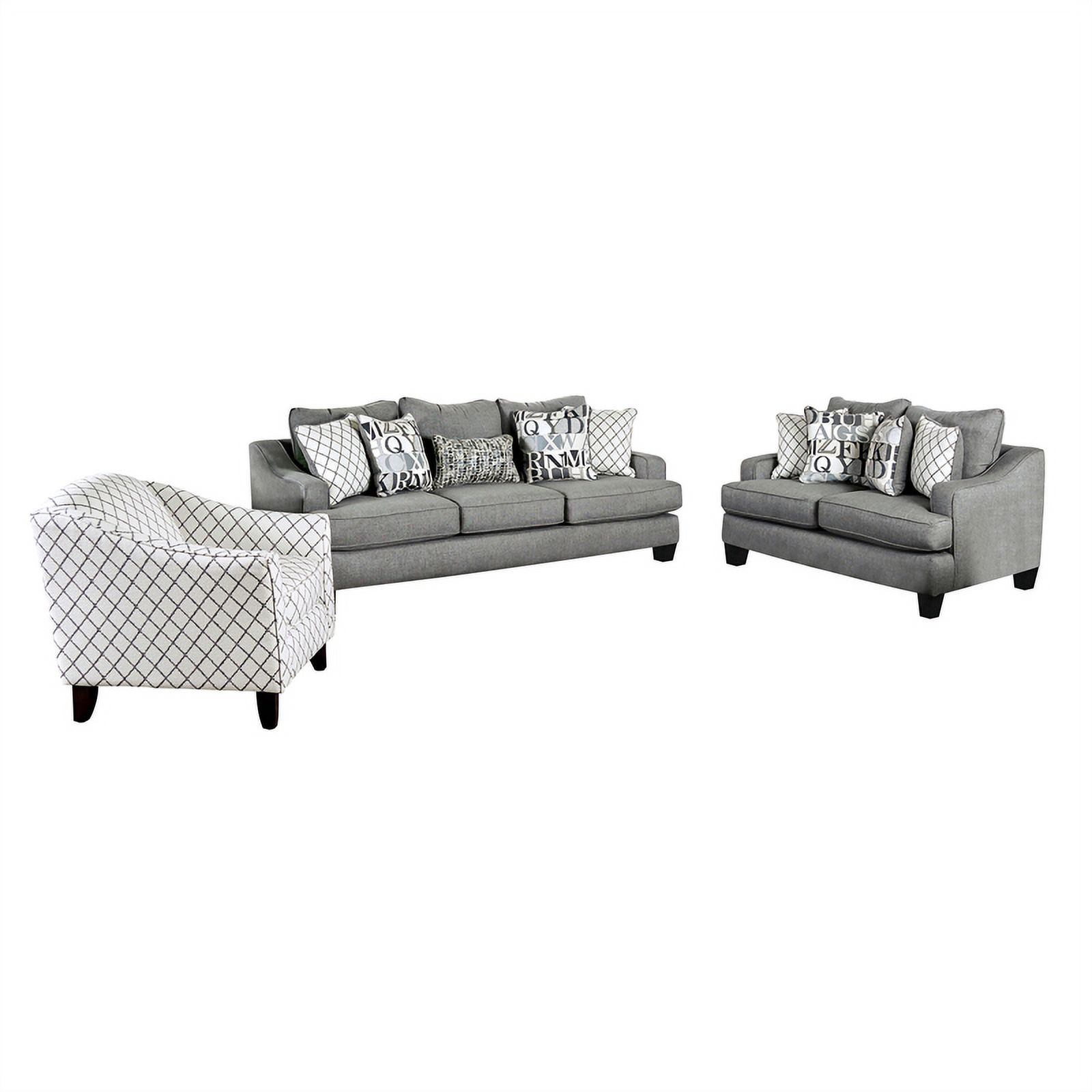 Furniture of America Kaci Transitional Fabric 3-Piece Sofa Set in Gray