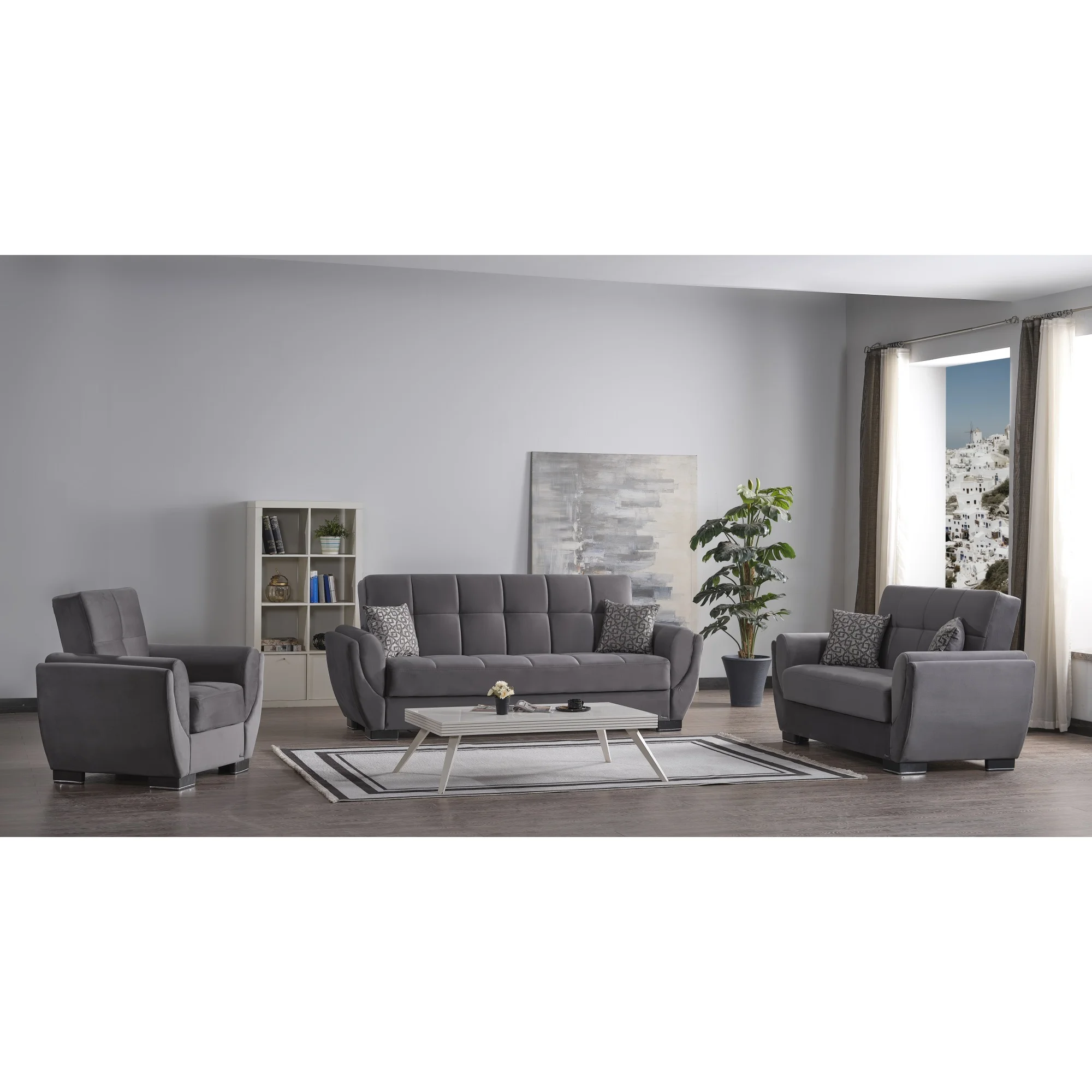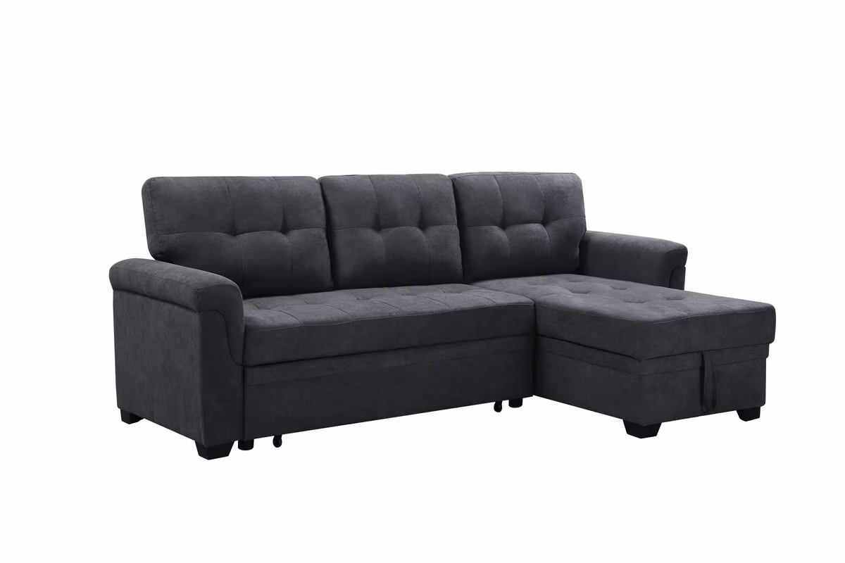 Lilola Home Connor Dark Gray Fabric Reversible Sectional Sleeper Sofa Chaise with Storage