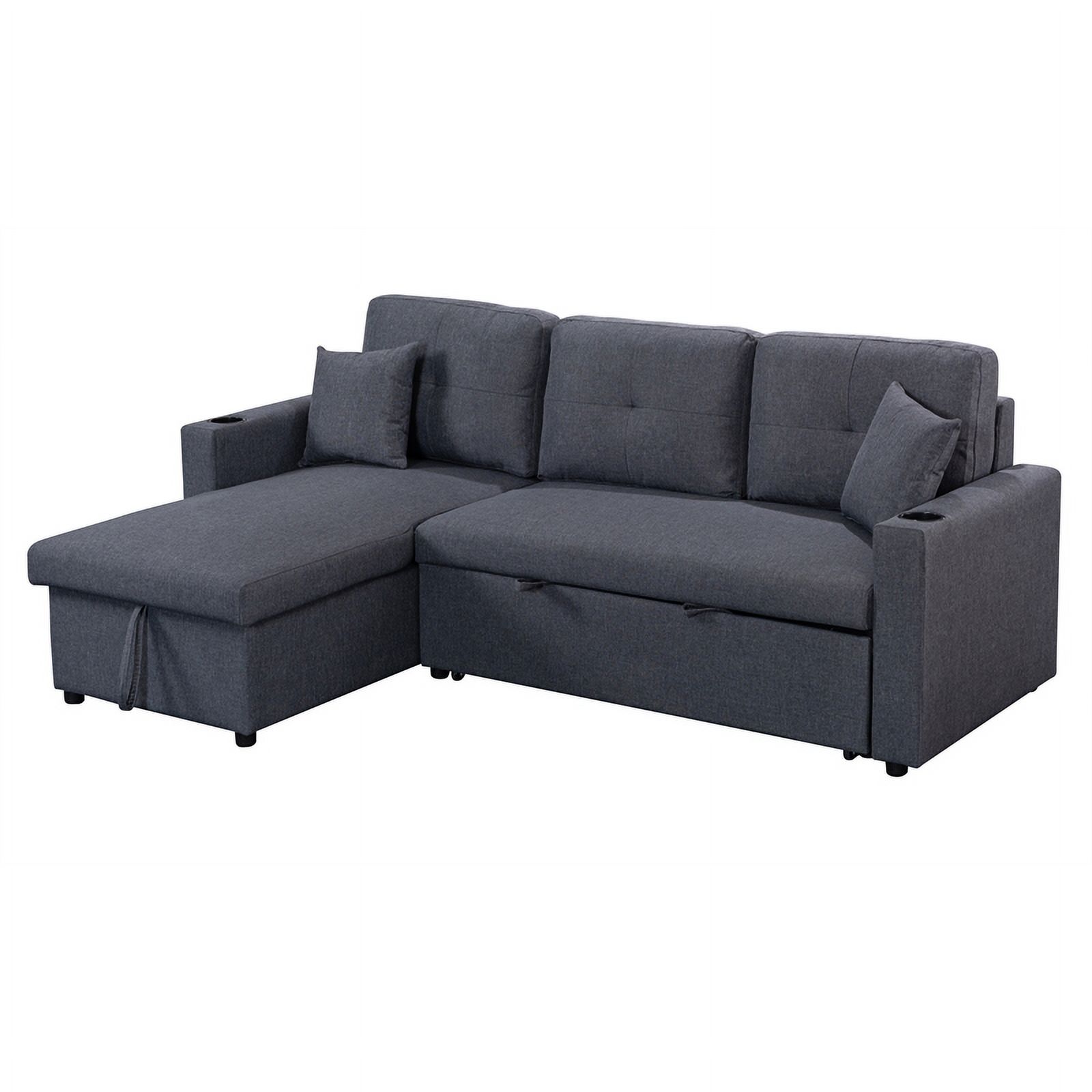87" Wide Linen Fabric Reversible Sleeper Sofa & Chaise & Cup Holder-Dark Gray
