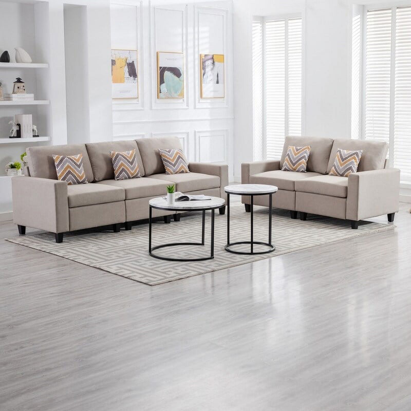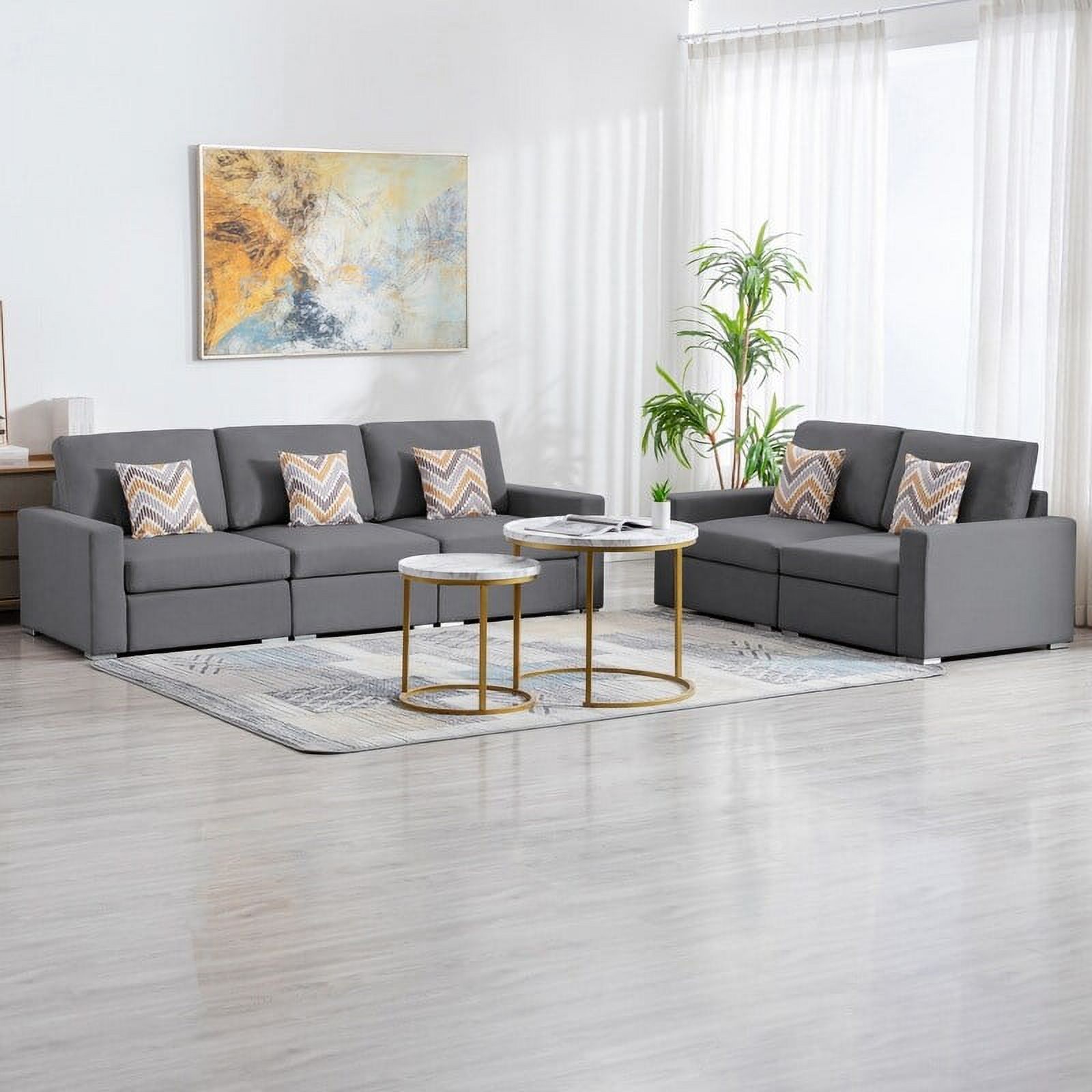 Nolan Linen Fabric Sofa and Loveseat Living Room Set with Pillows and Interchangeable Legs Grey