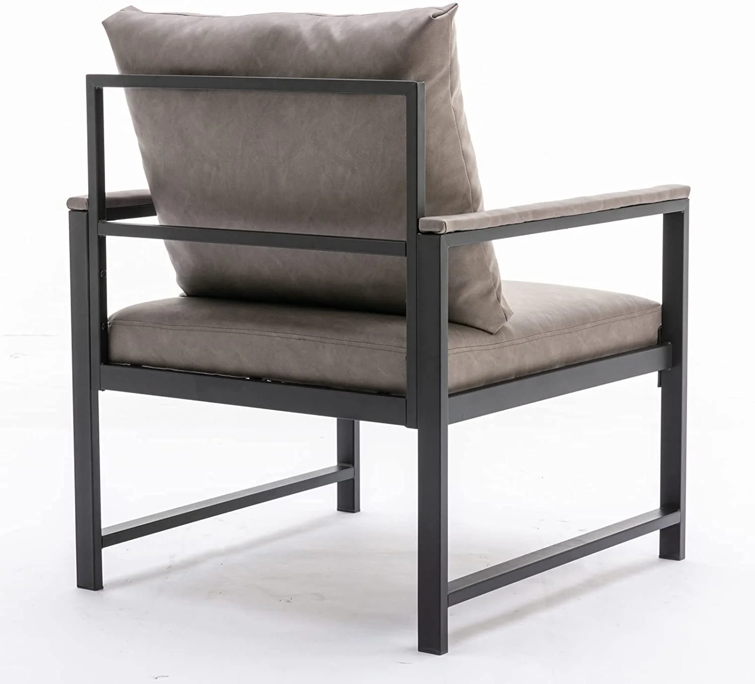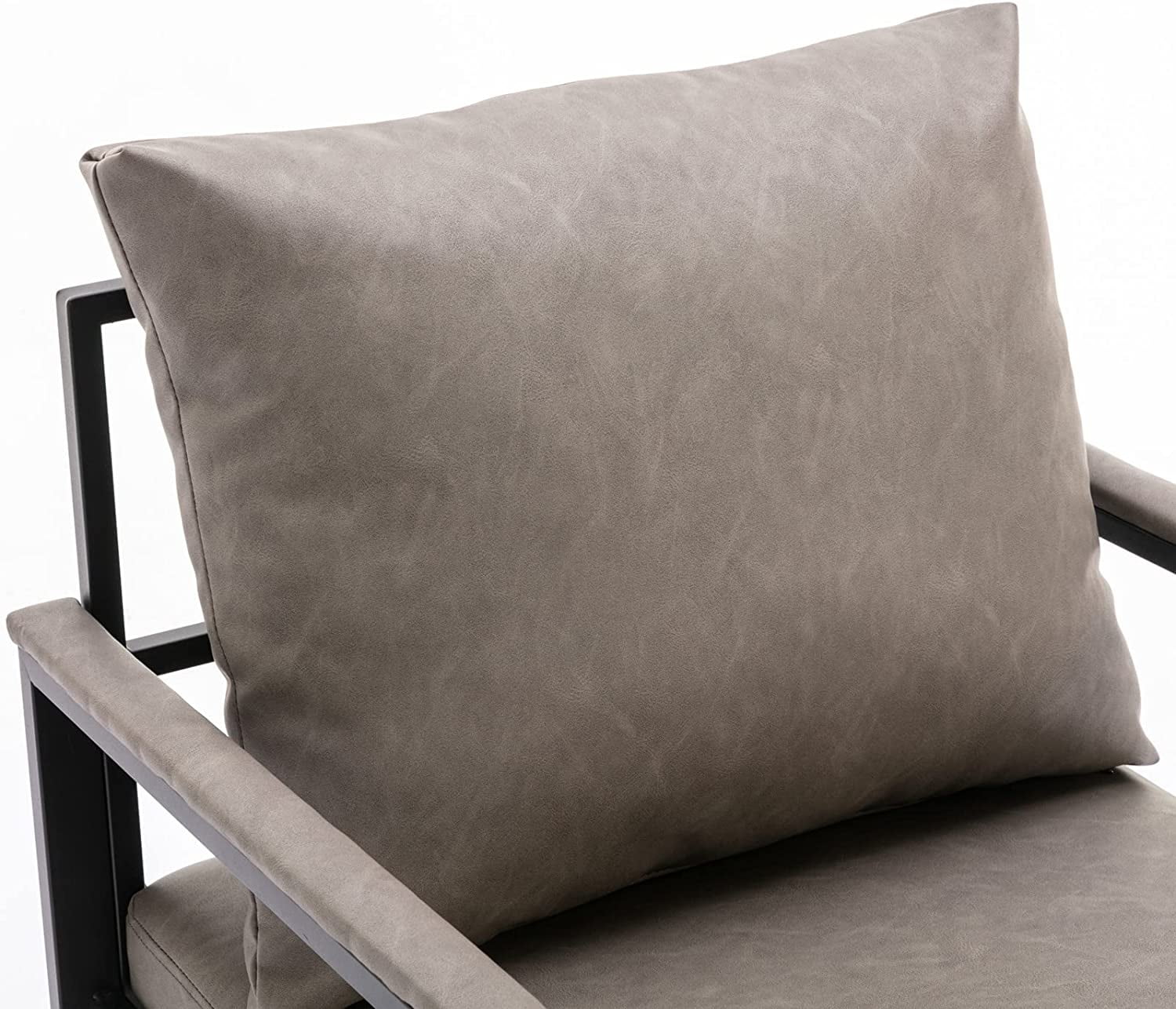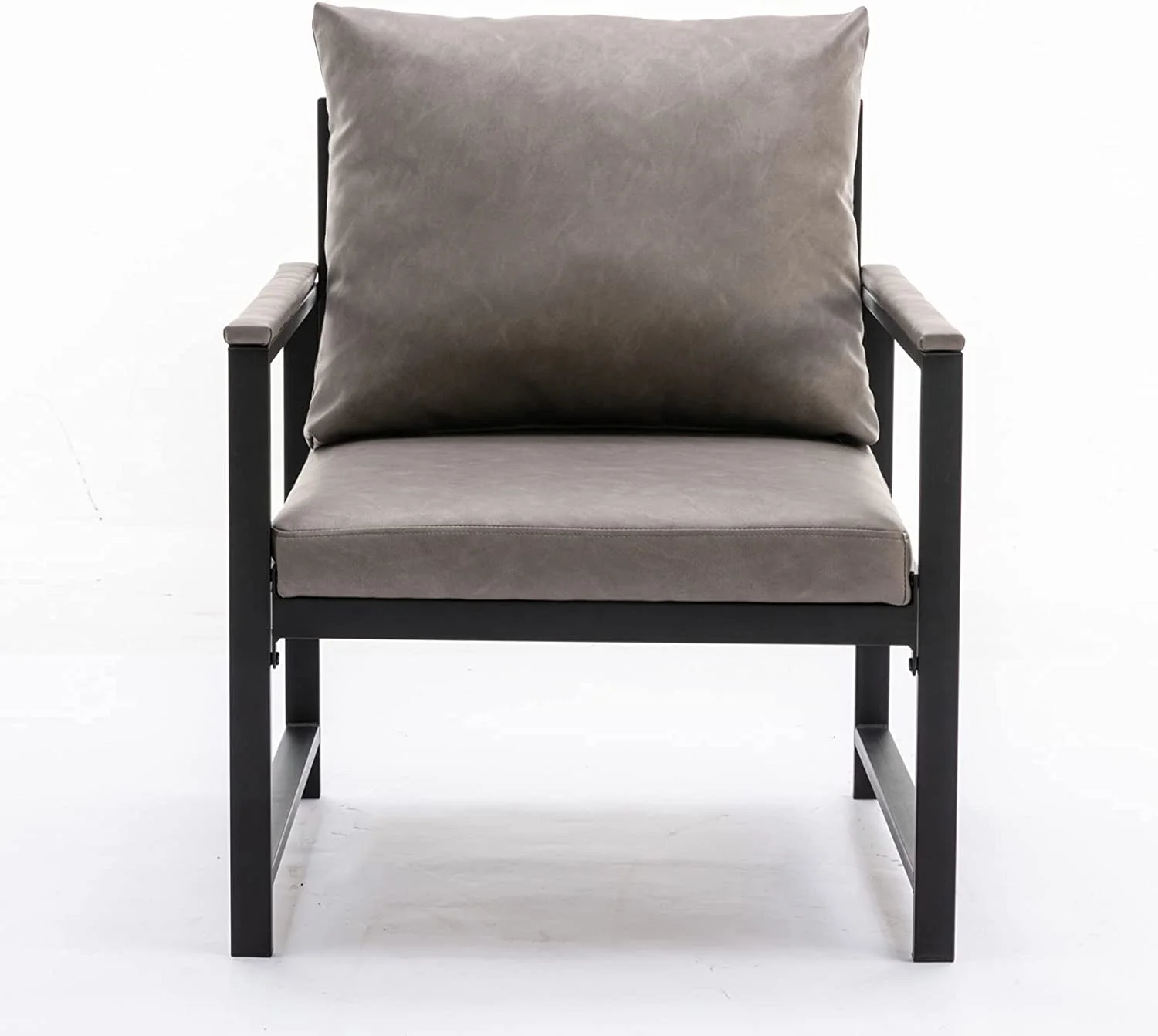 Faux Leather Accent Chair, Modern Upholstered Single Sofa Metal Frame For Living Room Bedroom Study, Gray
