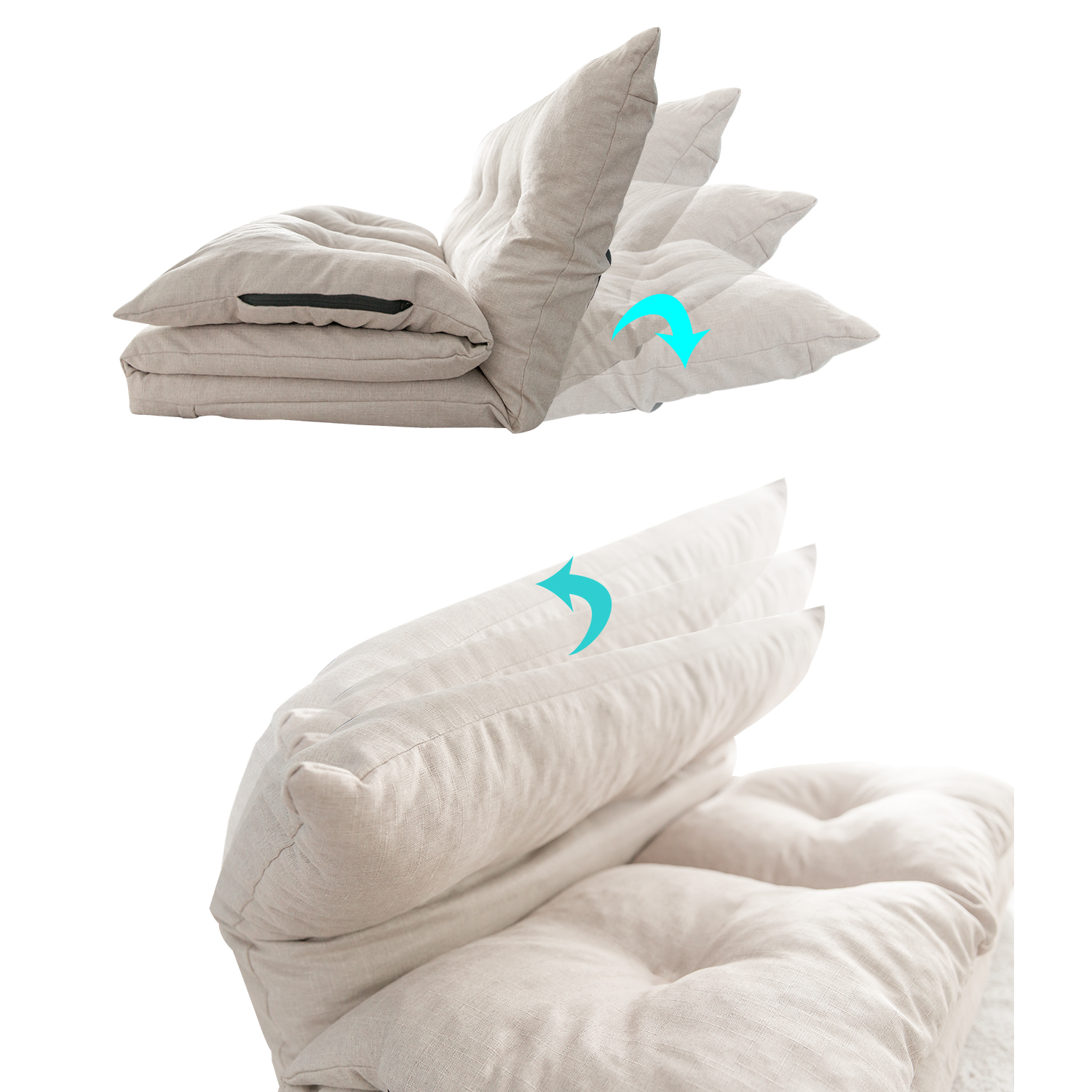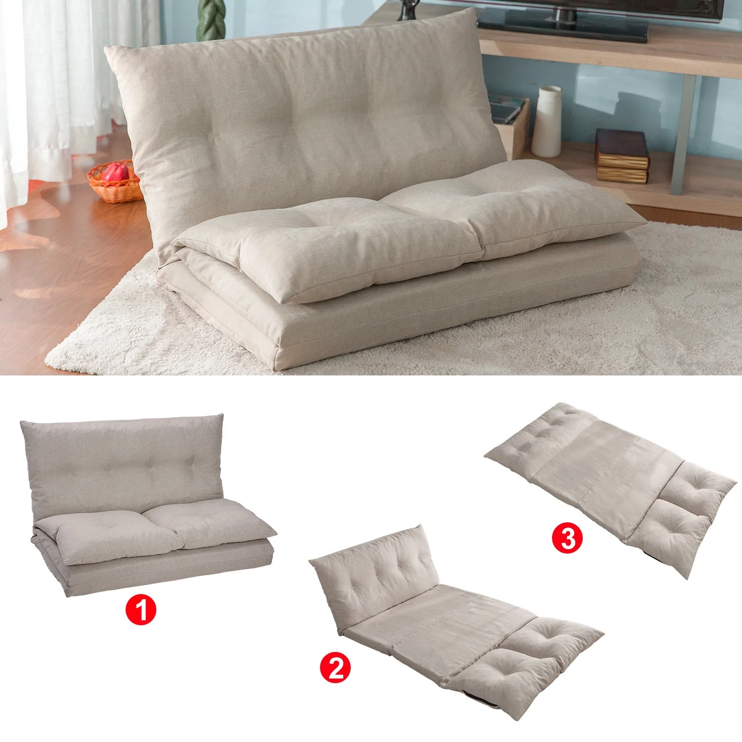 Modern Minimalist Teddy Fabric Upholstered Futon Sofa Bed with Two Pillows, Beige