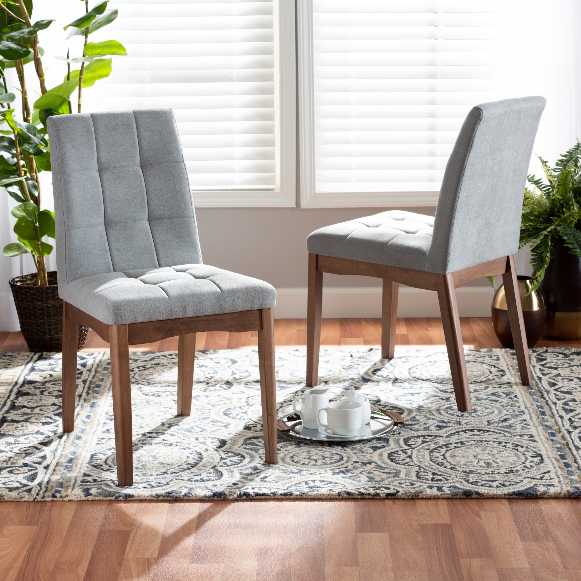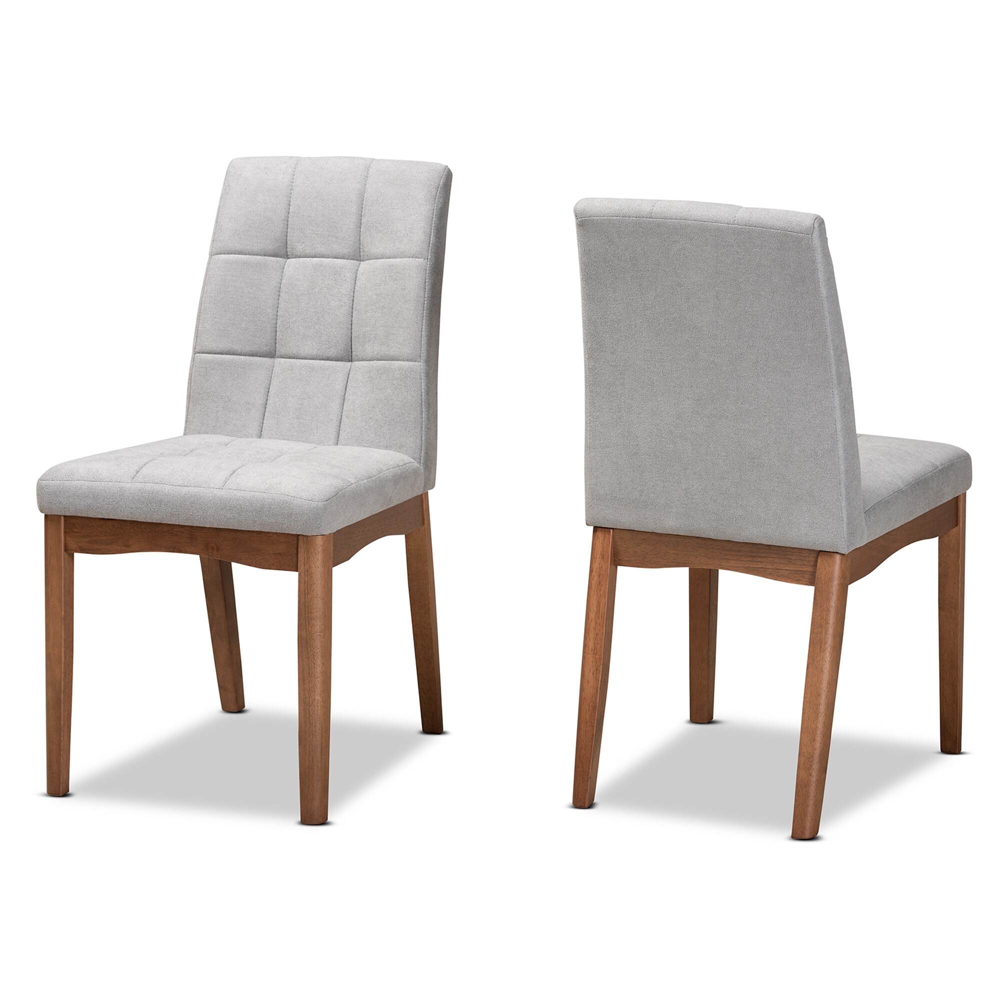 Baxton Studio Tara Mid-Century Upholstered and Walnut Finished 2-PC Dining Chair Set Grey