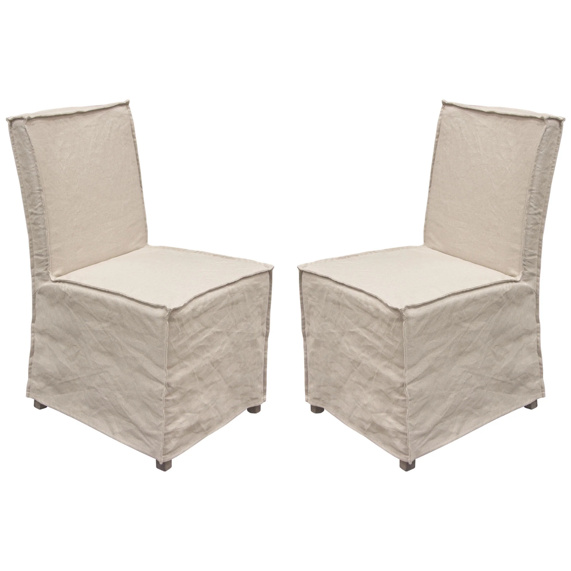 Diamond Sofa Sonoma Dining Chairs with Wood Legs & Removable Slipcover, Sand Linen - Pack of 2