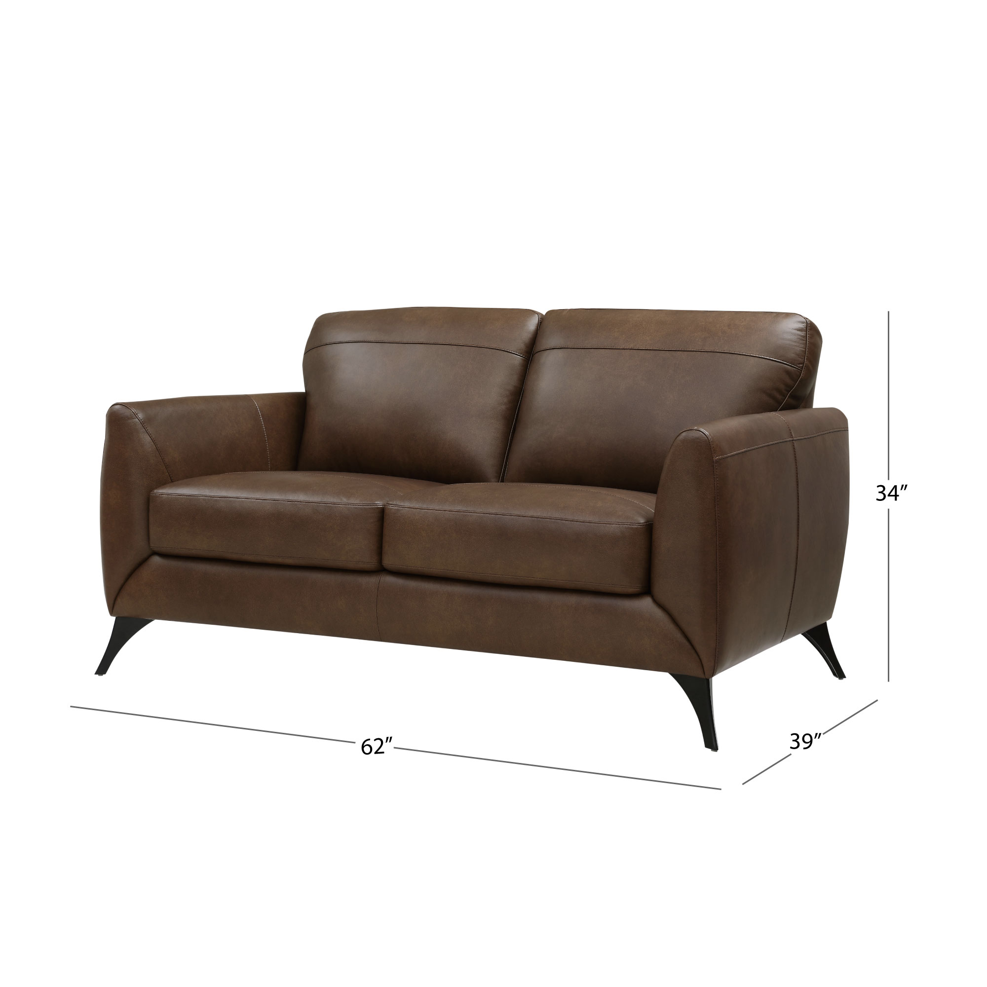 HomeStock Mountain Majesty Modern Mid-Century Upholstered Leather Loveseat with Gold Frame