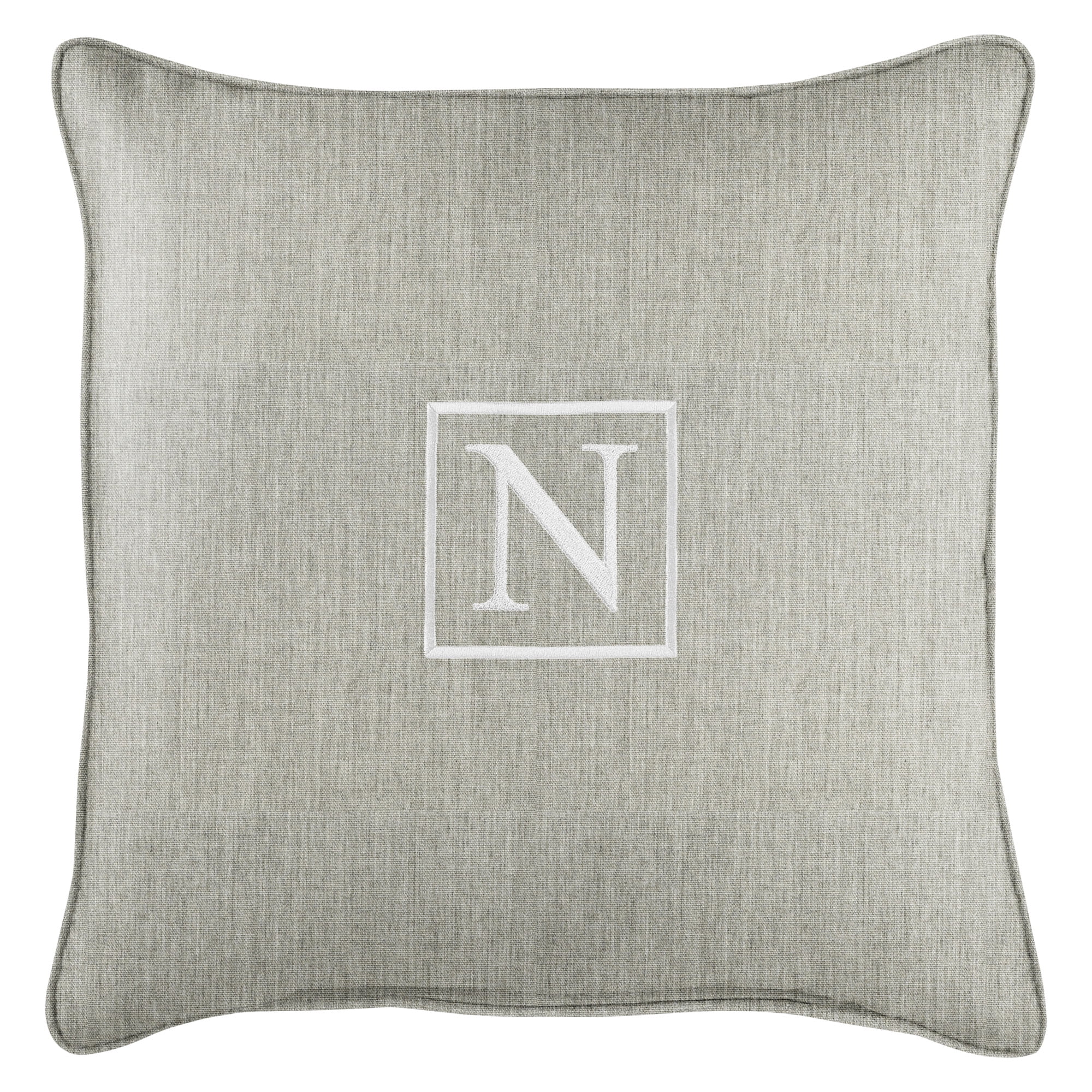 18" Granite Gray Sunbrella Square Indoor/Outdoor Monogram "N" Single Embroidered Throw Pillow
