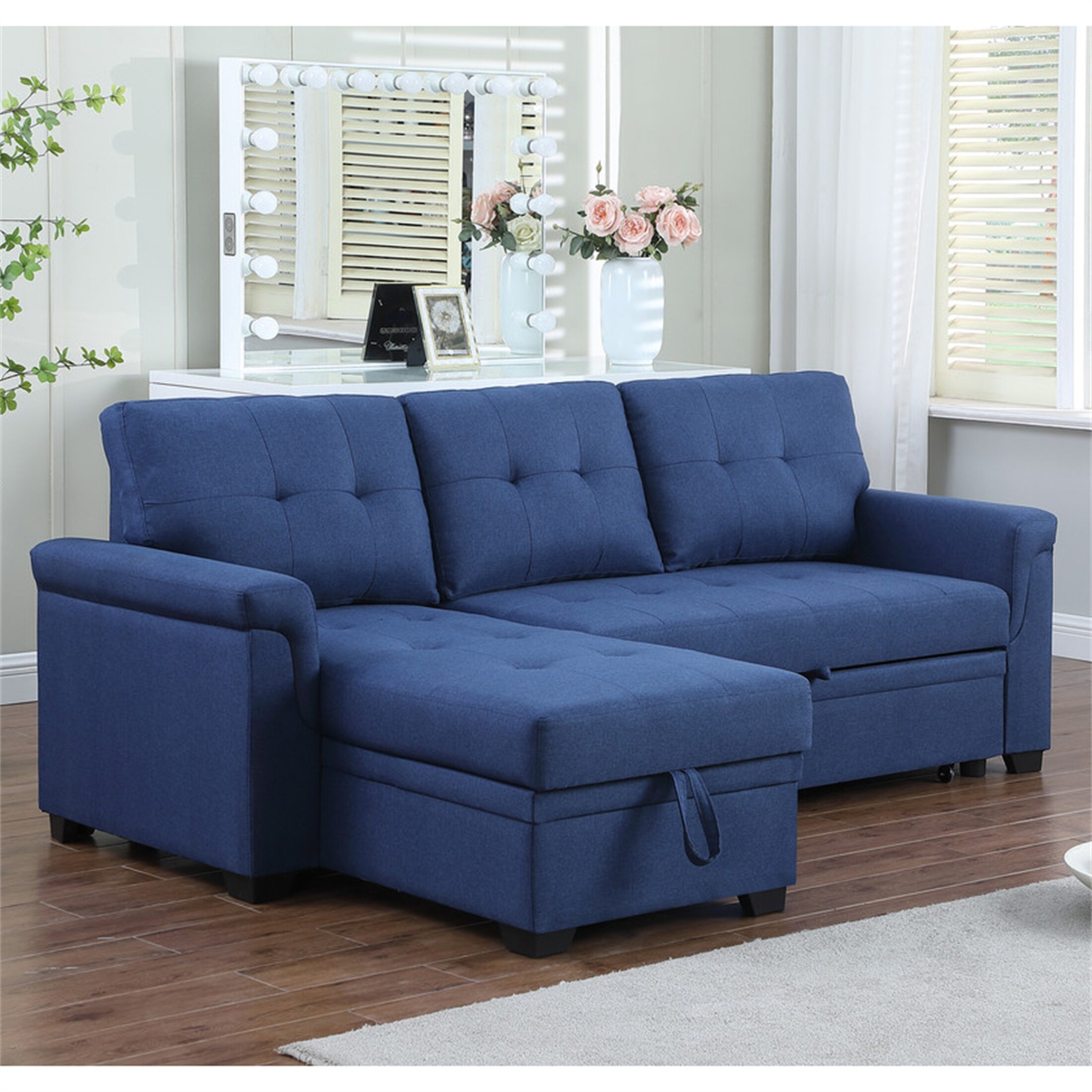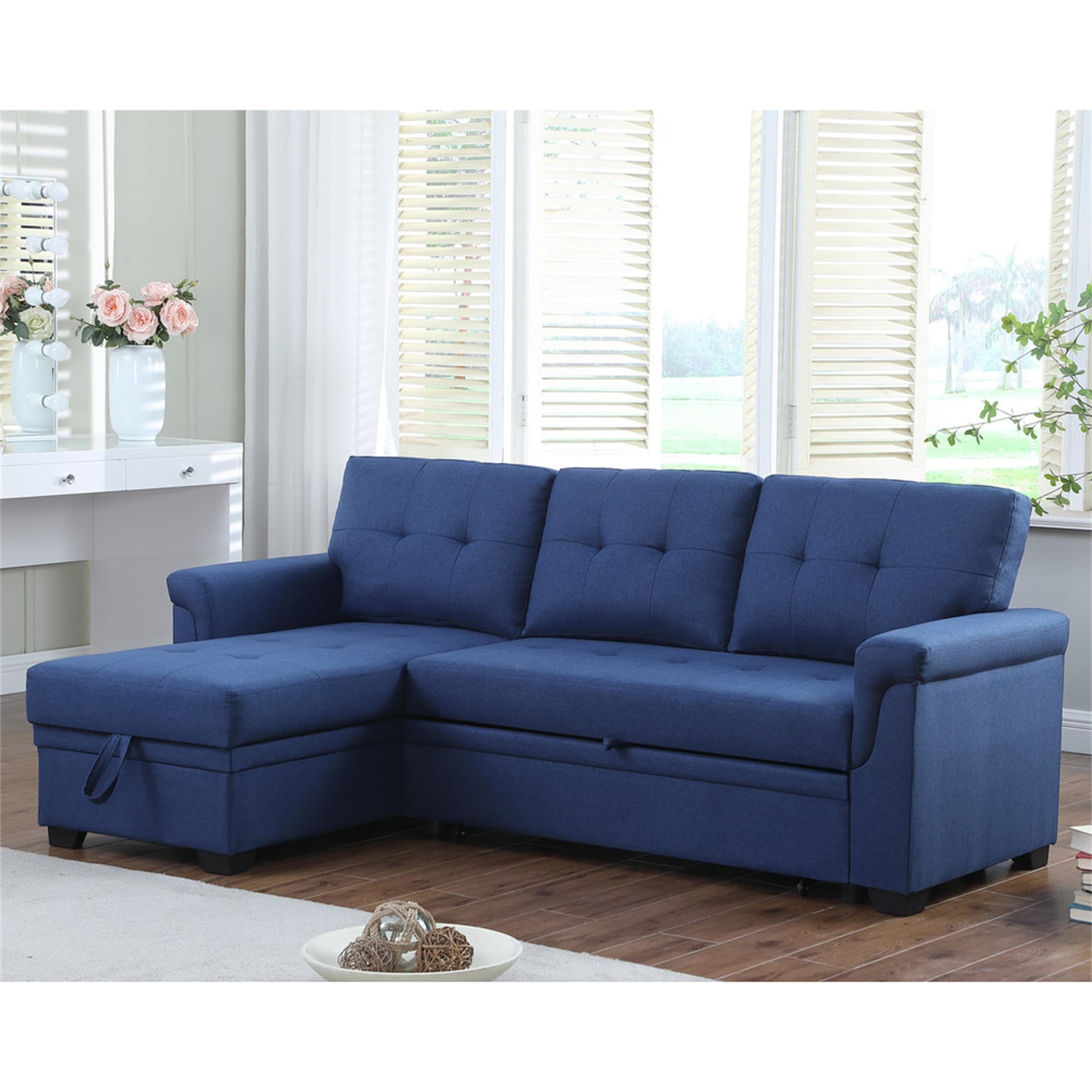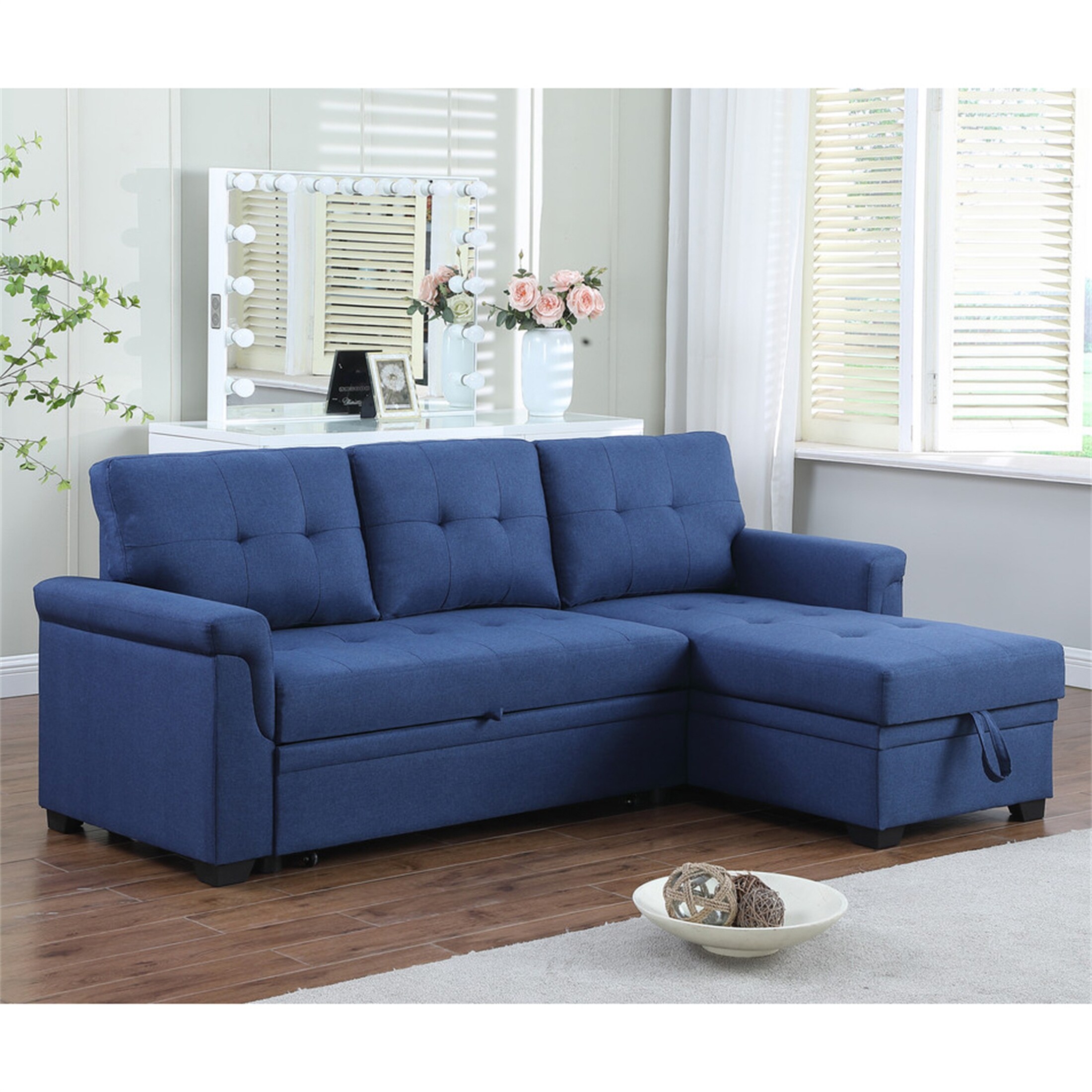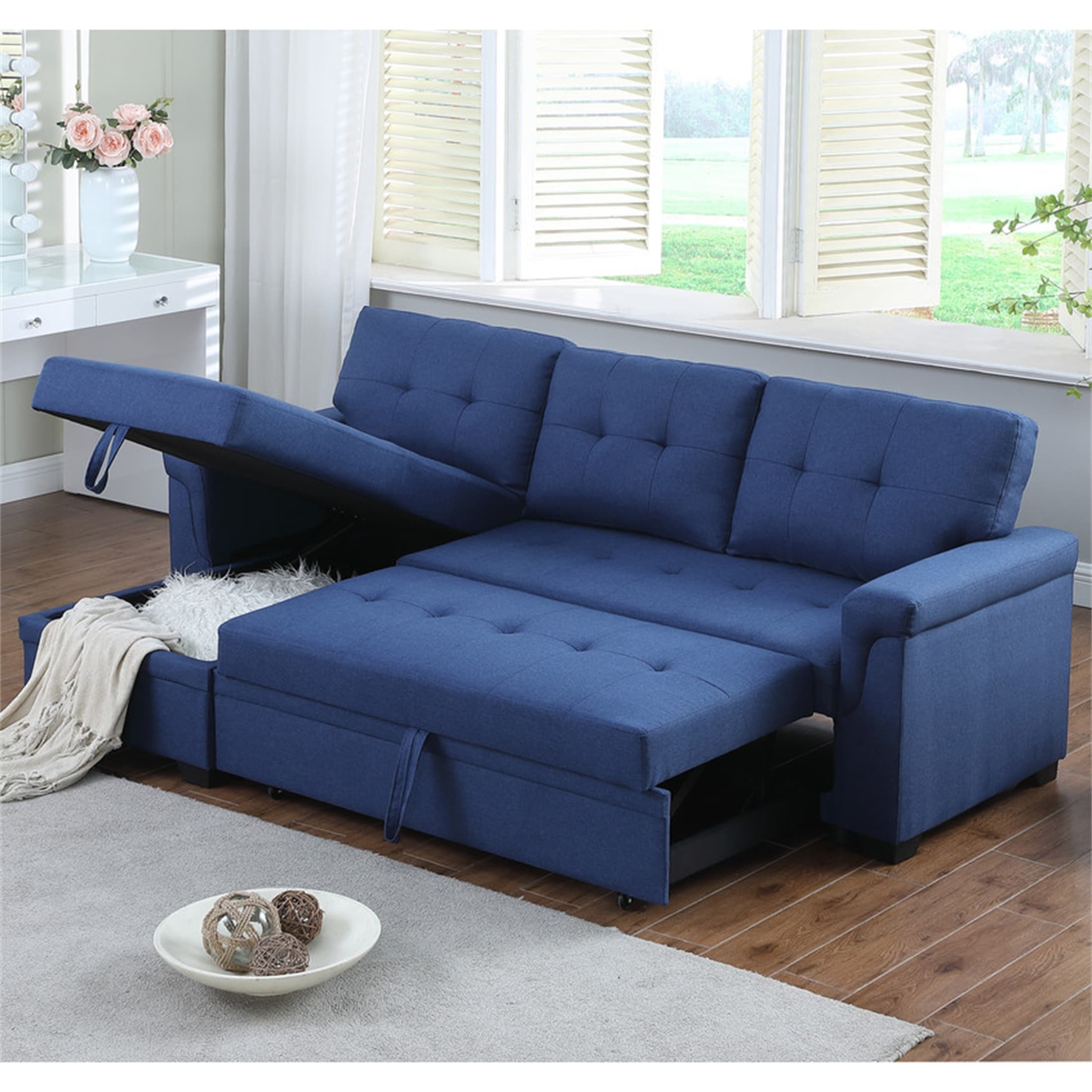 YJTONWIN Linen Reversible Sleeper Sectional Sofa with Storage Chaise Blue