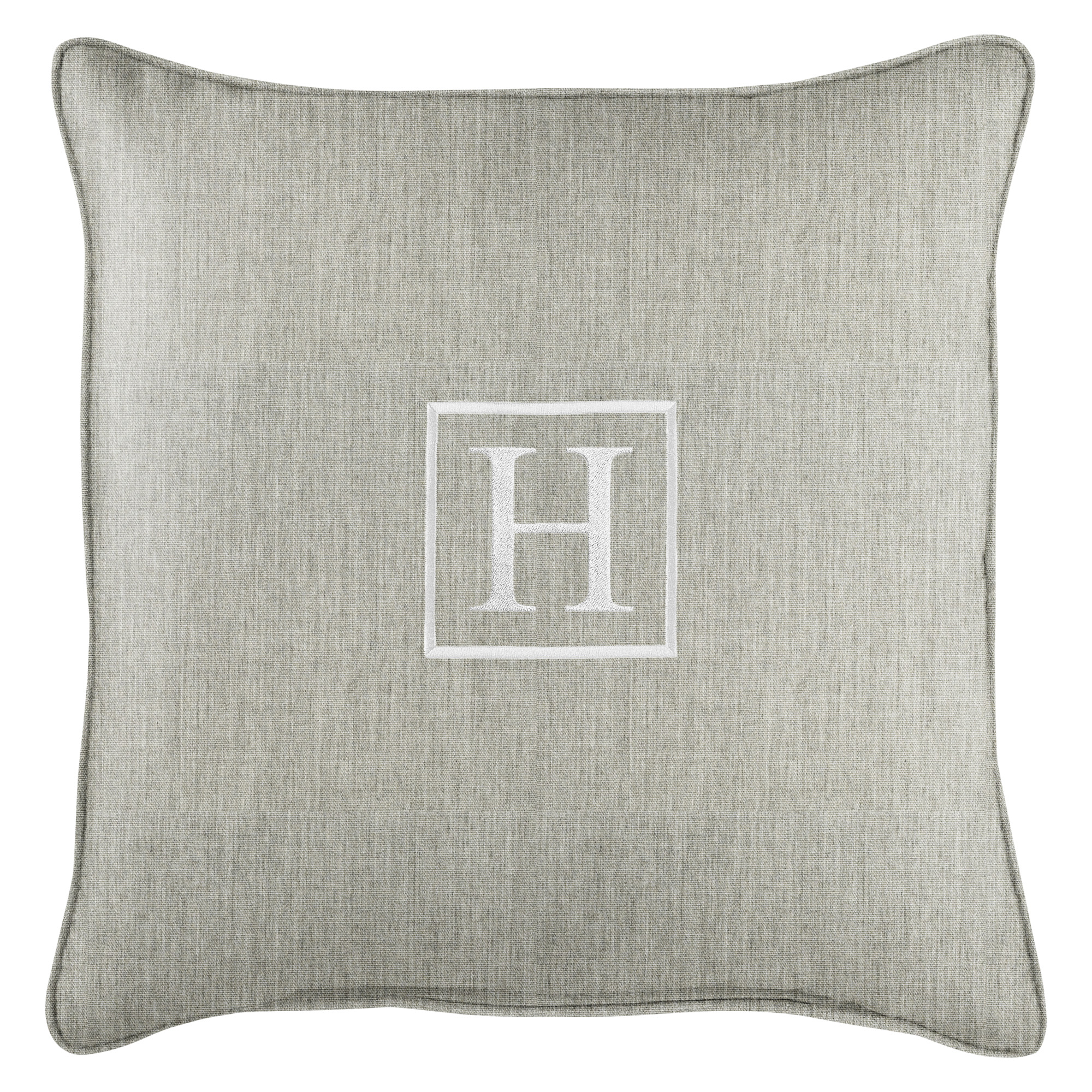 18" Granite Gray Sunbrella Square Indoor/Outdoor Monogram "H" Single Embroidered Throw Pillow