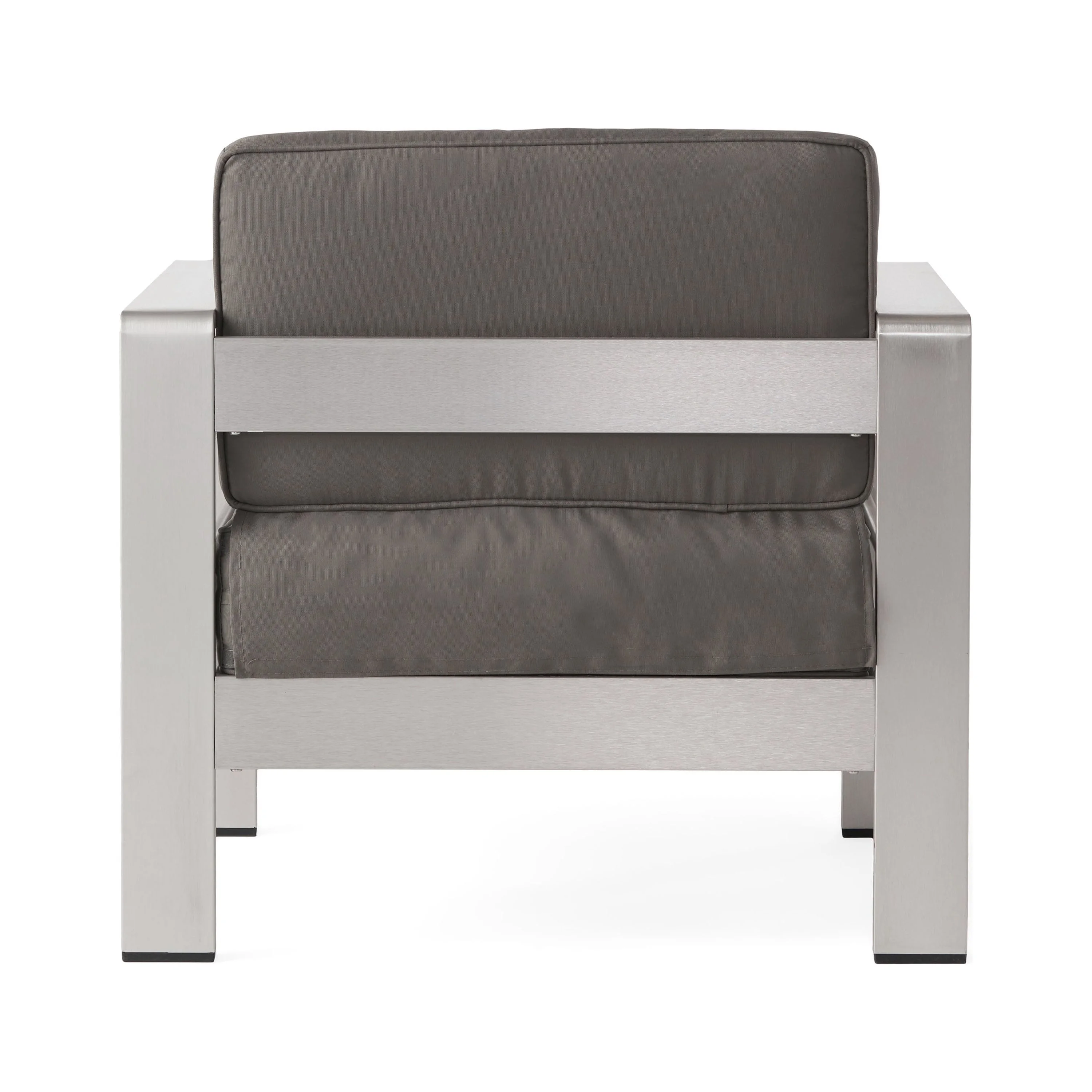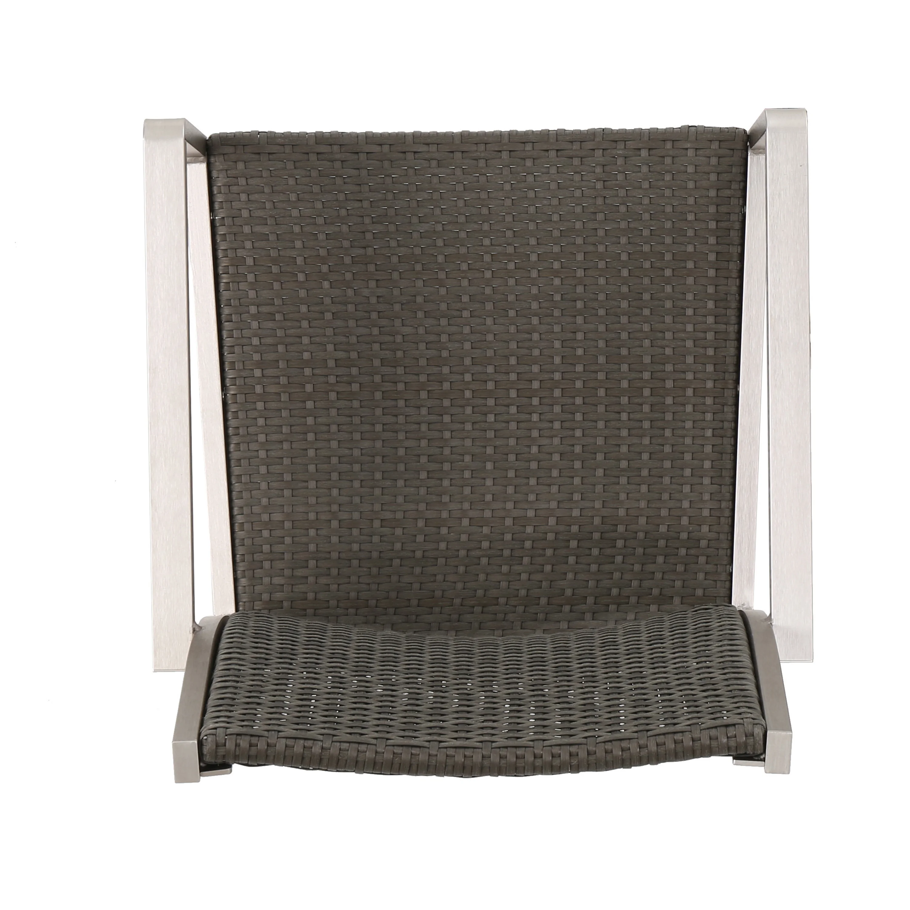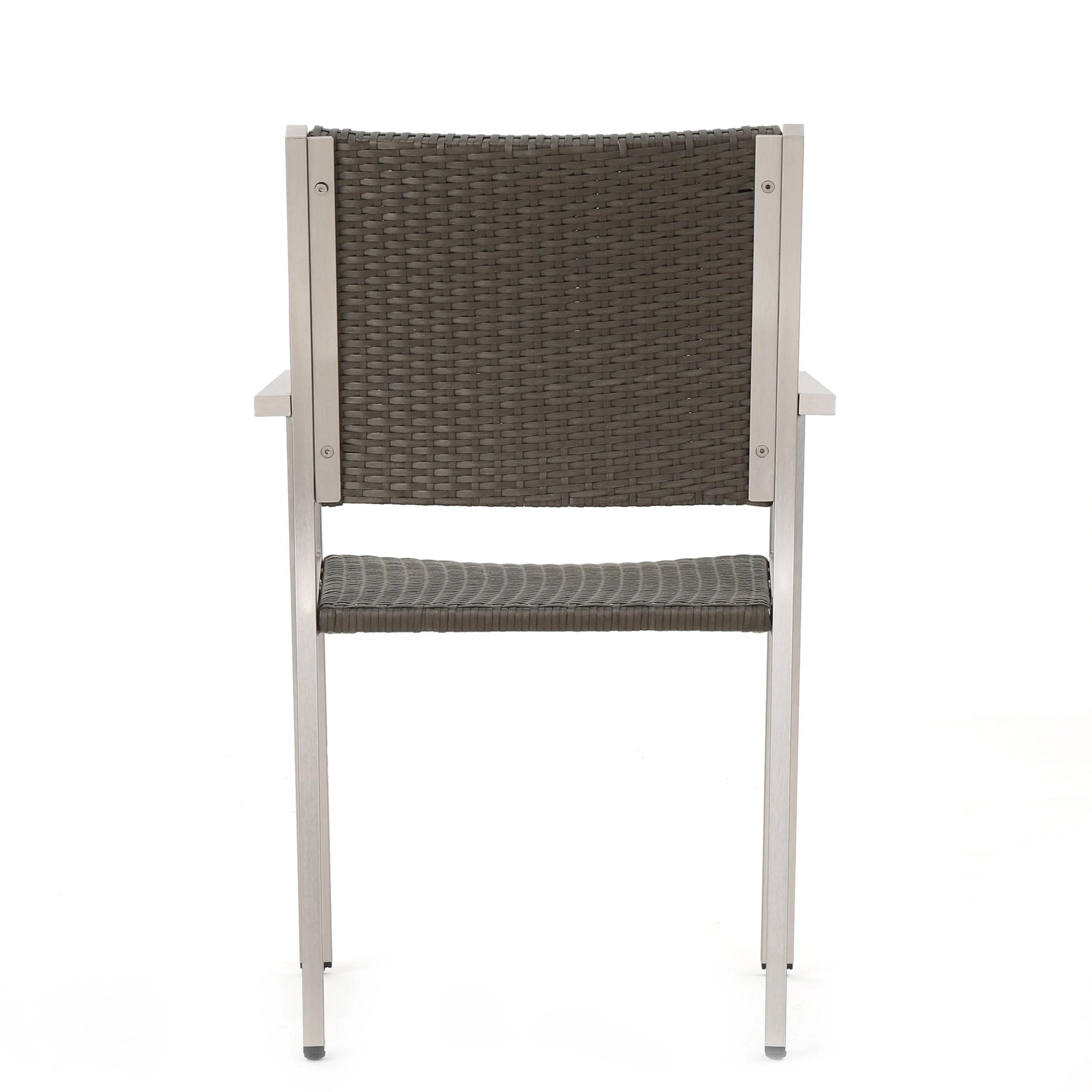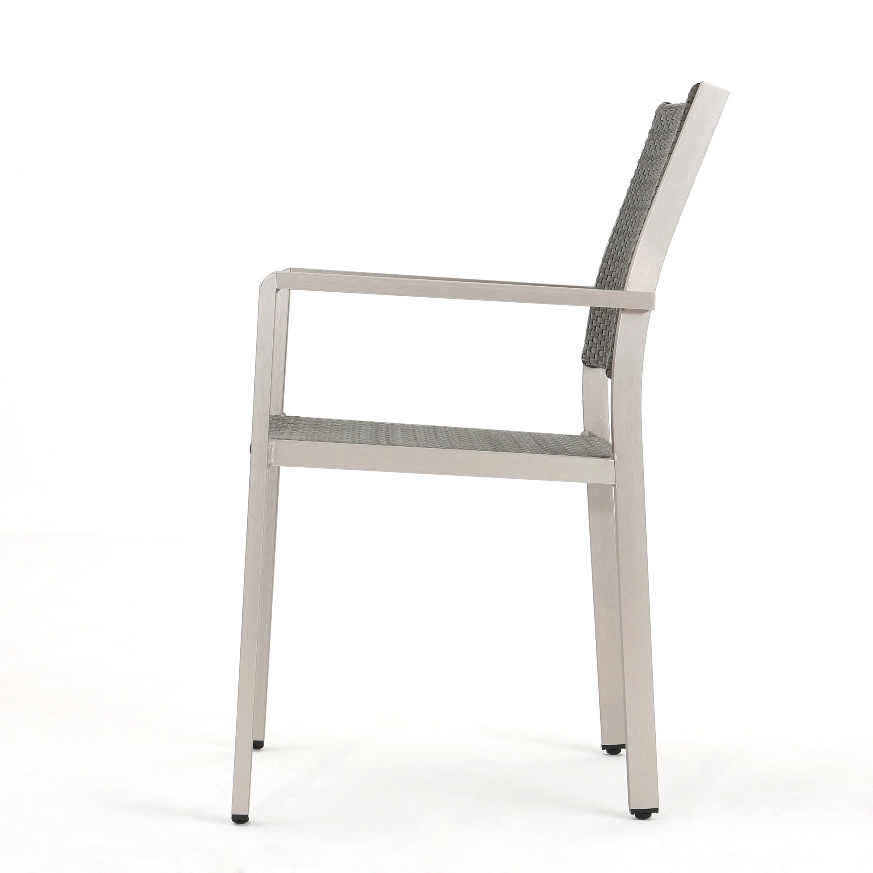 GDF Studio Crested Bay Outdoor Aluminum 9 Seater Estate Collection with Wicker 5 Piece Dining Set, Silver, Khaki, and Gray