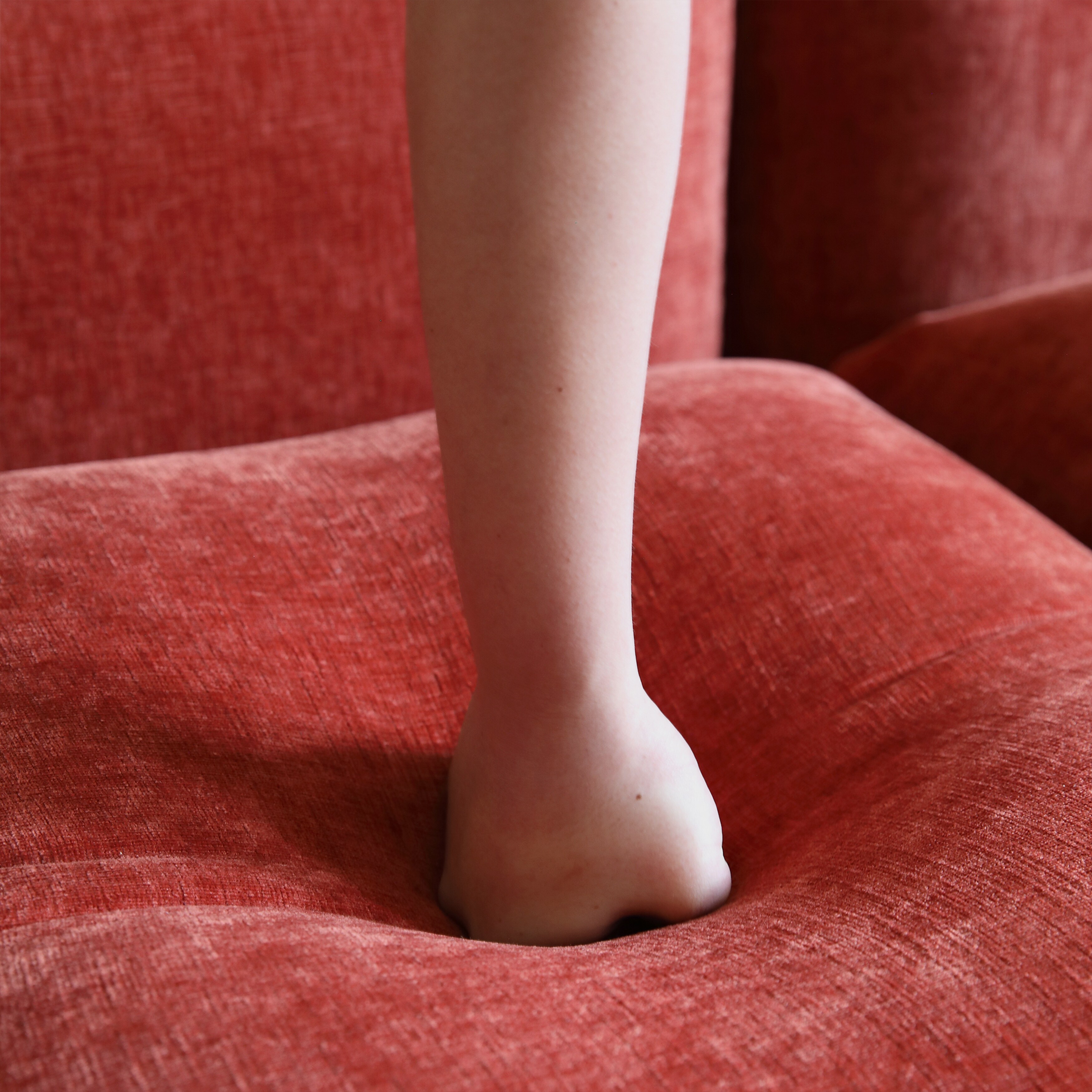 Sectional Sofa Chenille Fabric Sofa Lounge Couch with Ottoman Orange