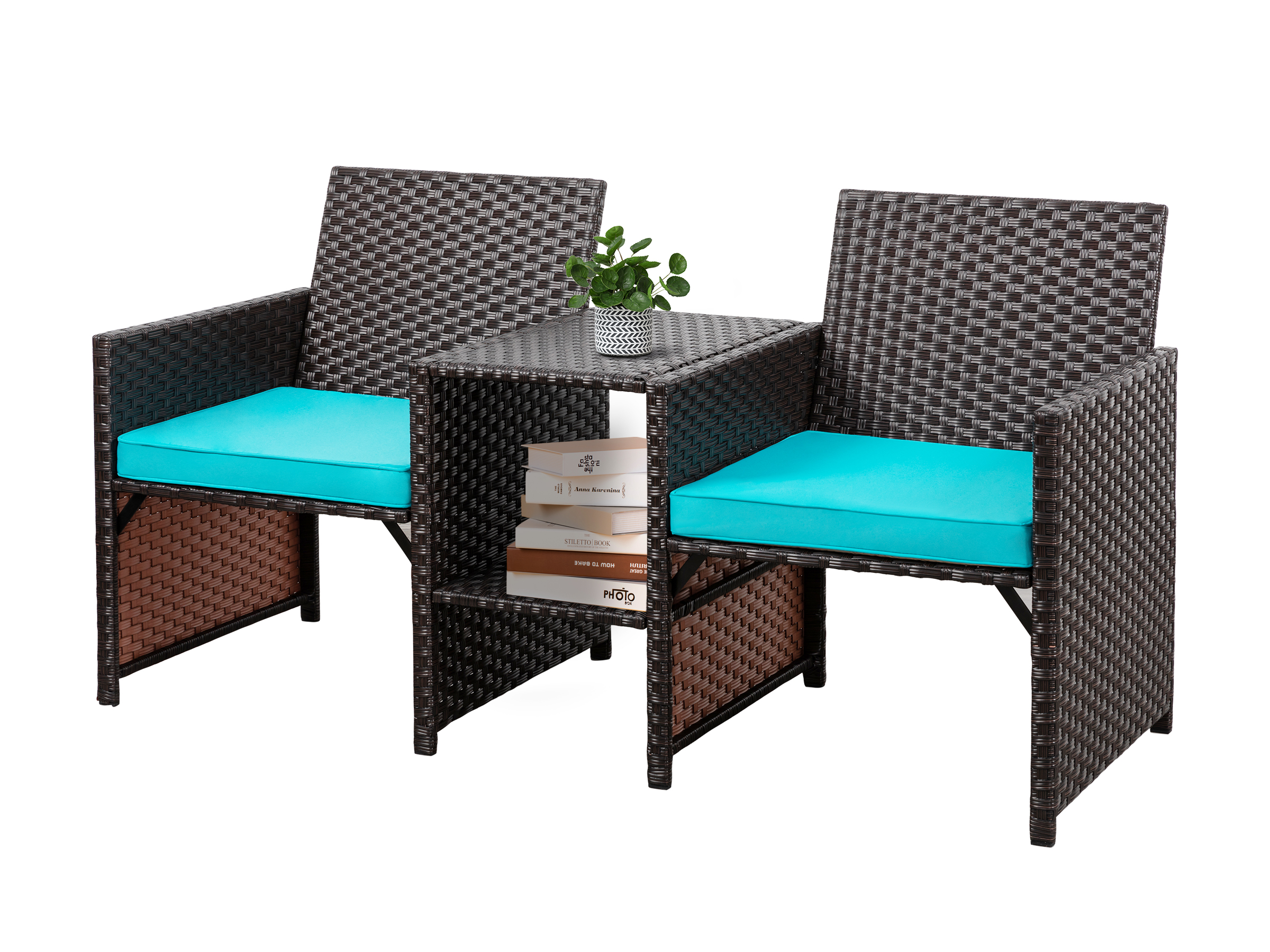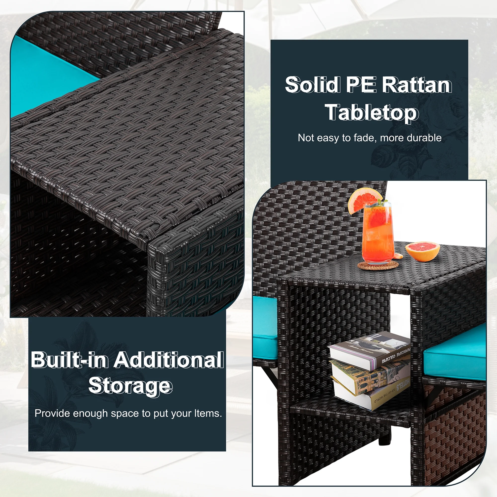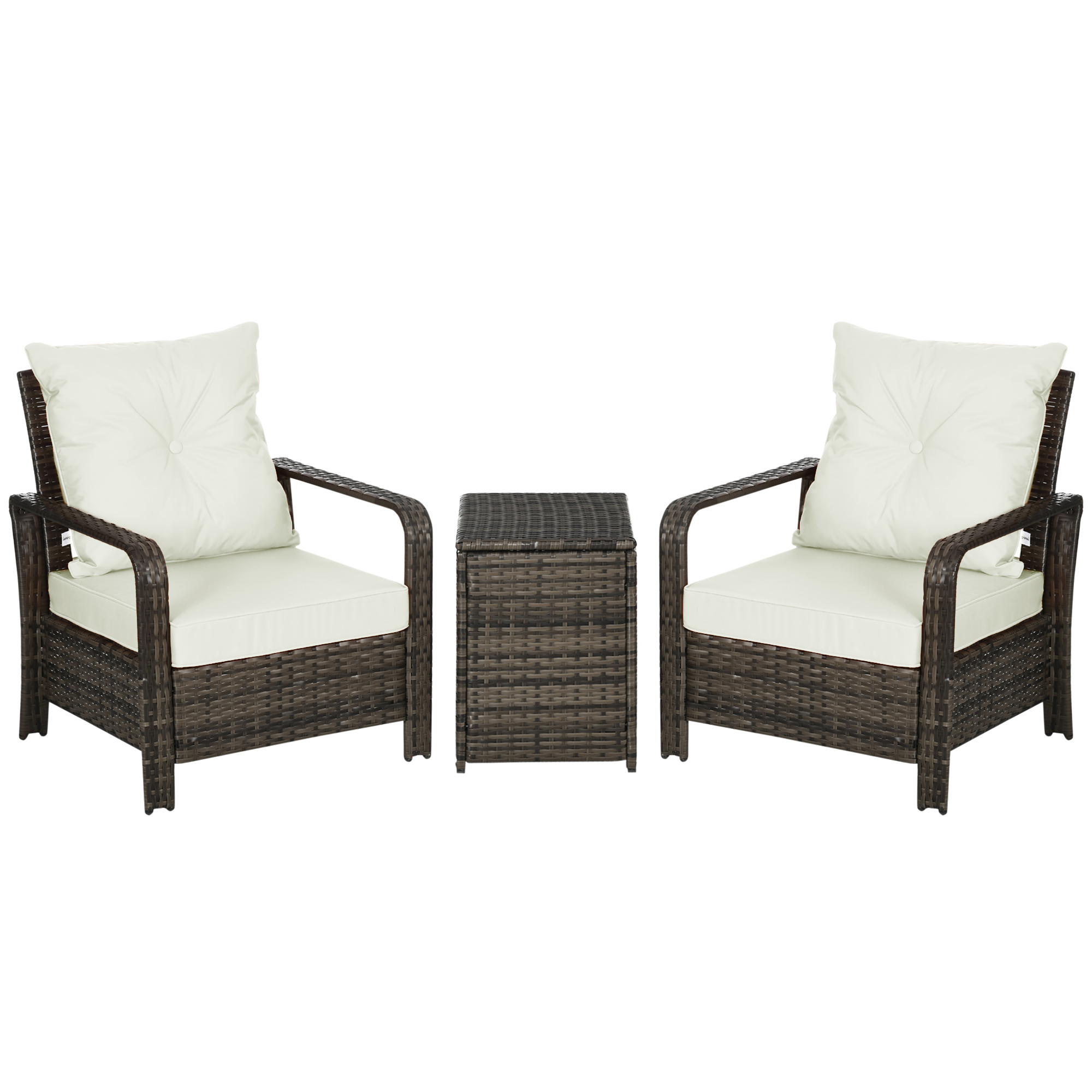 Outsunny 3 Piece Patio Furniture, PE Wicker Storage Table & Chairs, Beige
