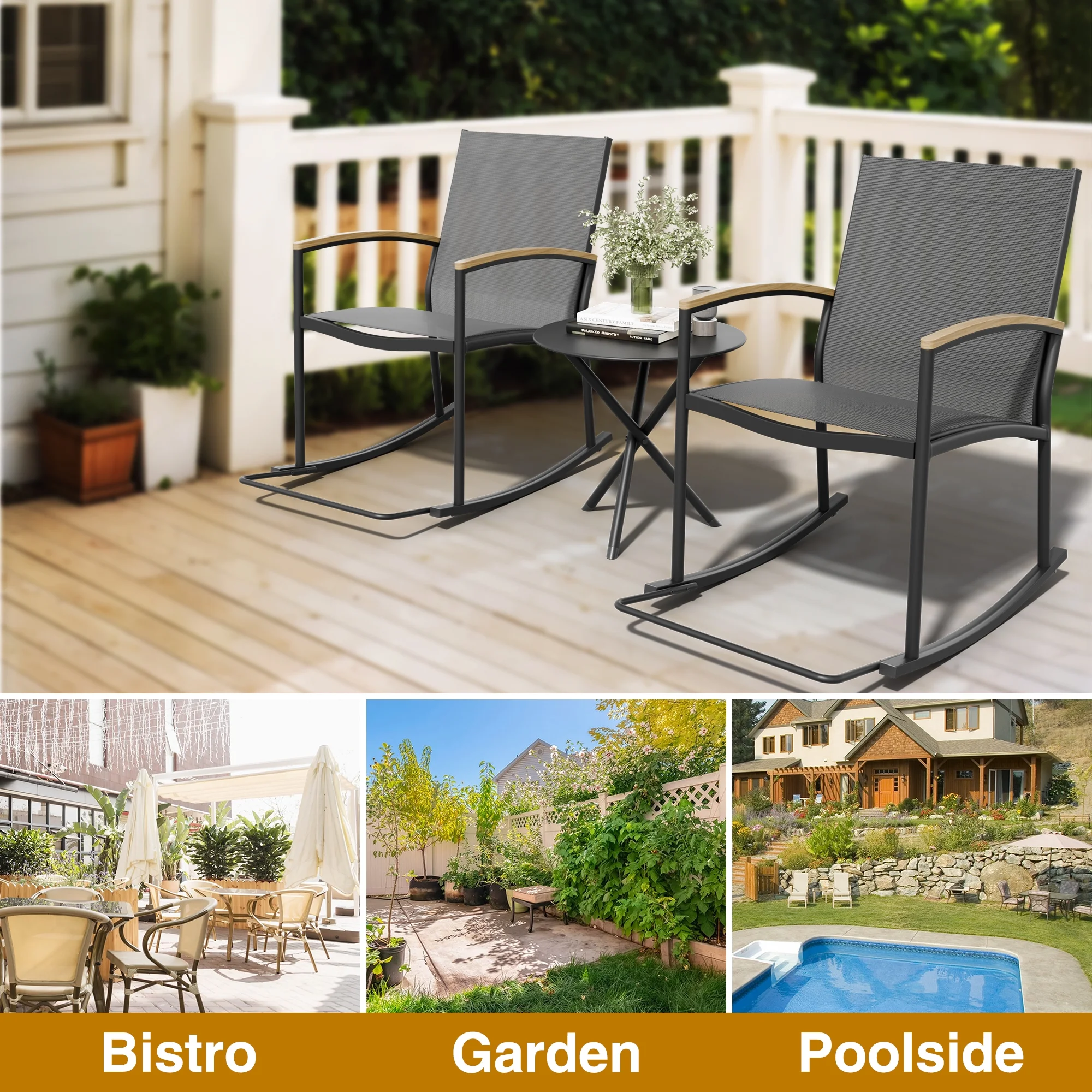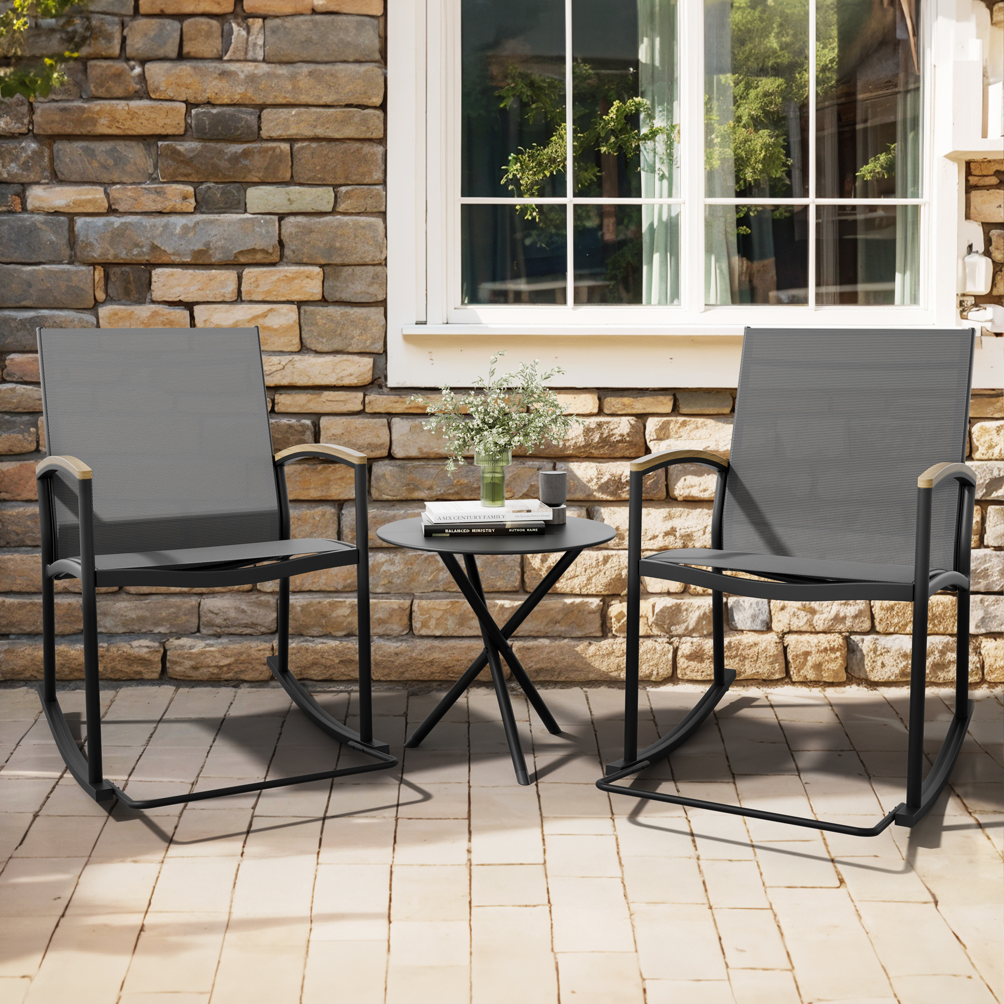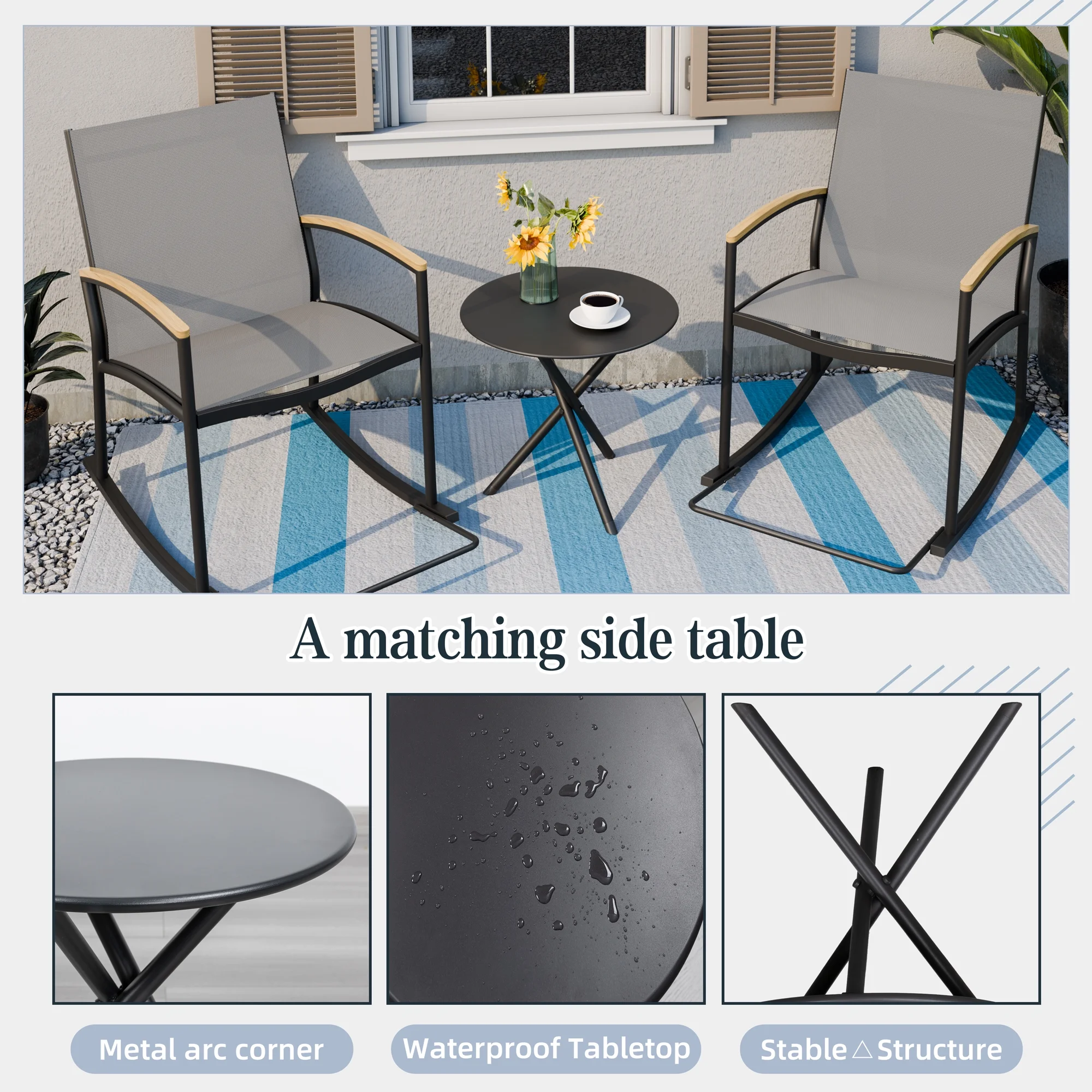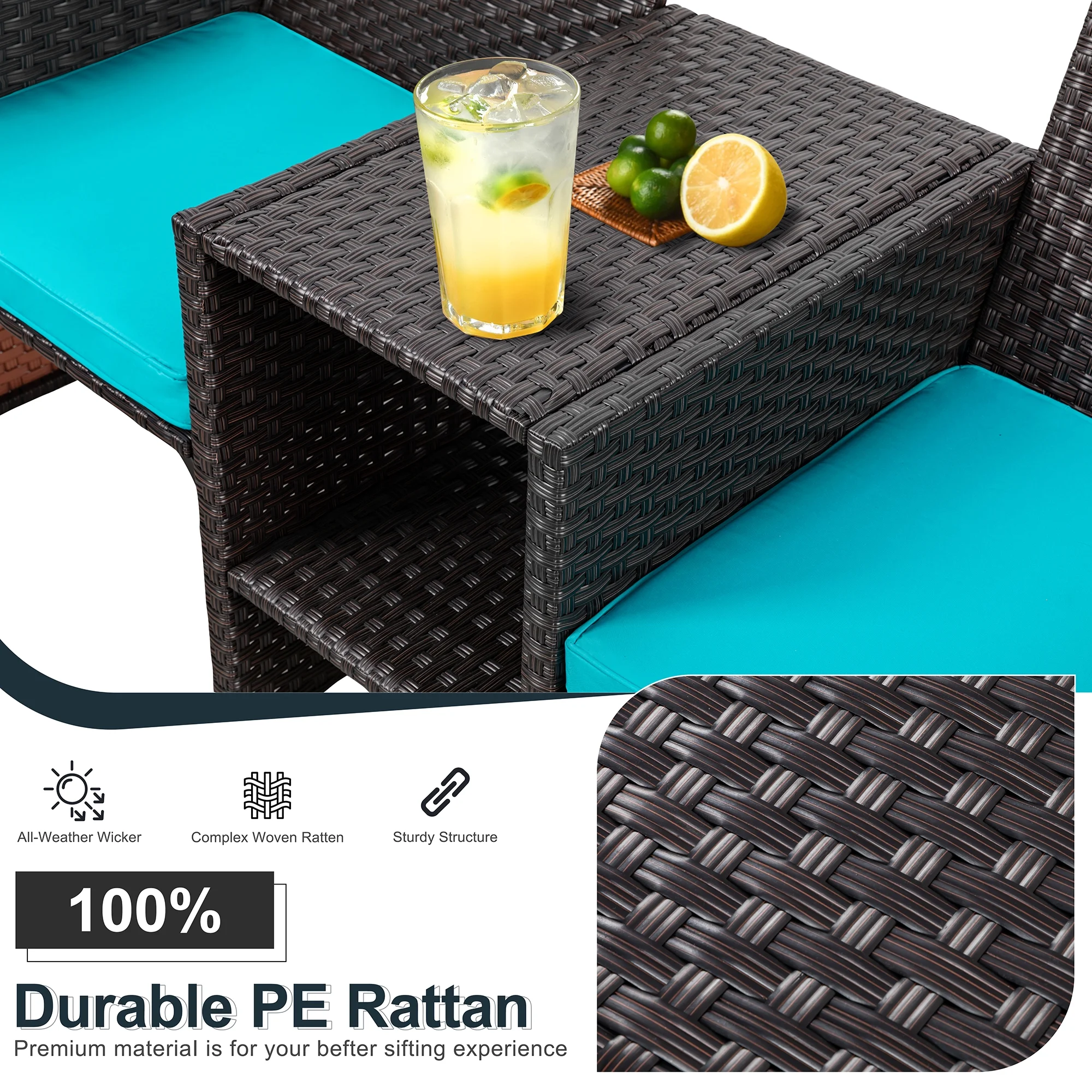 Outsunny 3 Piece Patio Furniture, PE Wicker Storage Table & Chairs, Beige