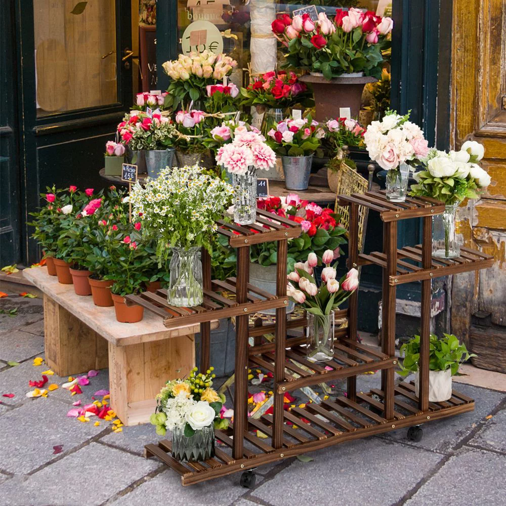 OROPY Plant Table Shelf Indoor Outdoor Wood Display Multi Tier Flower Shelves Stands, Garden Rack Holder in Corner,Living Room,Balcony,Patio,Yard and Garden - Curated Treasures Market
