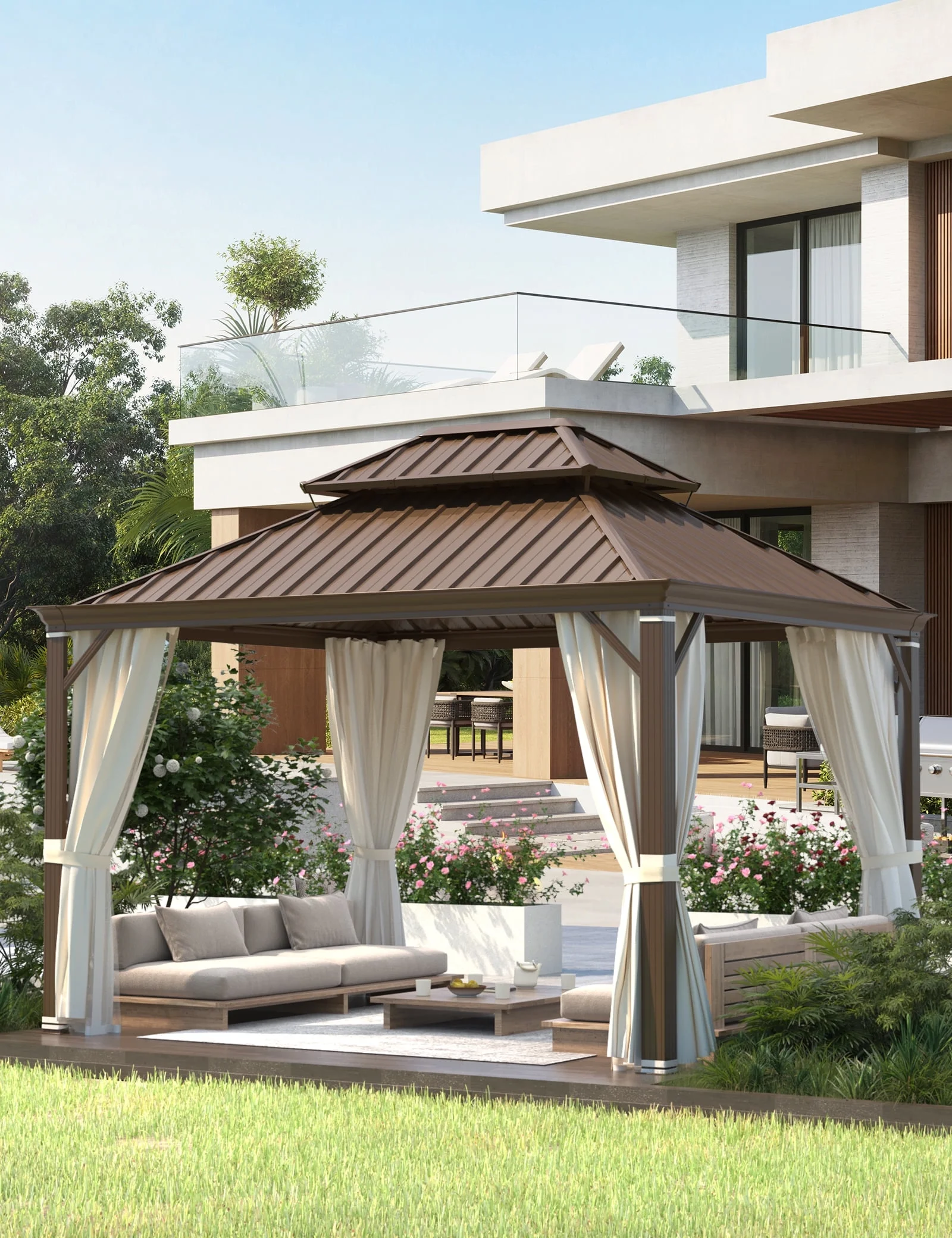 Richryce 10' X 12' Hardtop Gazebo Aluminum Frame Gazebo with Galvanized Steel Double Roof - Curated Treasures Market