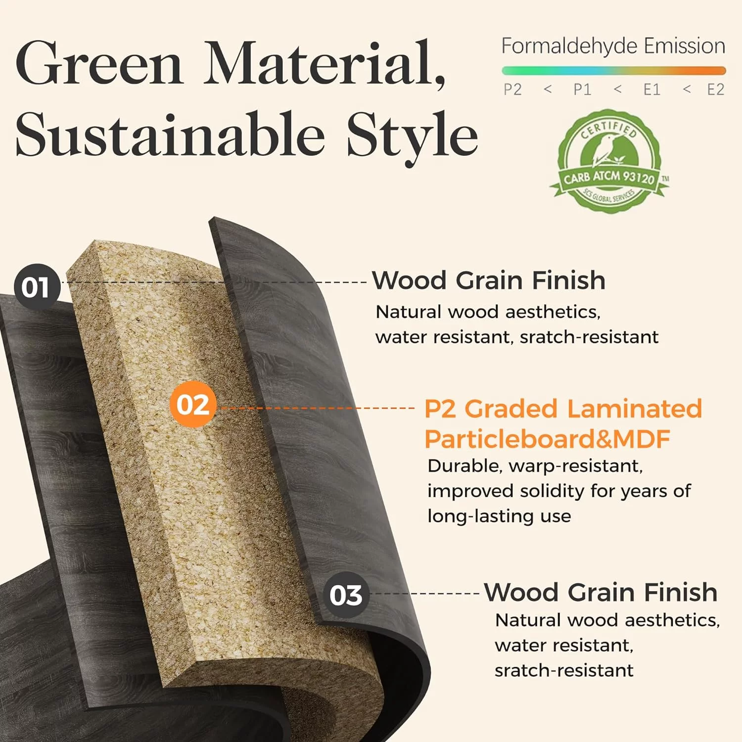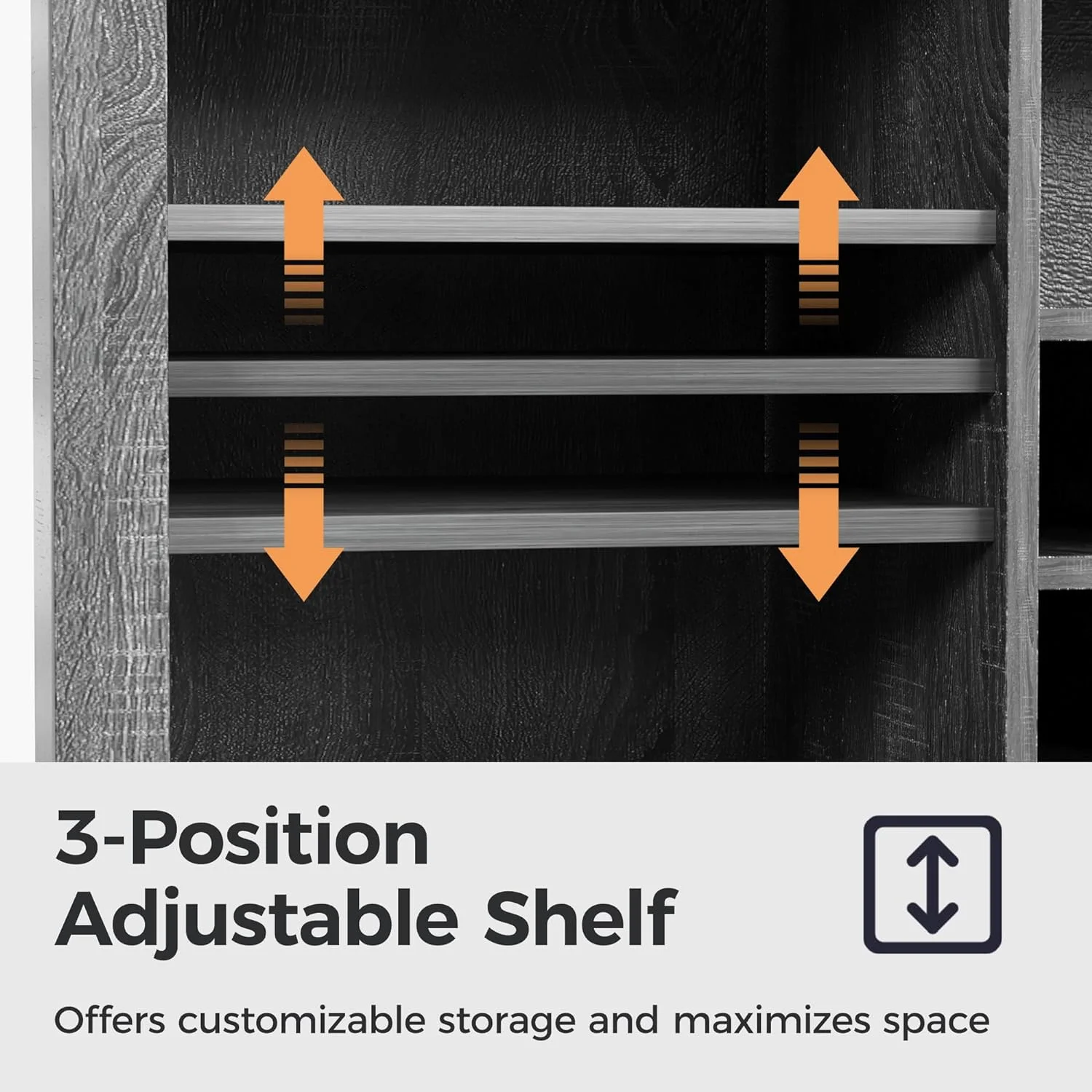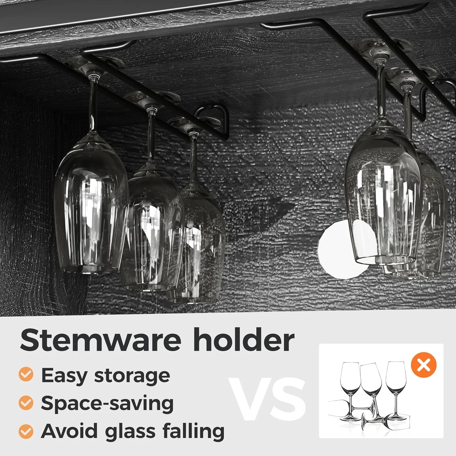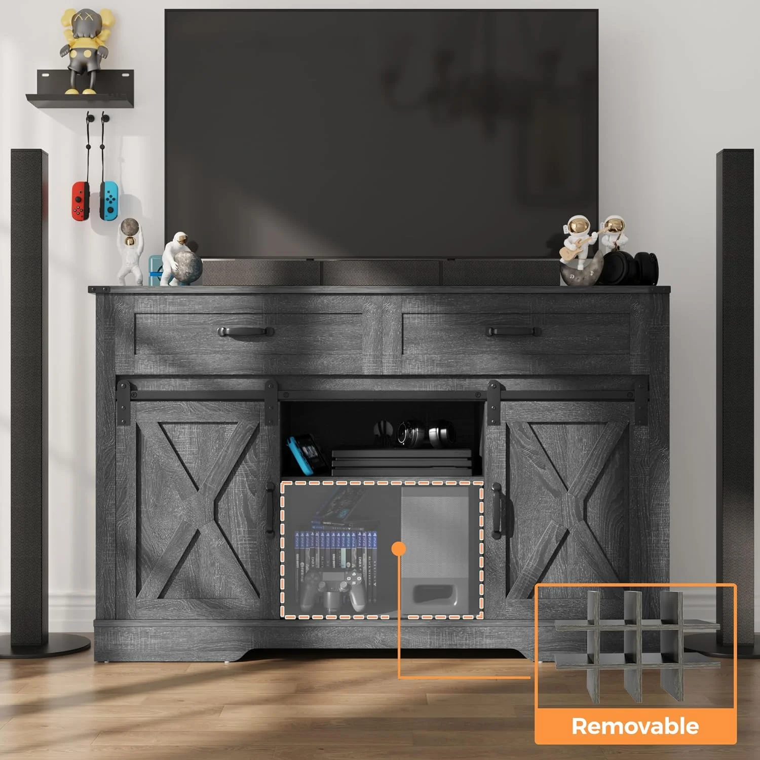 Superjoe 52" Buffet Storage Cabinet Farmhouse Sideboard w/12 Removable Wine Rack & Drawers, Rustic Coffee Bar Cabinet w/Glass Rack & Sliding Barn Door, Dark Grey - Curated Treasures Market