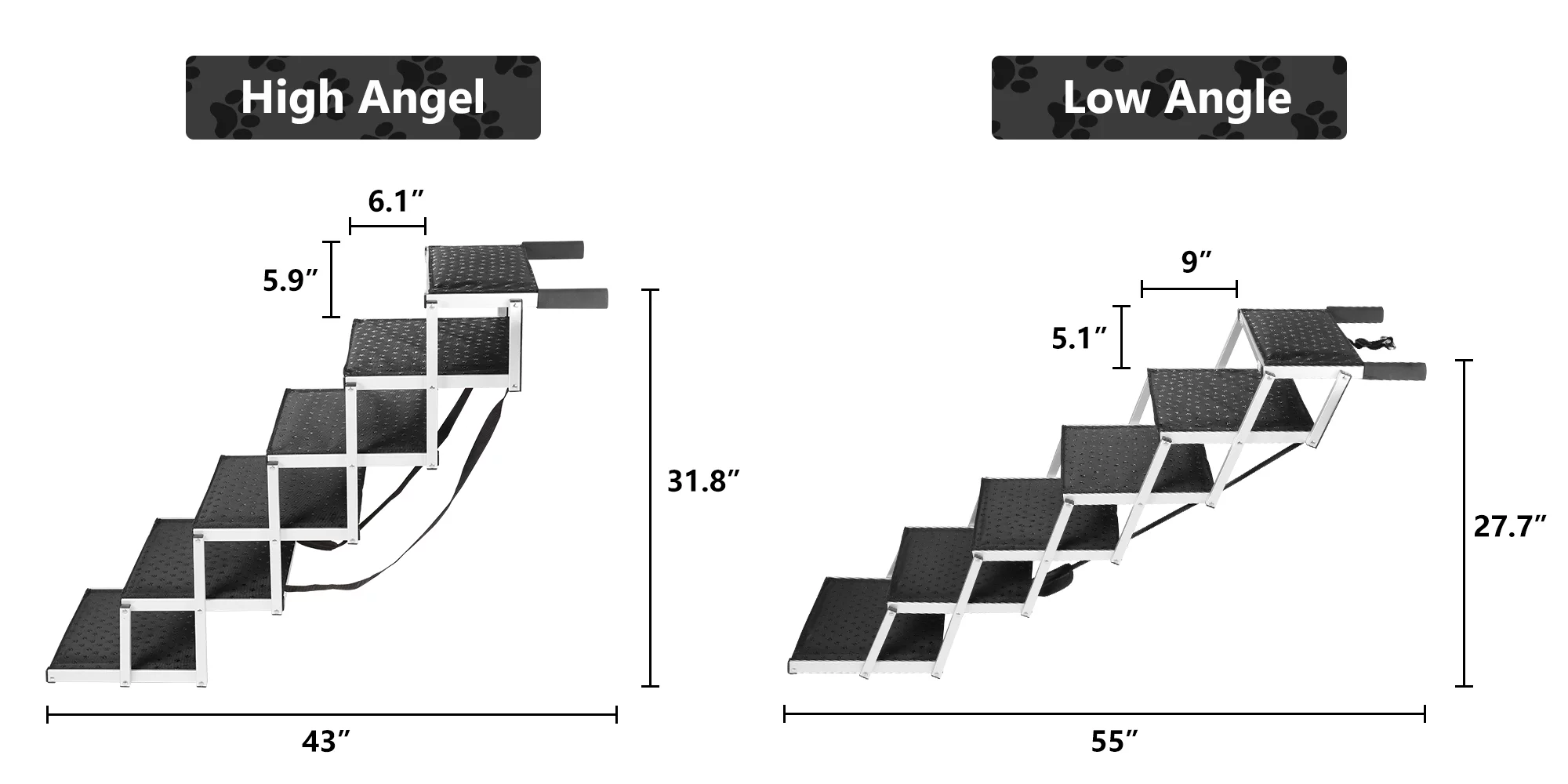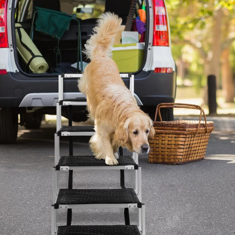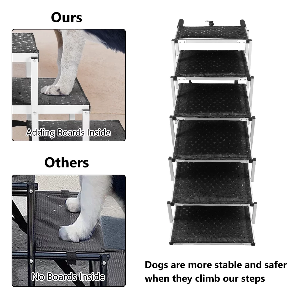 SMONTER Portable Dog Stairs for Large Dogs, Lightweight Aluminum Pet Ladder Ramp, Widen 6 Steps Dog Steps with Non-Slip Surface for High Beds, Trucks, Car and SUV, Support 180 LBS - Curated Treasures Market