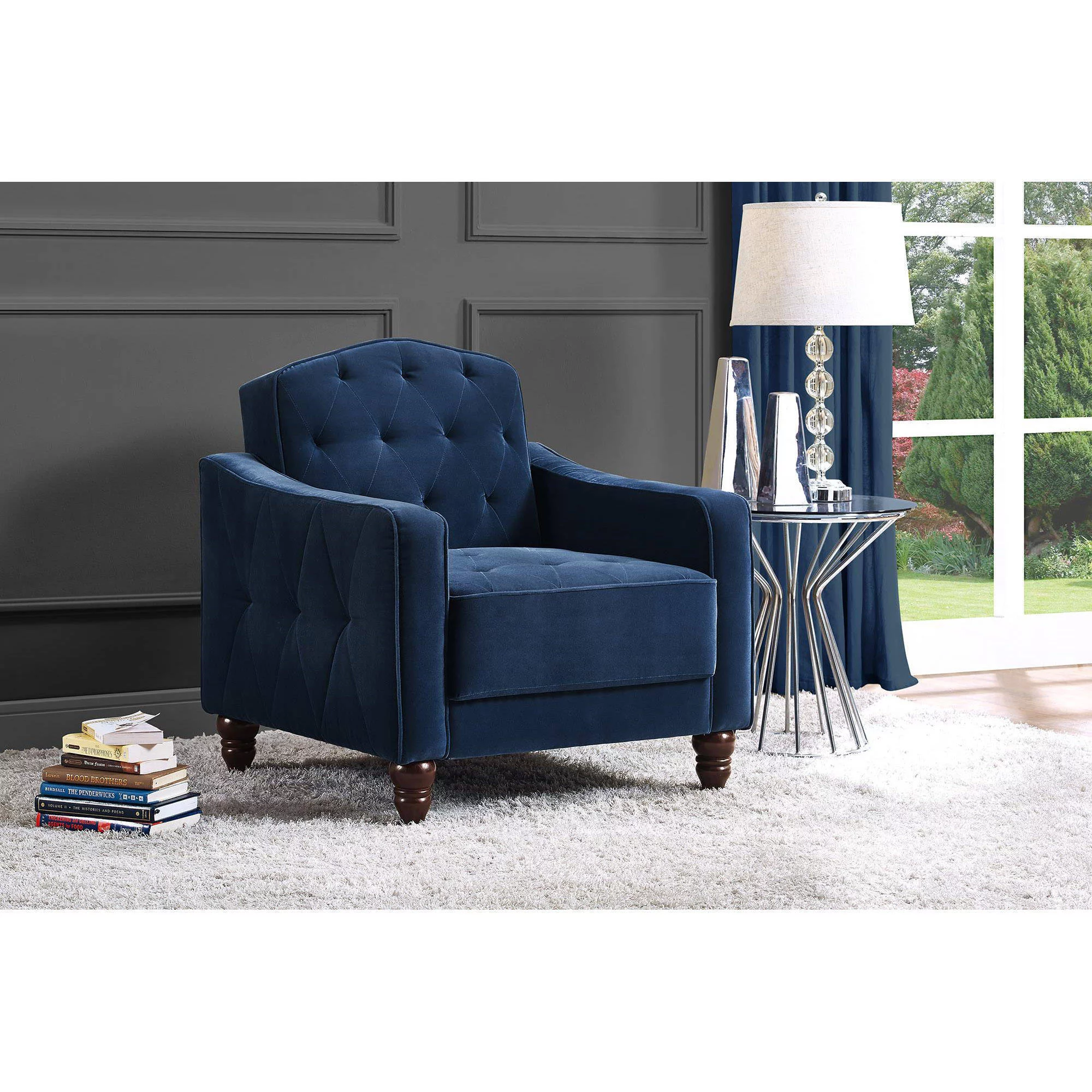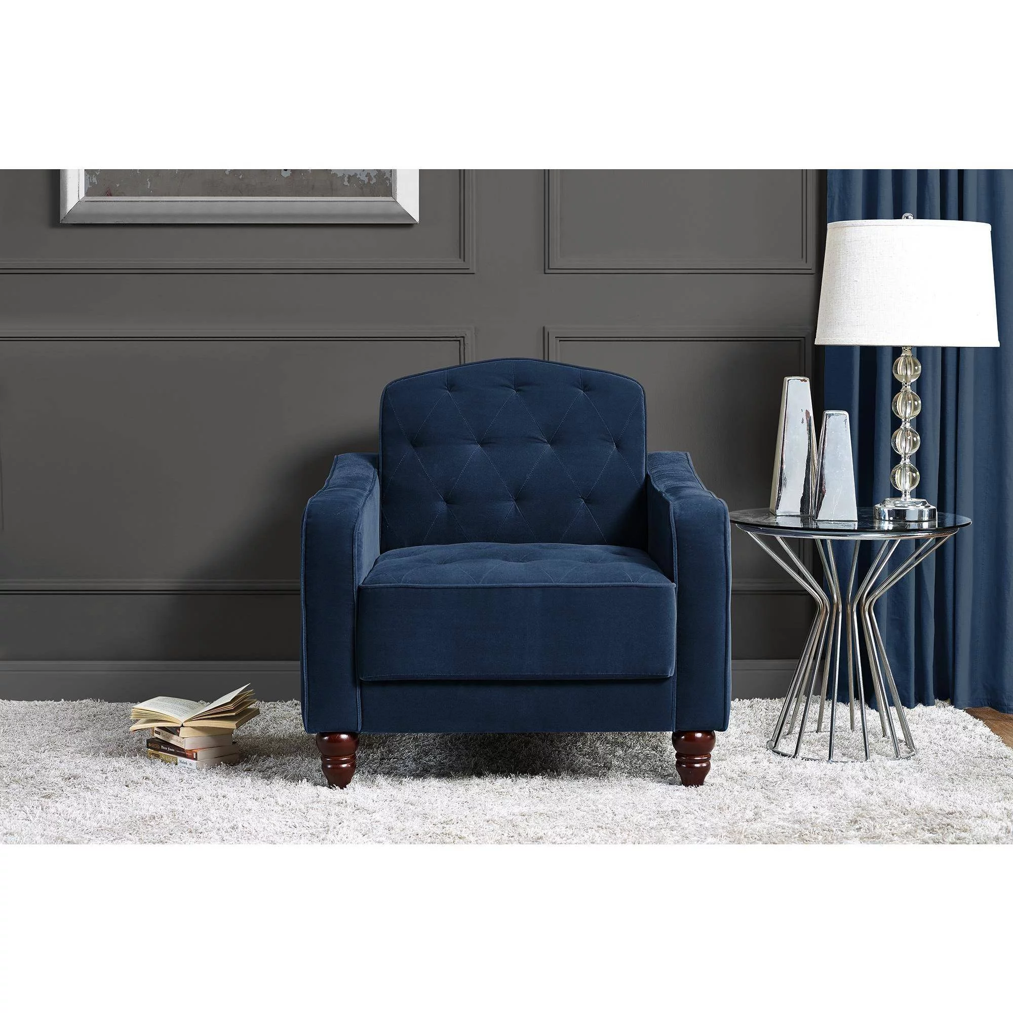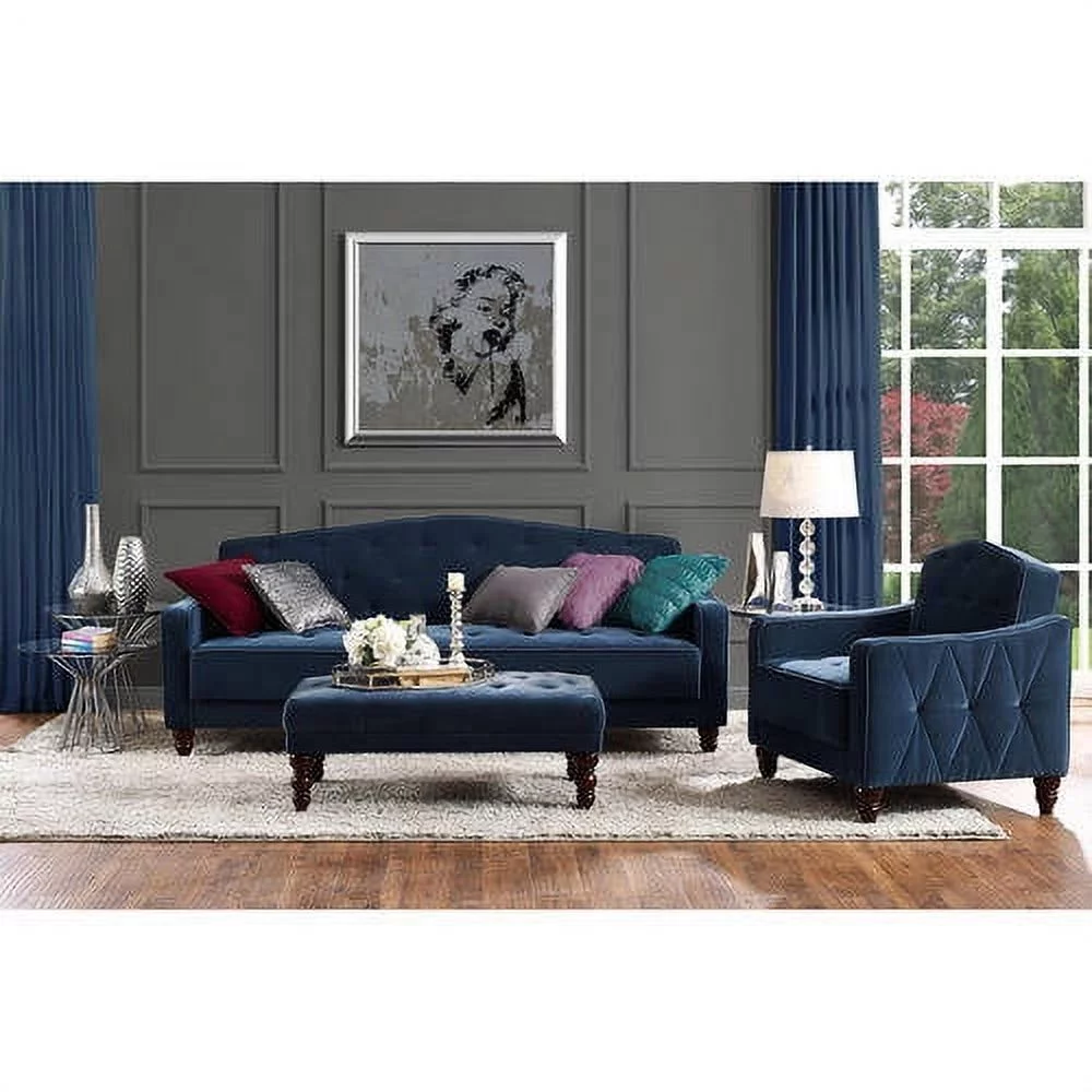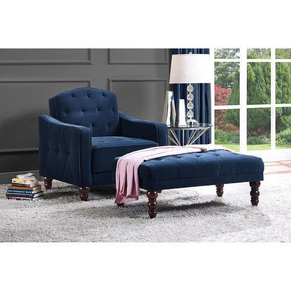 Novogratz Vintage Tufted Armchair, Living Room Furniture, Navy Velvet - Curated Treasures Market