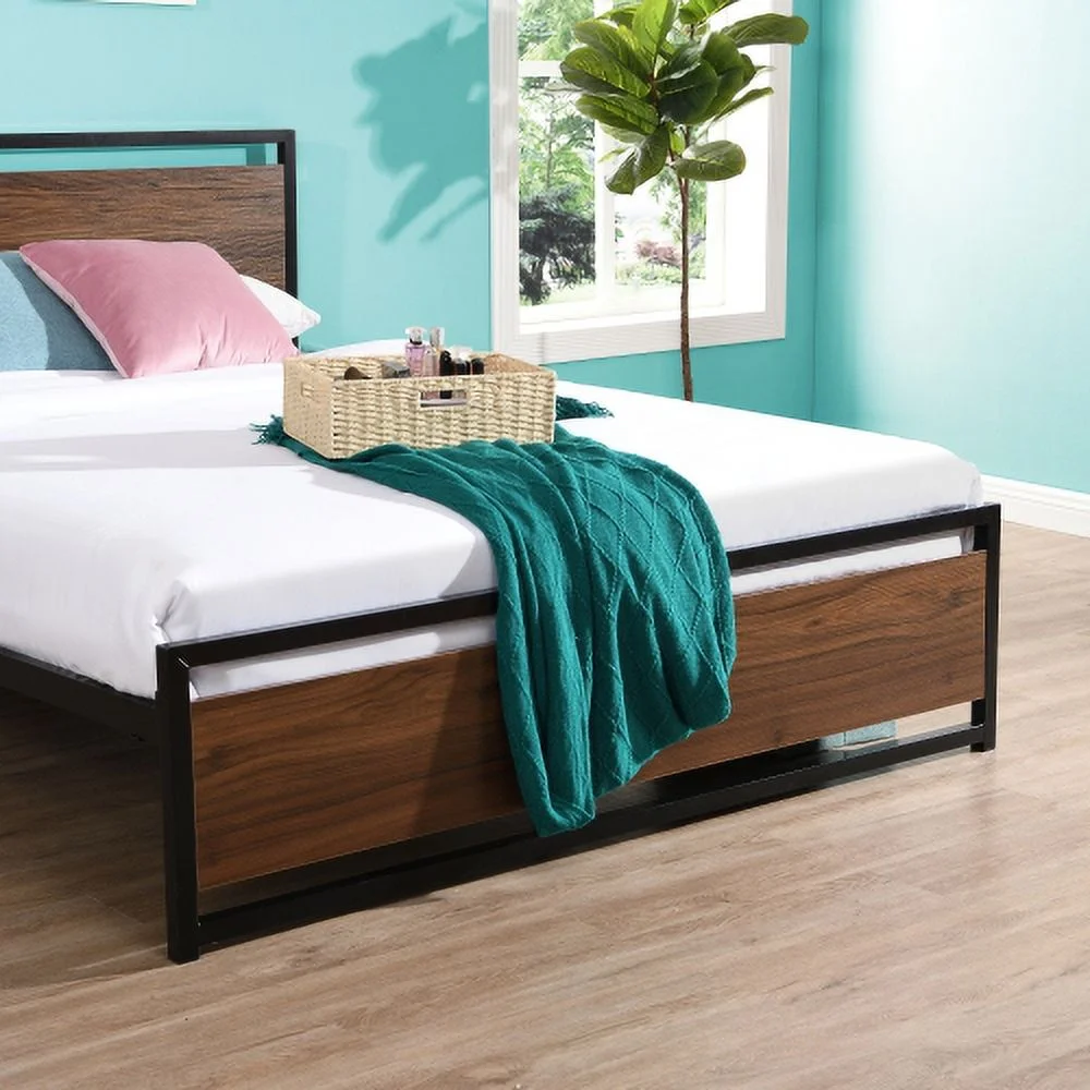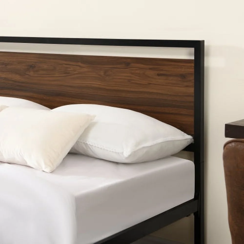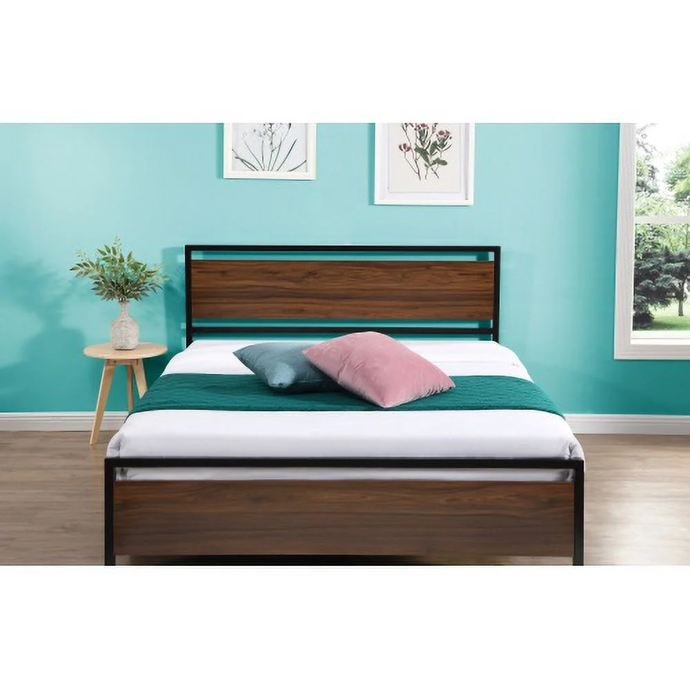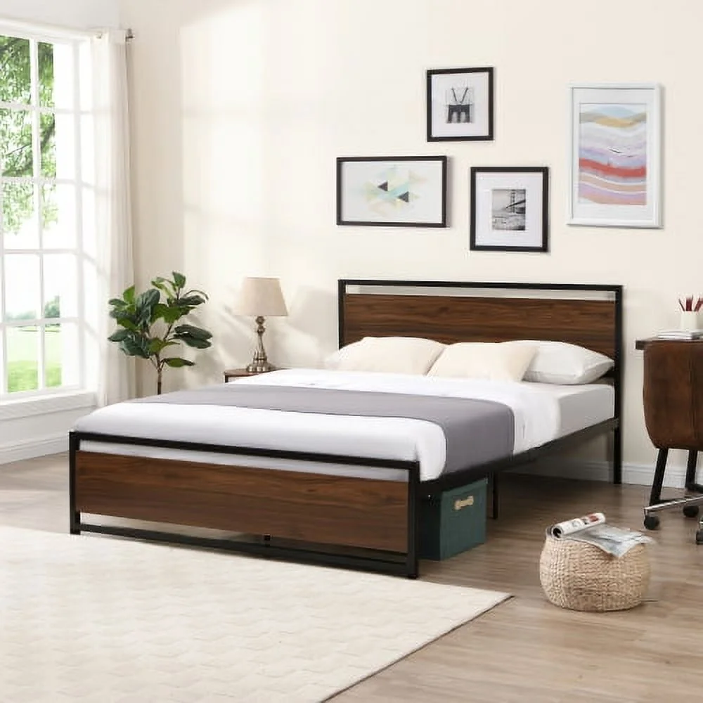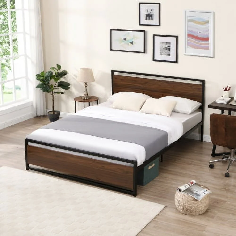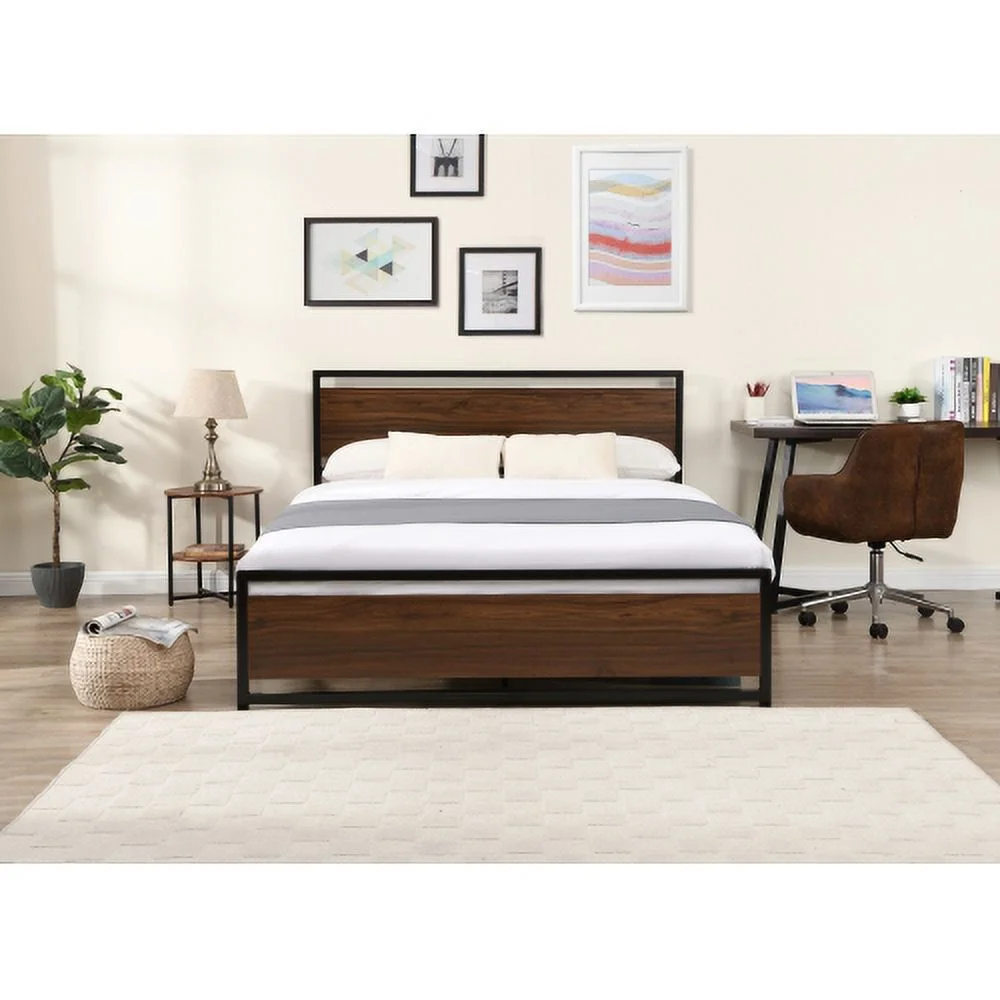 YLtoohoom Industrial Platform Queen Bed Frame/Mattress Foundation with Rustic Headboard and Footboard Strong Steel Slat Support No Box Spring Needed Noise Free Easy Assembly - Curated Treasures Market