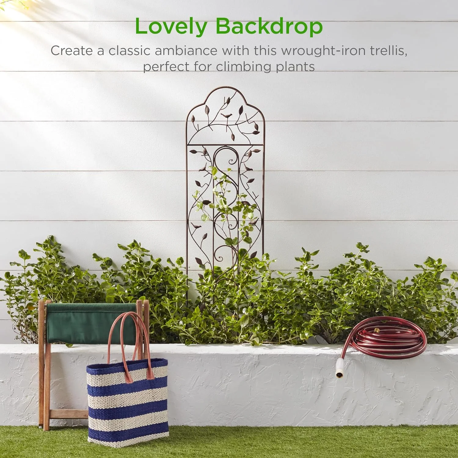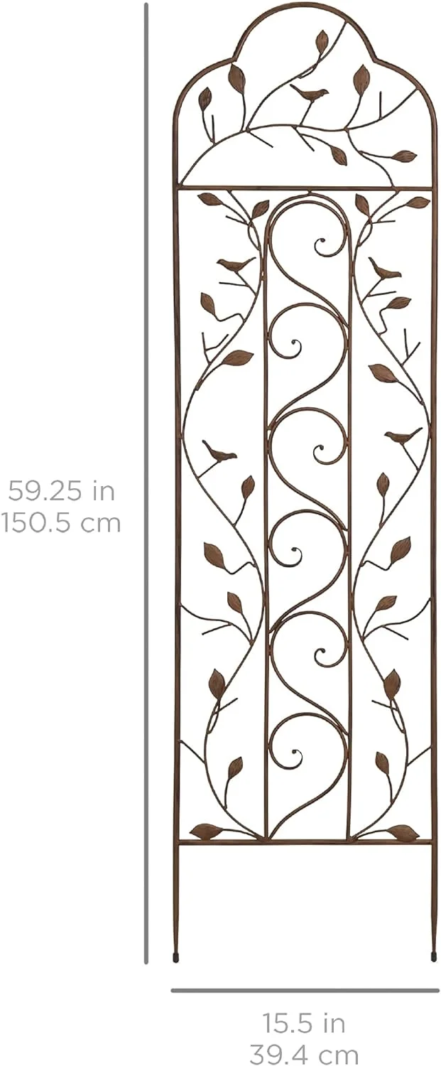 60x15in Iron Garden Trellis, Arched Outdoor Decoration w/Branches, Birds for Lawn, Garden, Backyard, Climbing Plants - Bronze - Curated Treasures Market