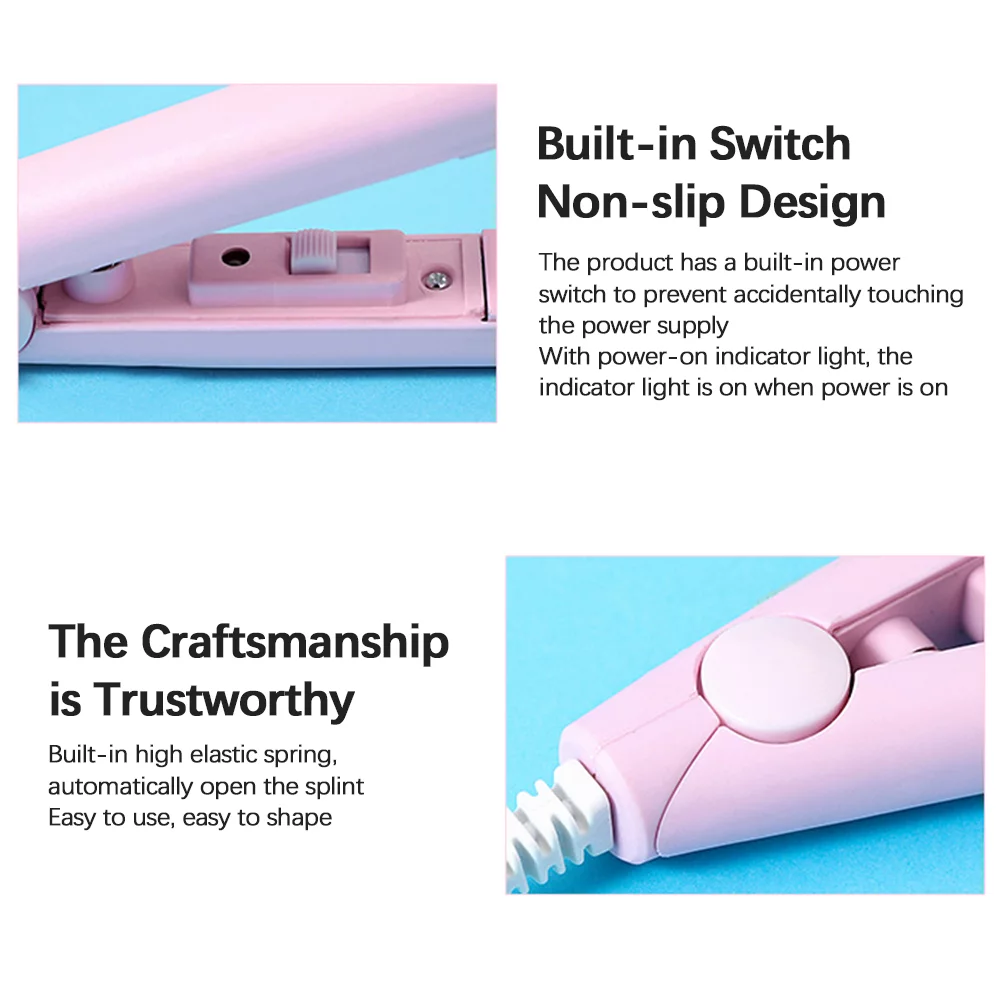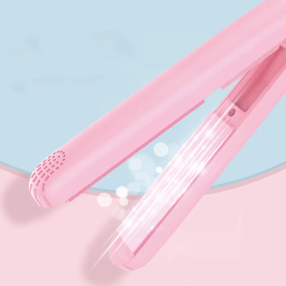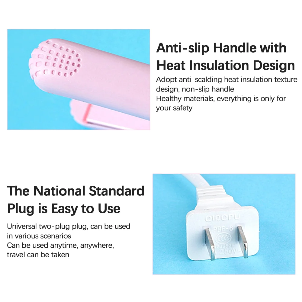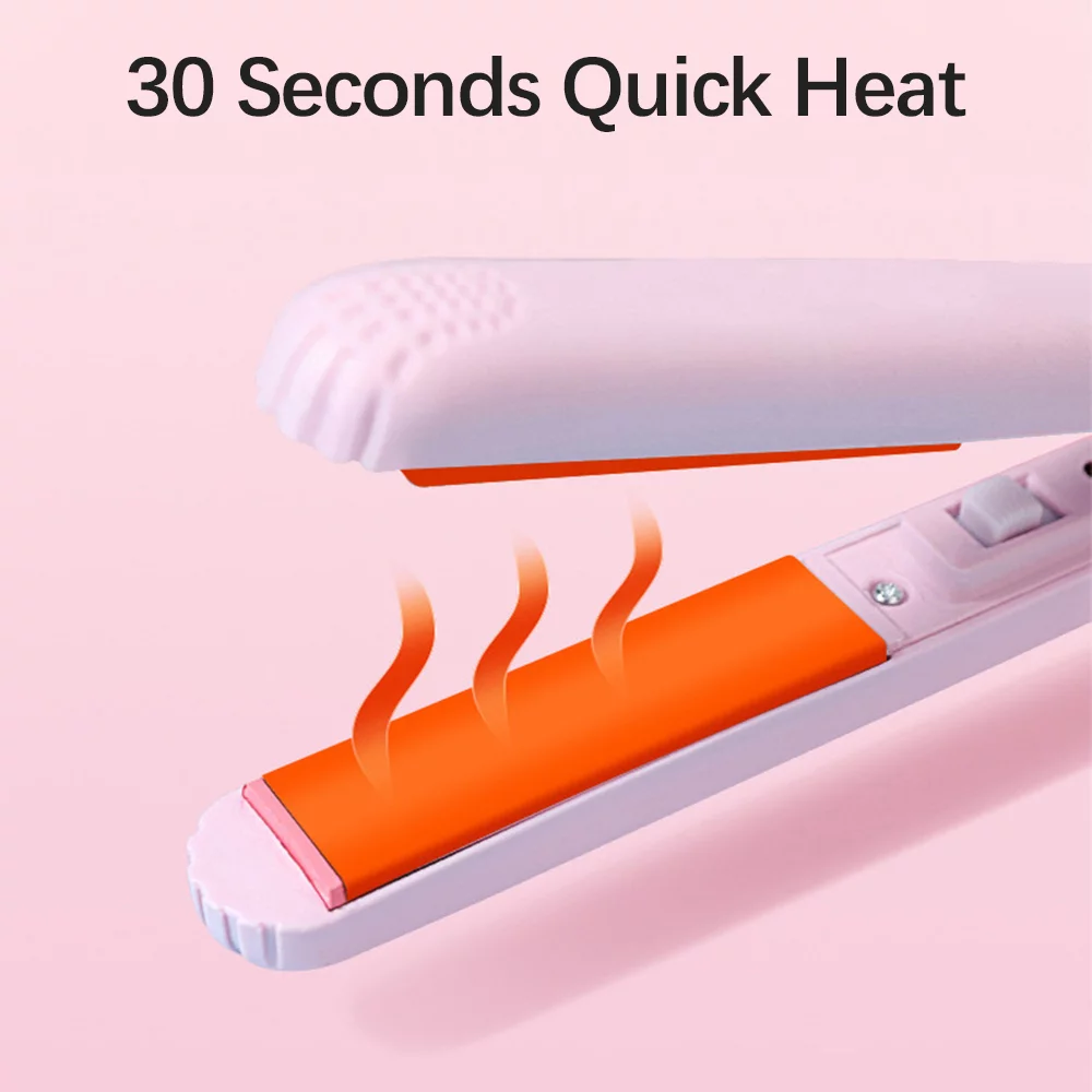 2 in 1 Mini Hair Straightener Hair Flat Iron Ceramic Tourmaline Plate Beauty Flat Iron Heating Curler,Blue - Curated Treasures Market