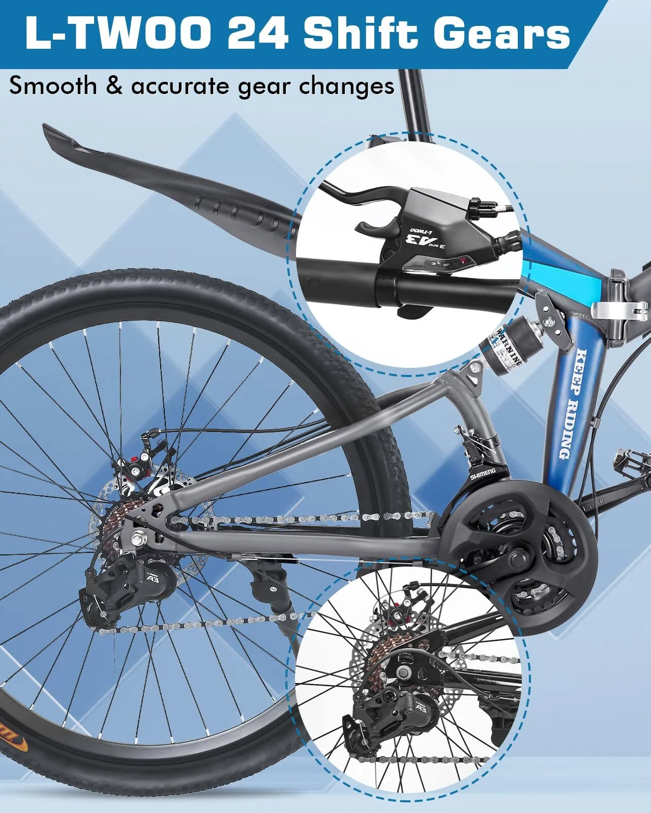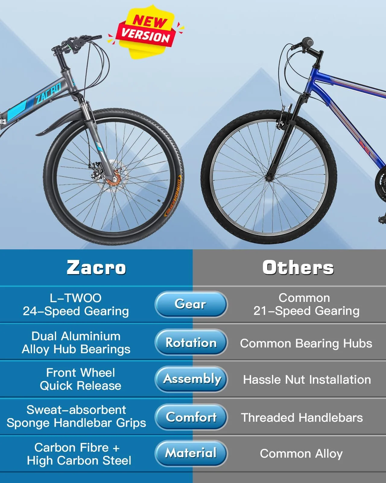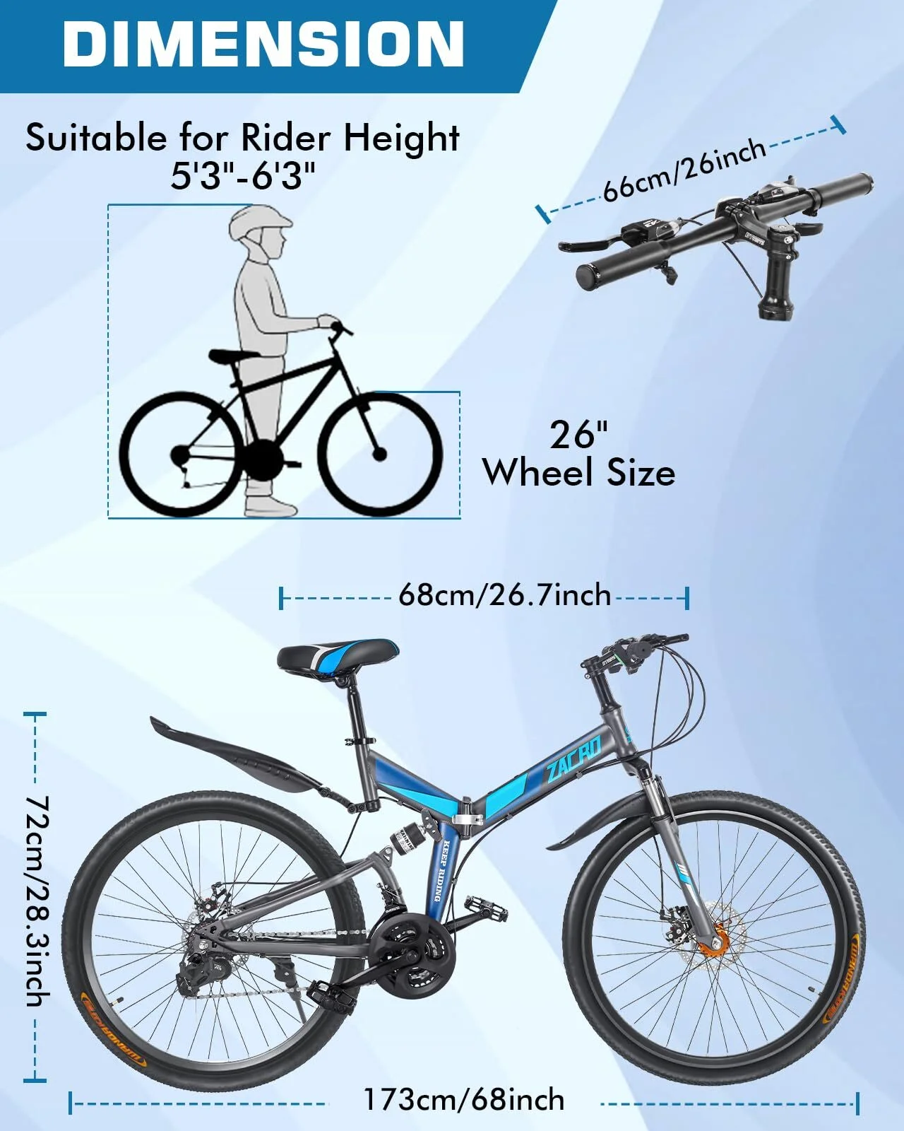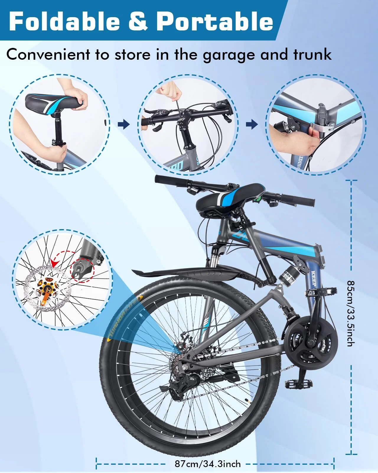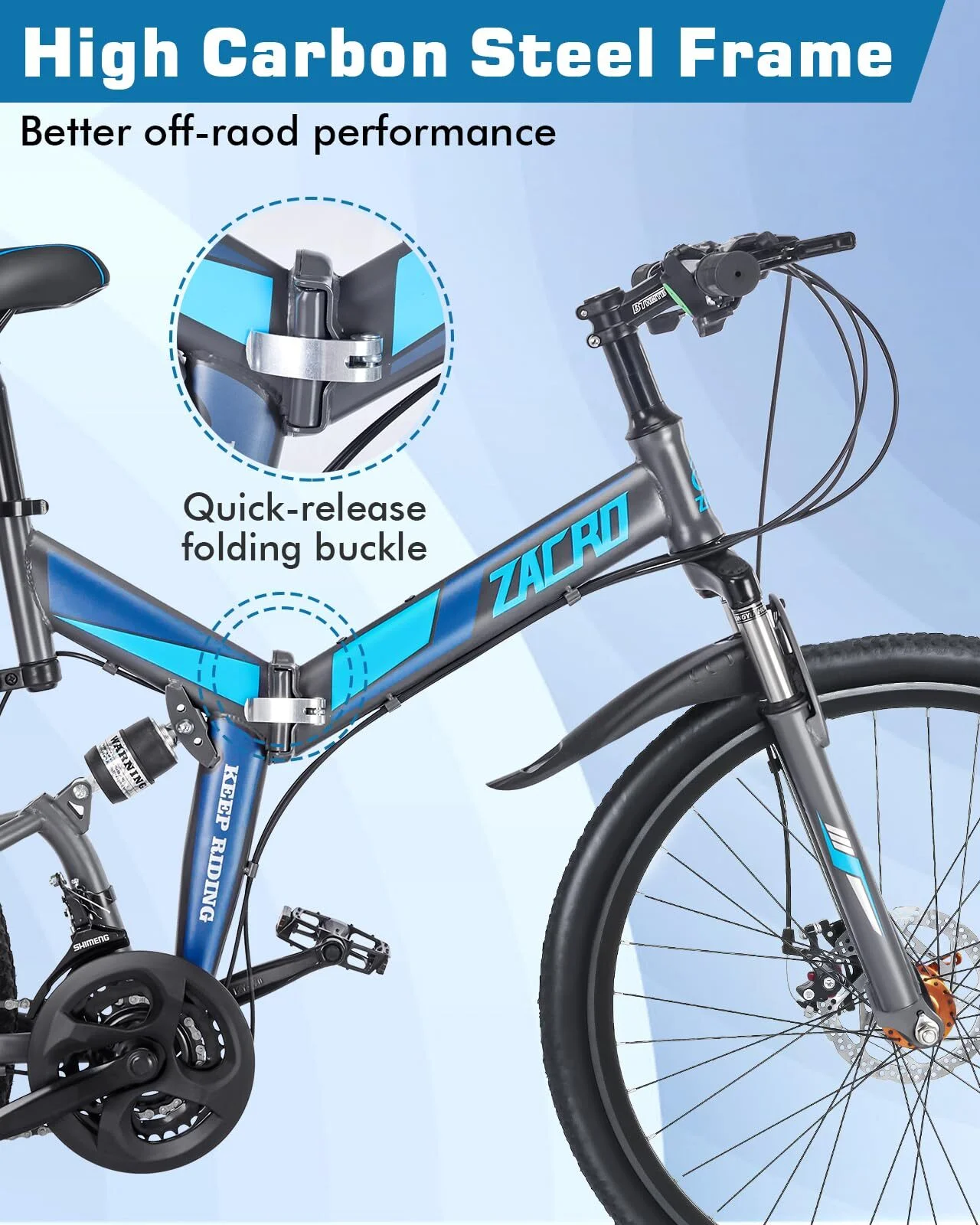 Zacro 26 Inch Folding Mountain Bike, Compact Mountain Bike with 24 Speed Dual Disc Brake and Shock Absorbers Alloy Wheels, for Men Women Adults Youth,Blue - Curated Treasures Market