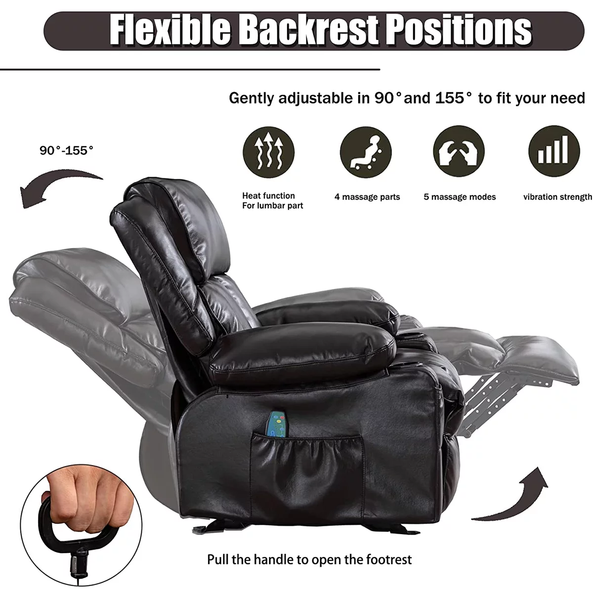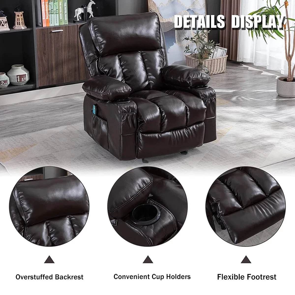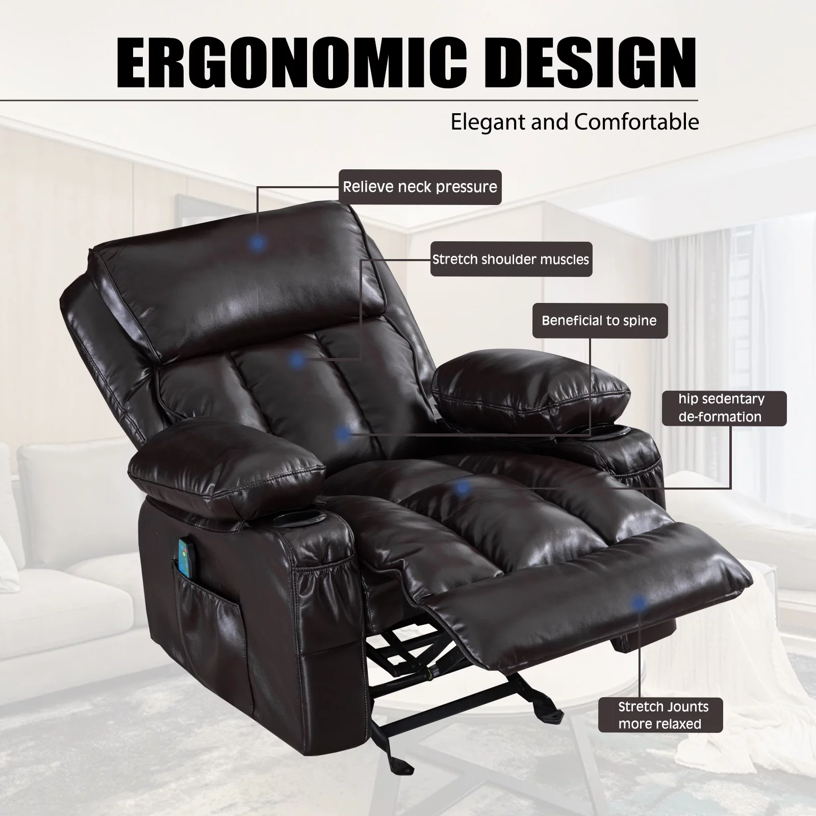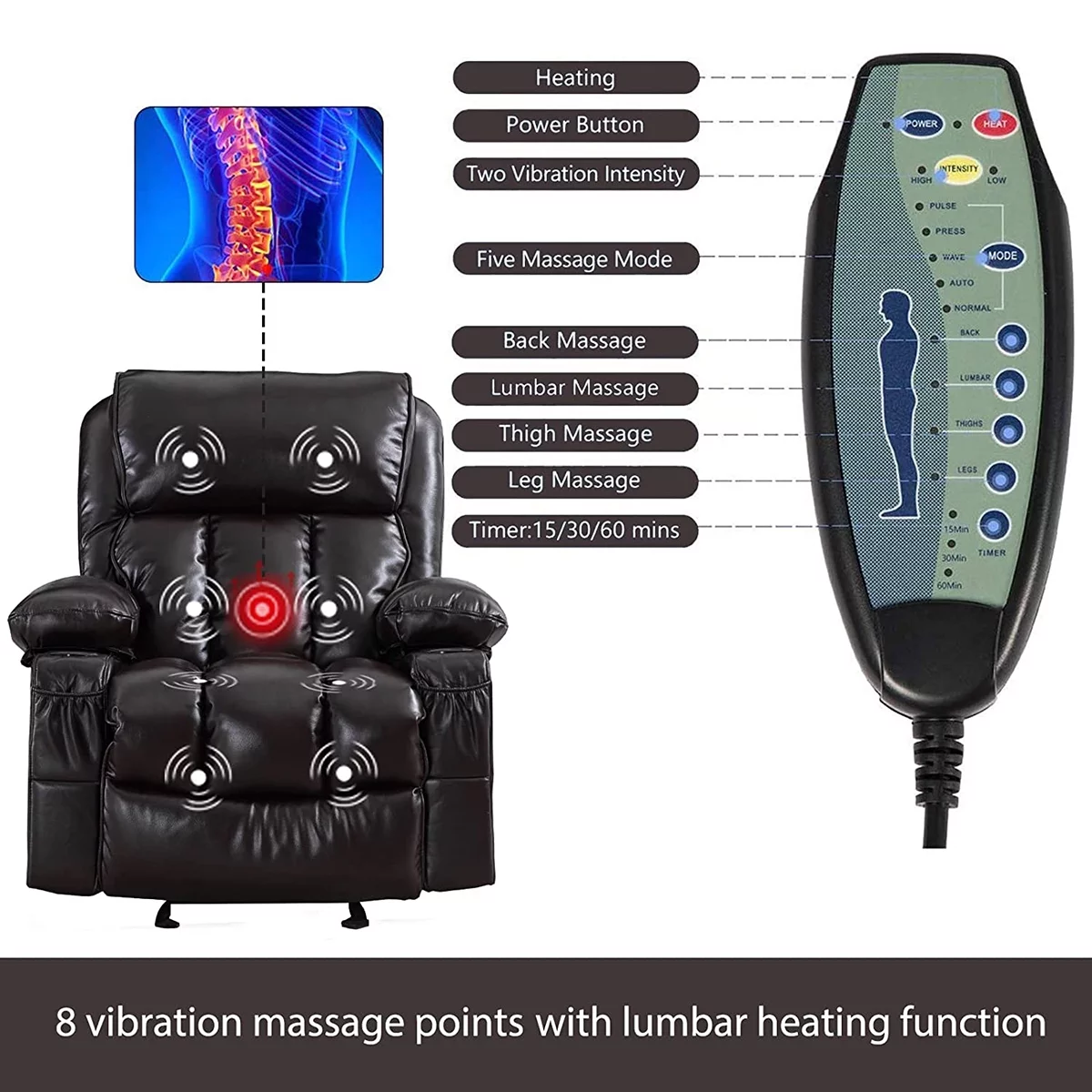 ZPL Faux Leather Recliner Chair Massage Rocker Chair with Heating and Vibration Function,8 Massage Point and 5 Massage Modes Reclining Chair for Home Office - Curated Treasures Market
